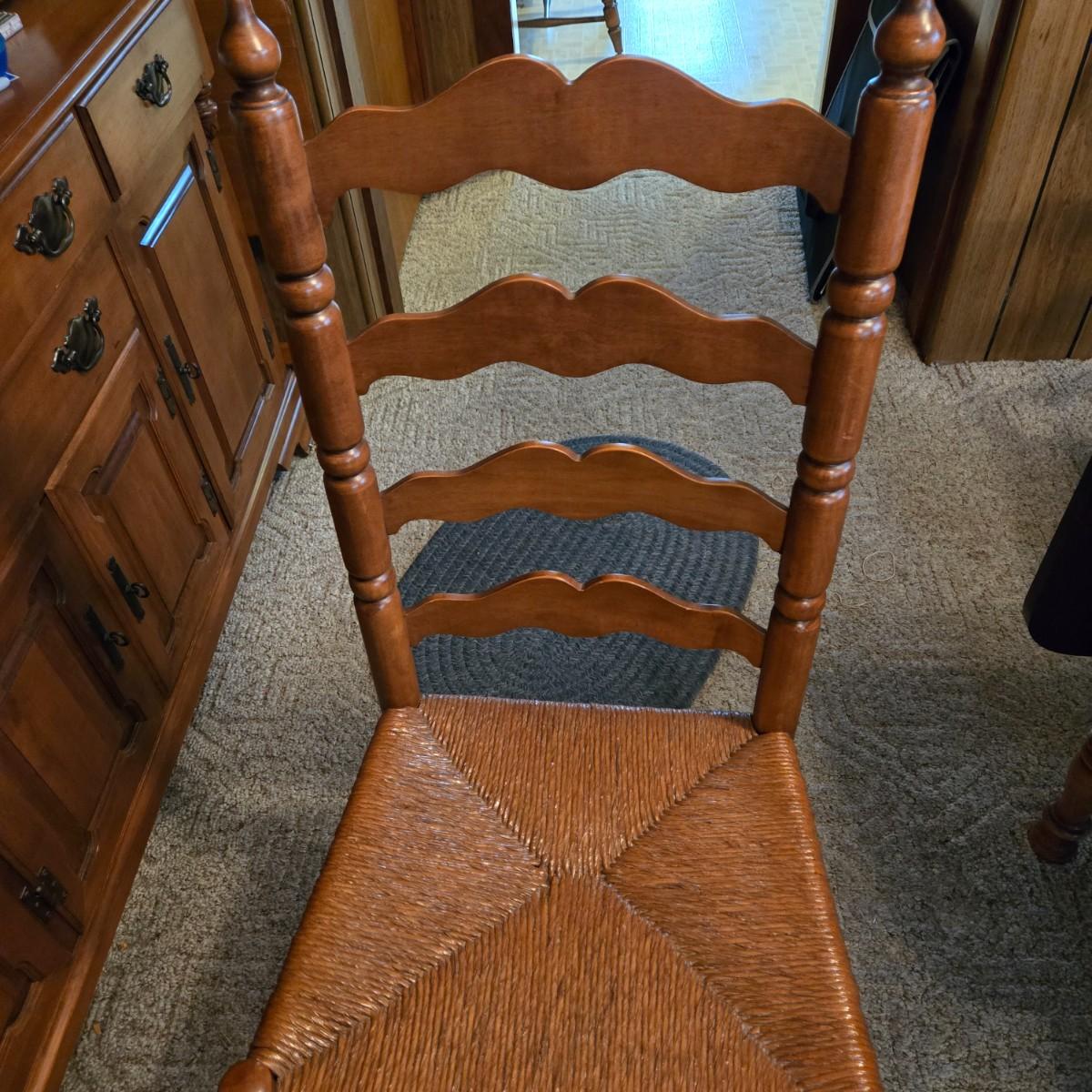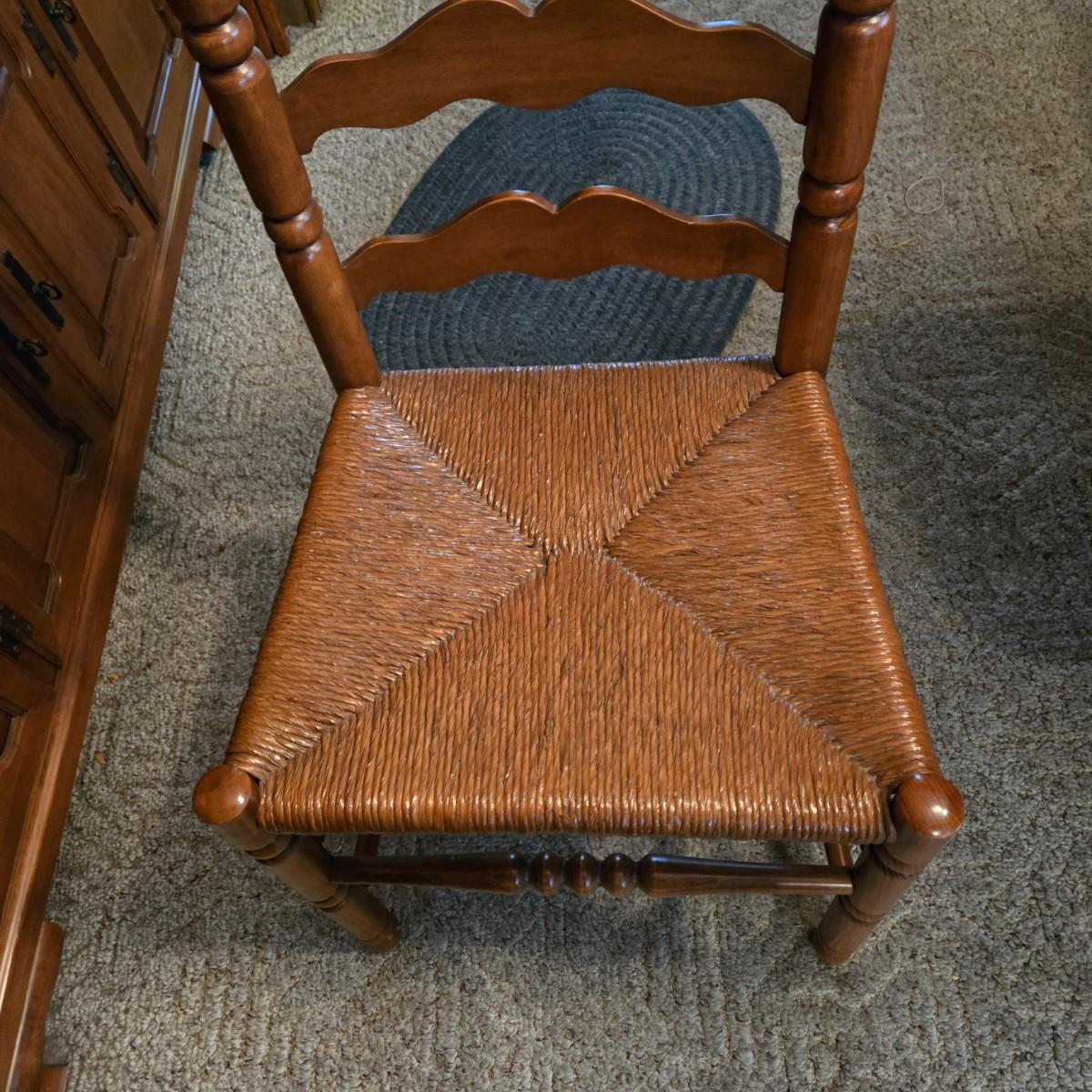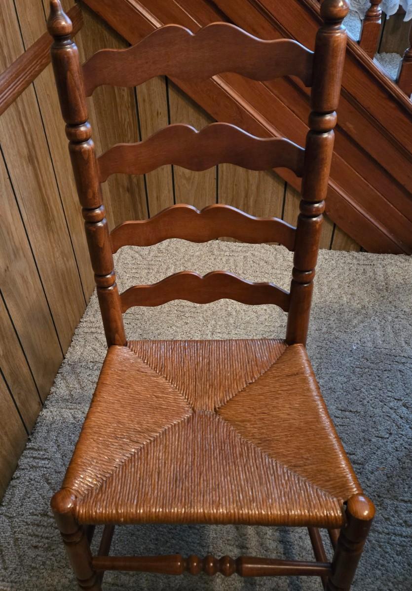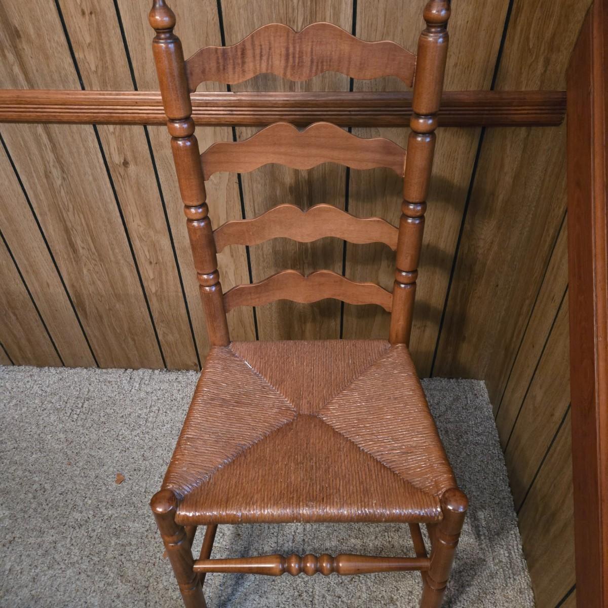 LOT 73D: Beautiful Vintage Drop Leaf Table with 4 Rush Seat, Ladder Back Chairs