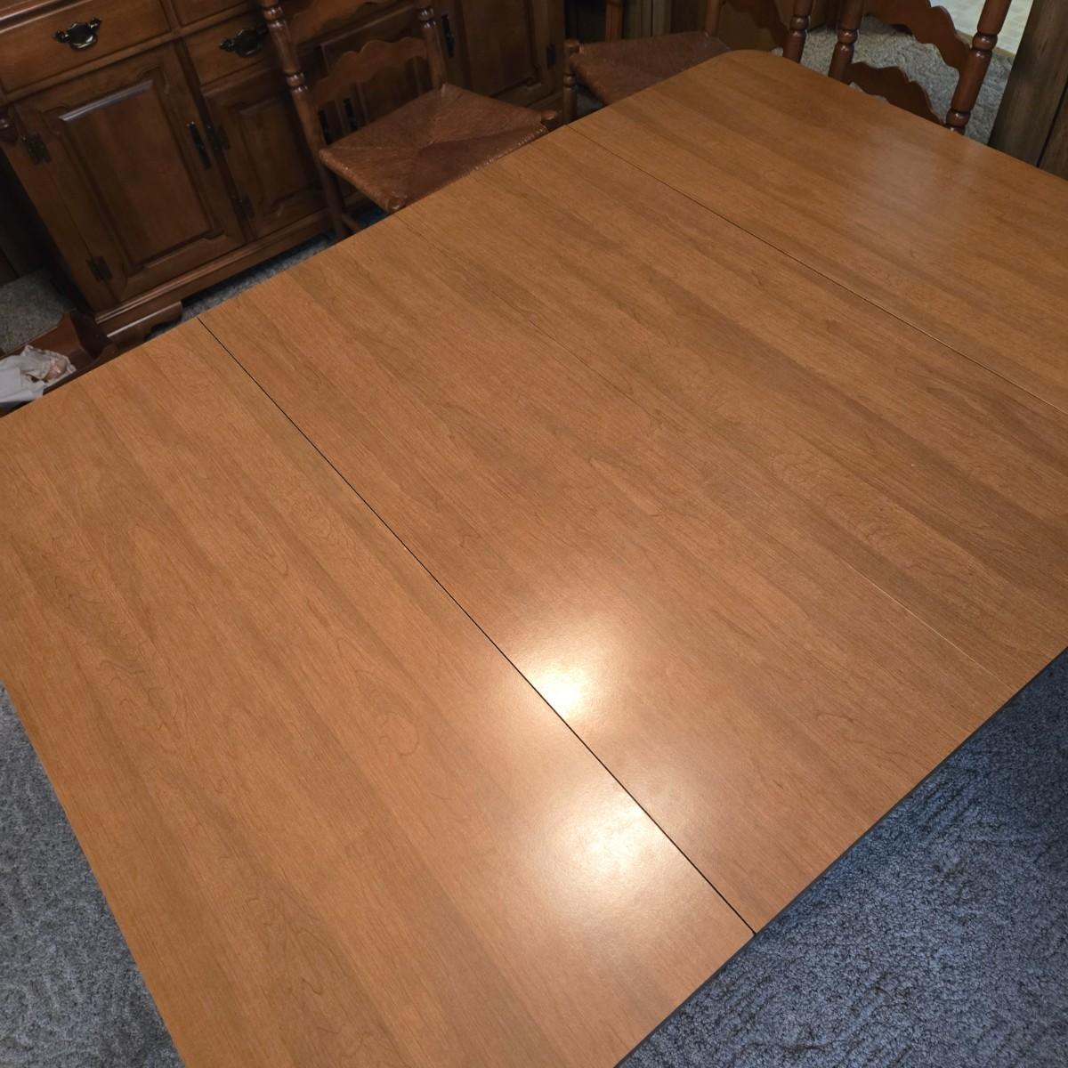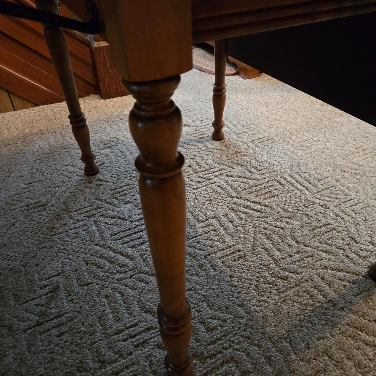 Table with leafs down is 32x 56 x 36 high/ each leaf is 23 in. /Please see all pictures as they are the best representation of the items. The pictures show condition, measurements if taken, and what is included in the lot. Due to the large amount that we photograph and the time frame, we are not always able to take measurements. All items unless noted, are pre-owned and have been used. If you purchased furniture, you must bring help. We do not allow one person to carry large furniture out on their own. Bring help, tools and a truck for the safety of our client’s homes, and your personal safety. Any damages that result to the property including walls, and floors due to moving of the furniture will be charged to the buyer. Company policy. Thank you.