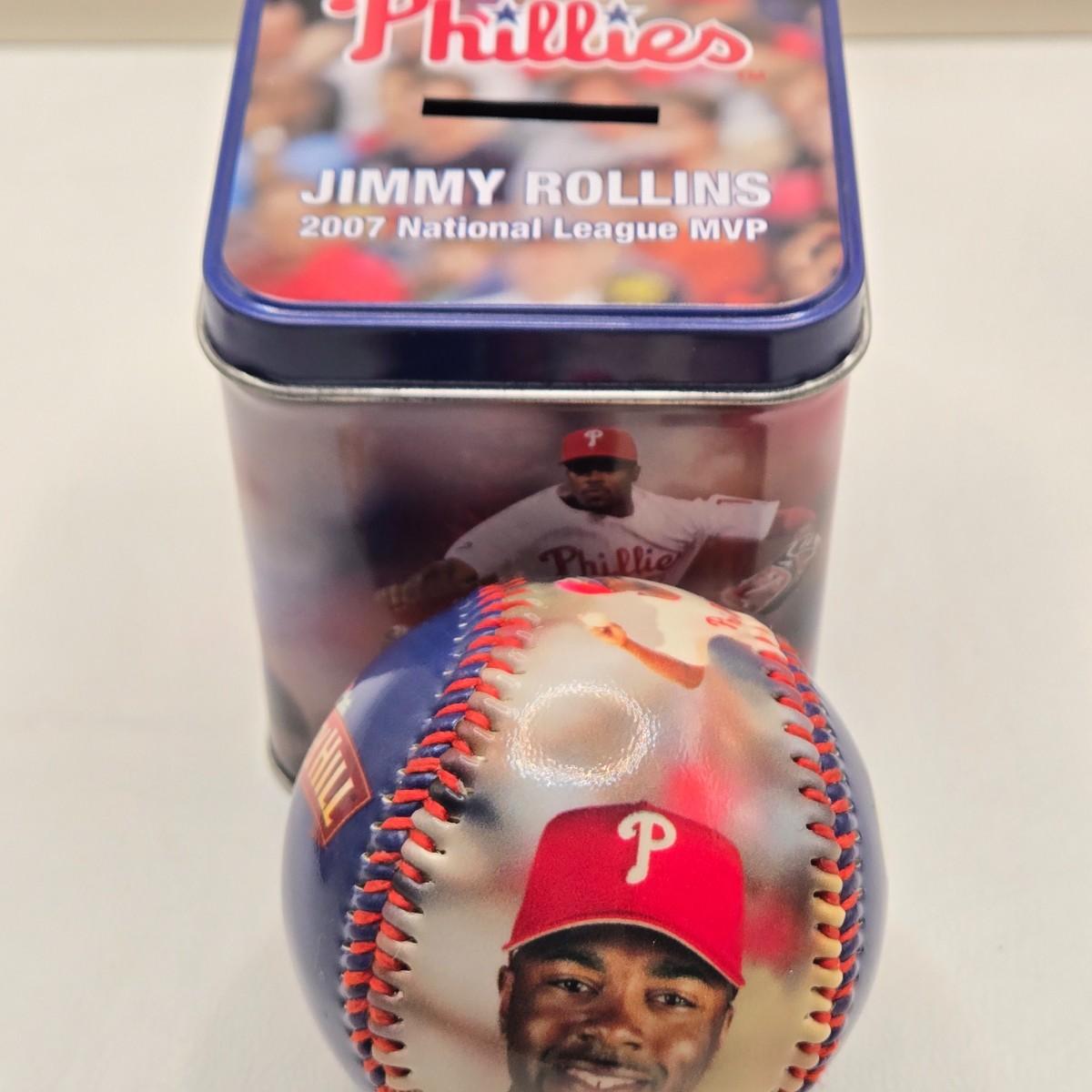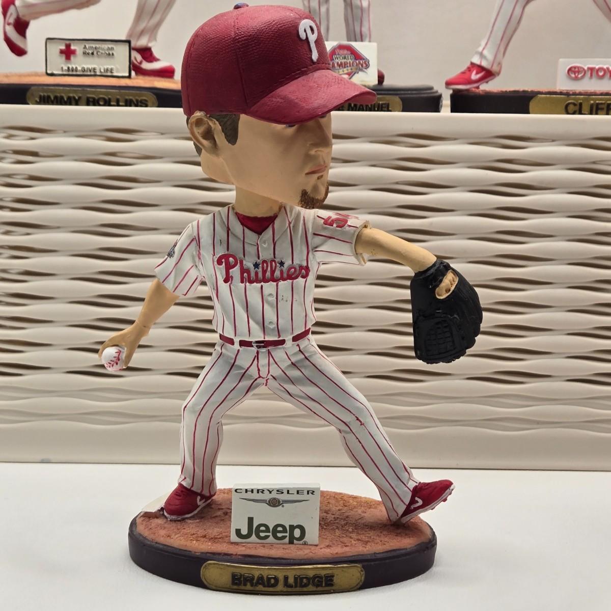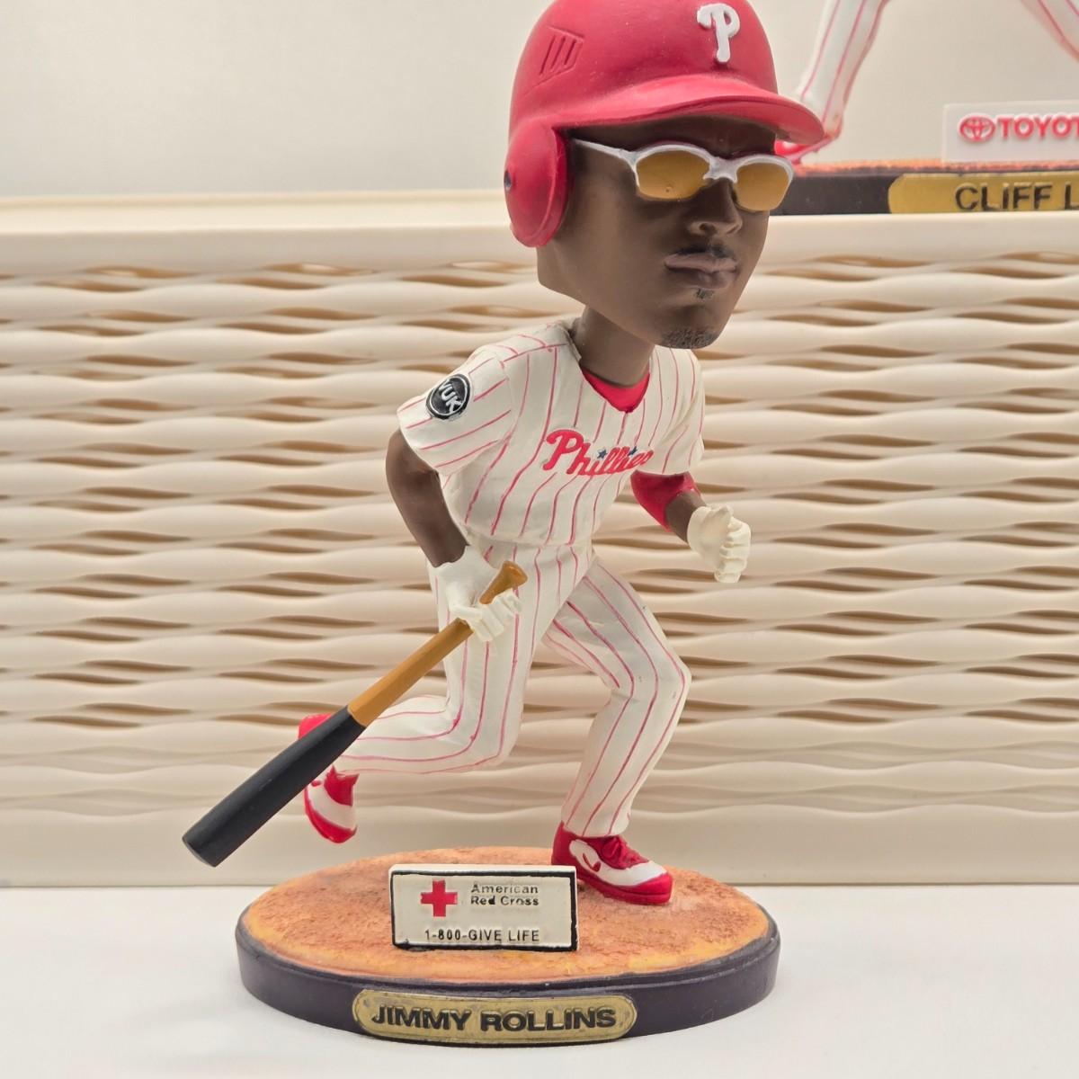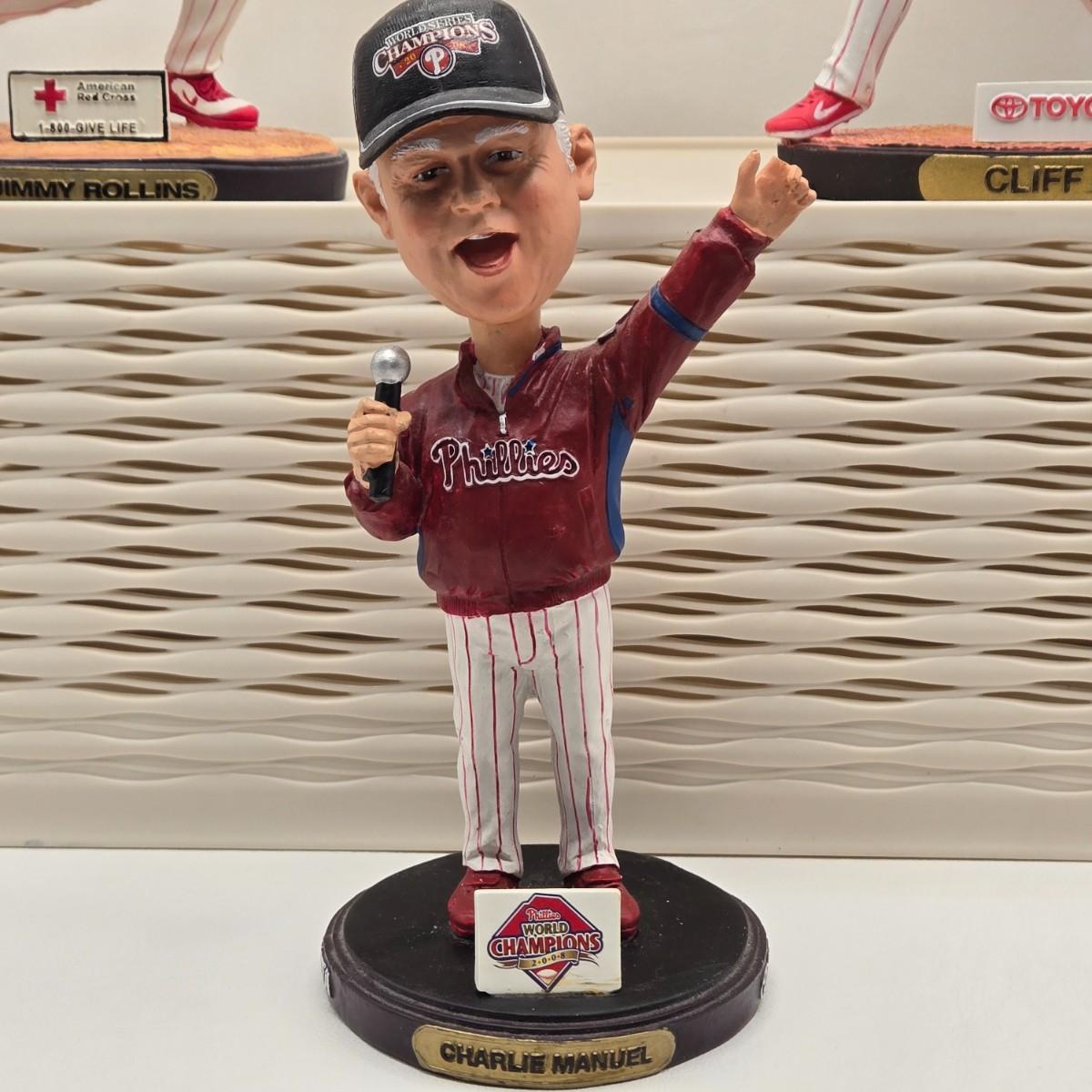 LOT 79X: Charlie Manuel, J-Roll, Cliff Lee, "Lights out Lidge" & "Chooch" Bobble Heads and J-Roll 2007 MVP Ball with Coin Bank/Let's Go Phillies!!