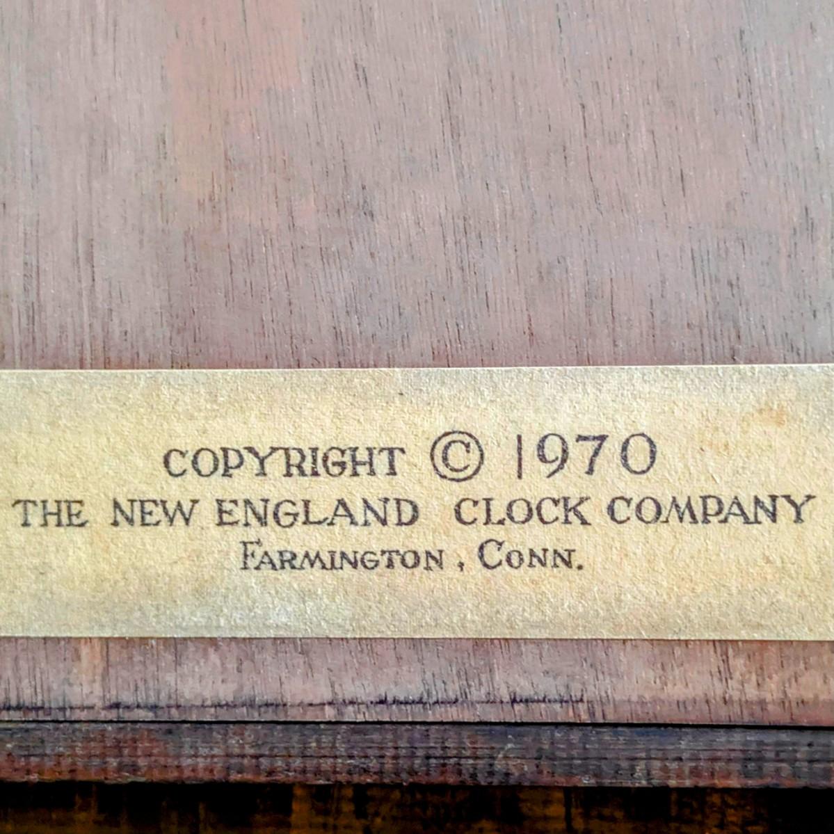 LOT 81L: Vintage Wall Clock, New England Clock Company, Farmington, CT, Battery Operated, Untested.
