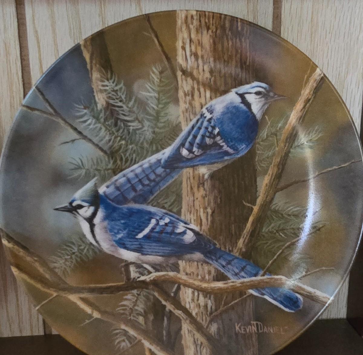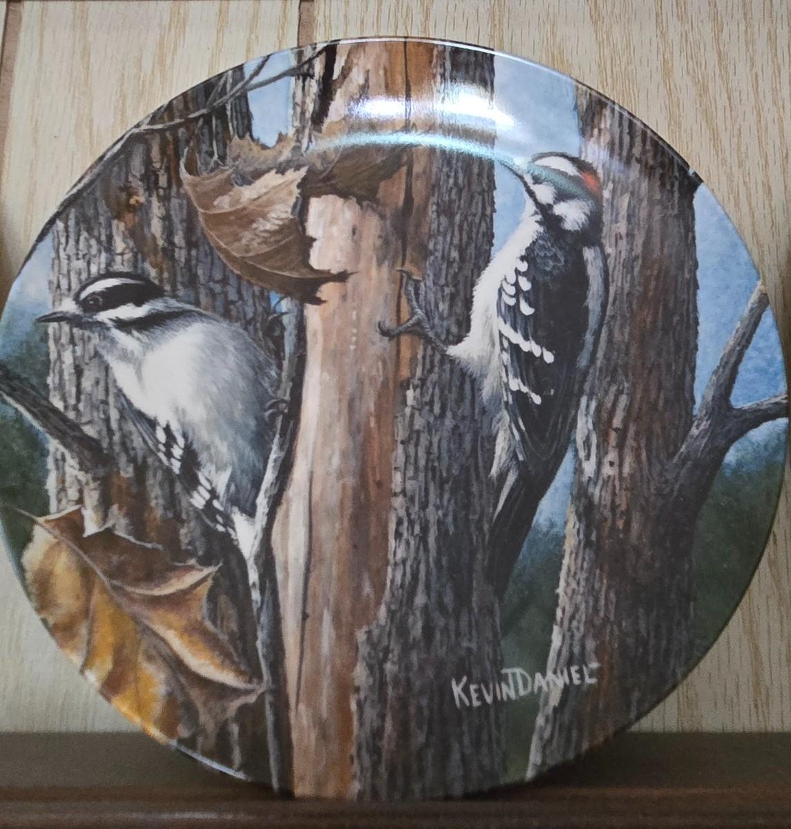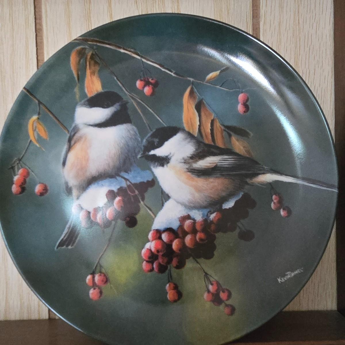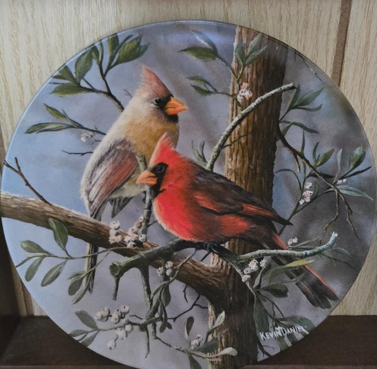 LOT 88X: Encyclopedia Britannica Birds of Your Garden Limited Edition & Numbered Knowels China Plates Painted by Kevin Daniel with Wooden Plate Rack