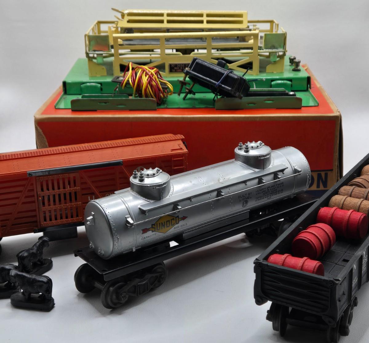LOT 105X: Lionel Train Cars, Stockyard, and More