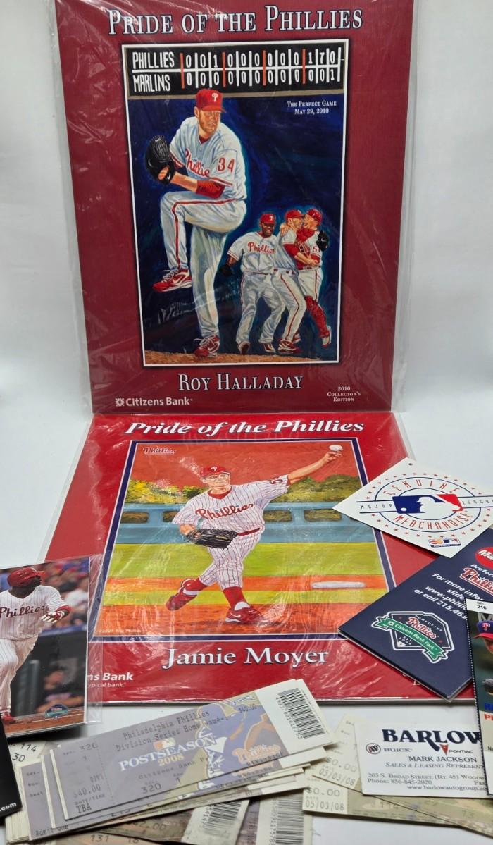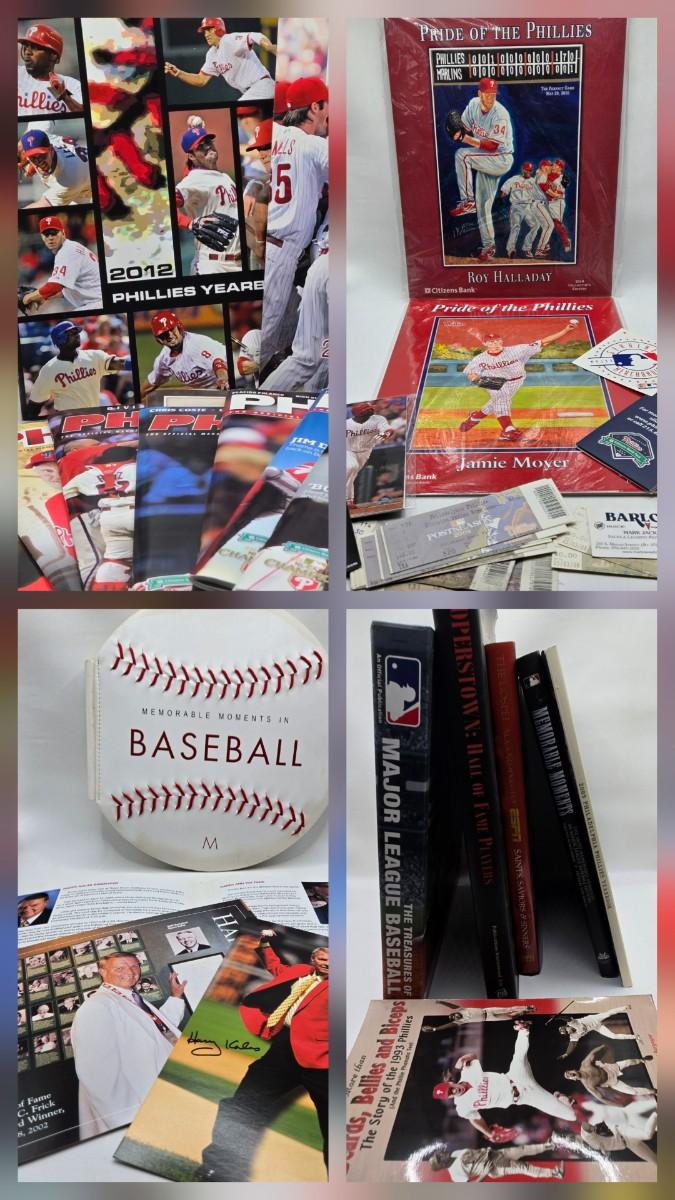 LOT 111X: "The Boys of Summer" / Phillies Magazines, Posters, Calendars, Yearbook, Used Tickets, Harry Kalas Photos (One Signed, no COA), and Multiple Baseball Books