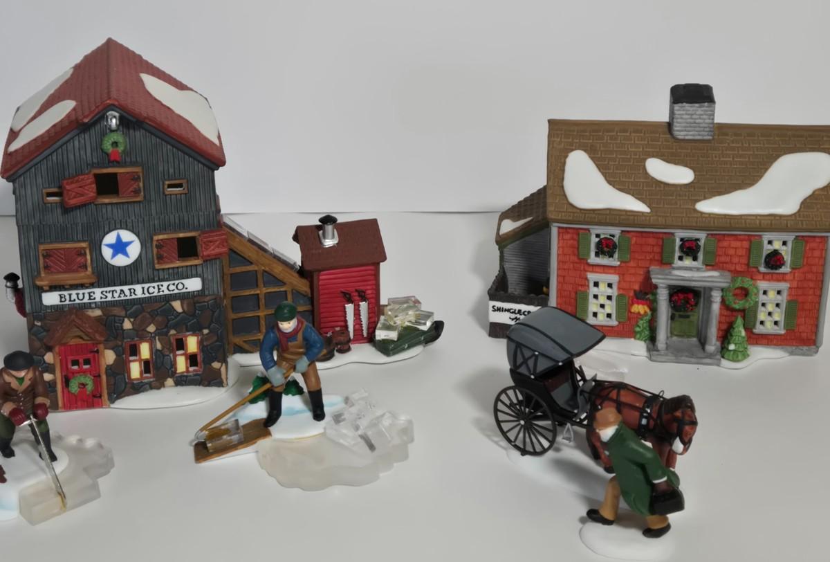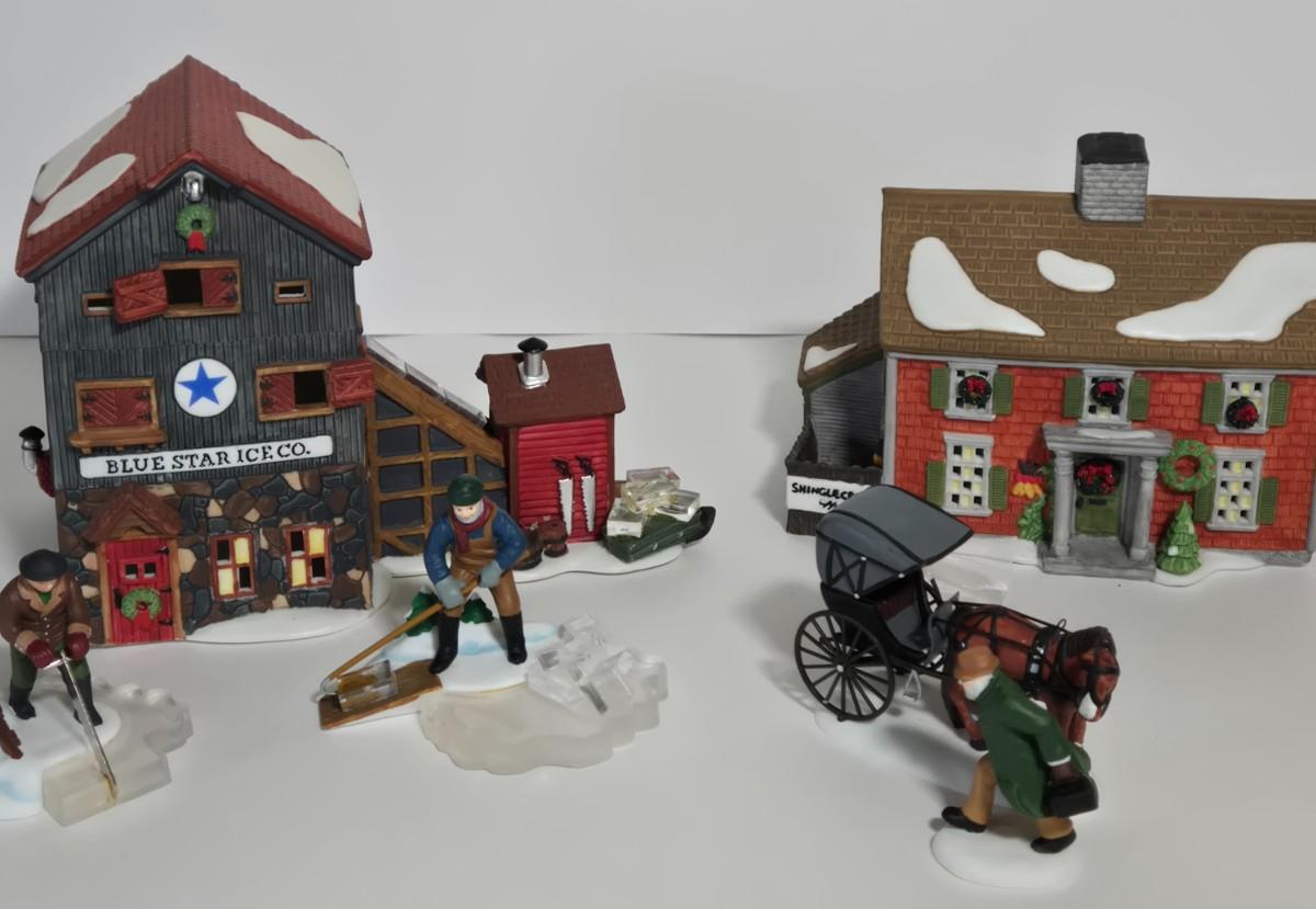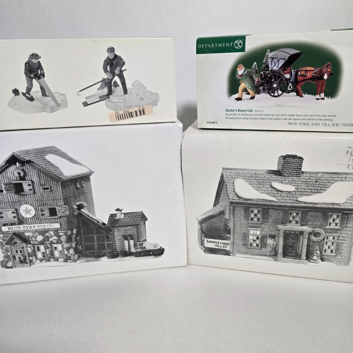 LOT 118X: Dept. 56 "Blue Star Ice Company", "Shingle Creek House", " Doctor's House Call", and "Blue Star Ice Harvesters" / All with Original Boxes