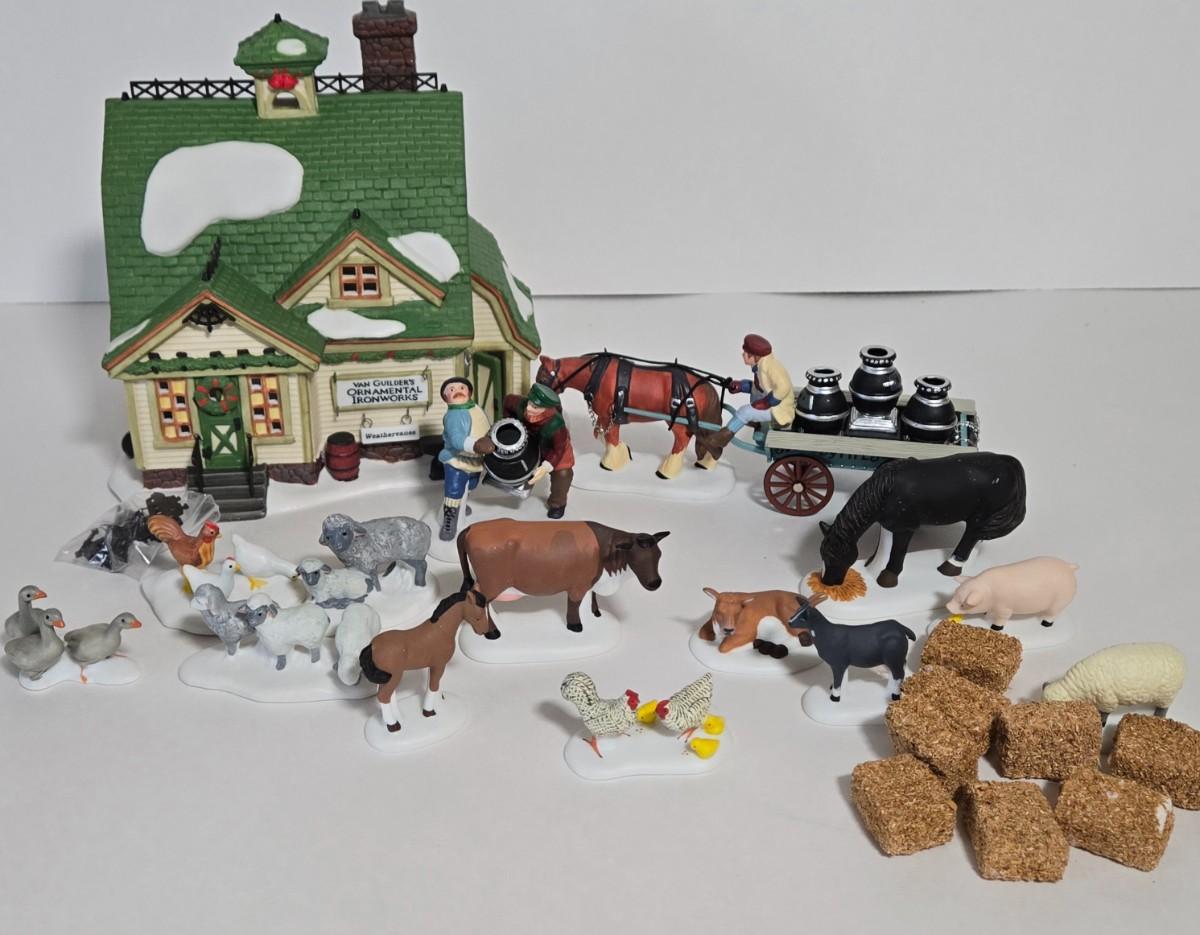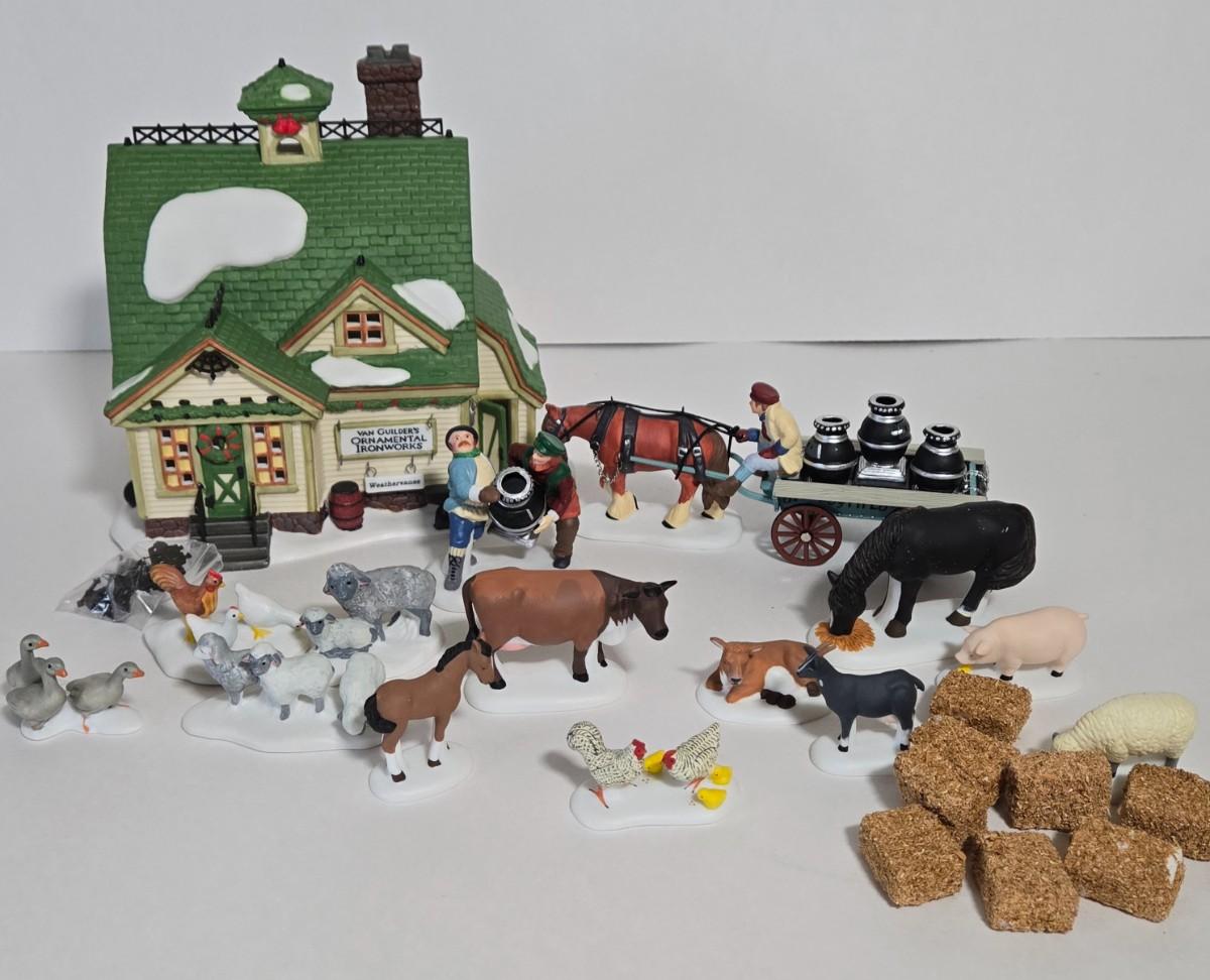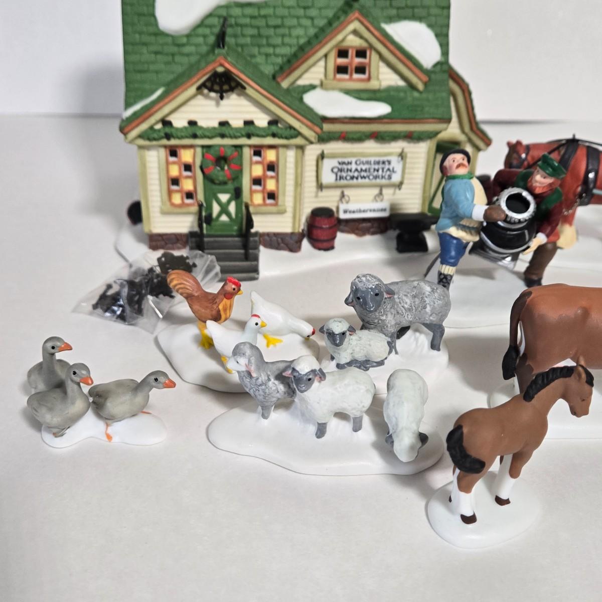 LOT 119X: Dept. 56 "Van Guilder's Ornamental Ironworks", "A New Potbellied Stove for Christmas", and 2 Sets of "Farm Animals" / All with Original Boxes