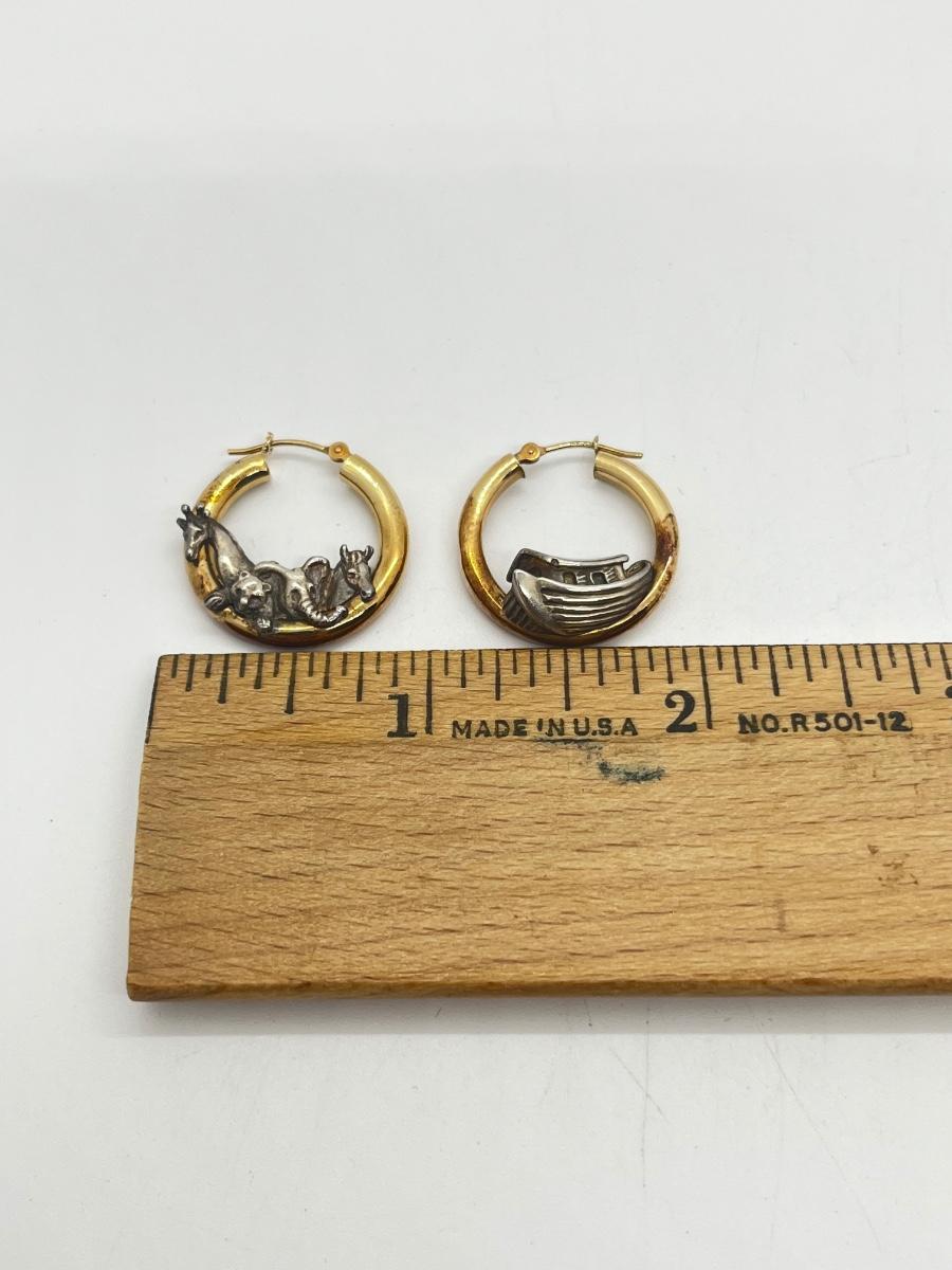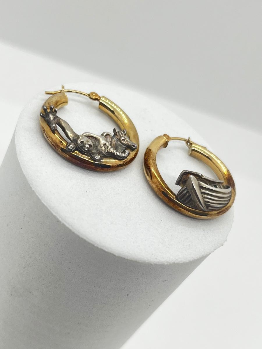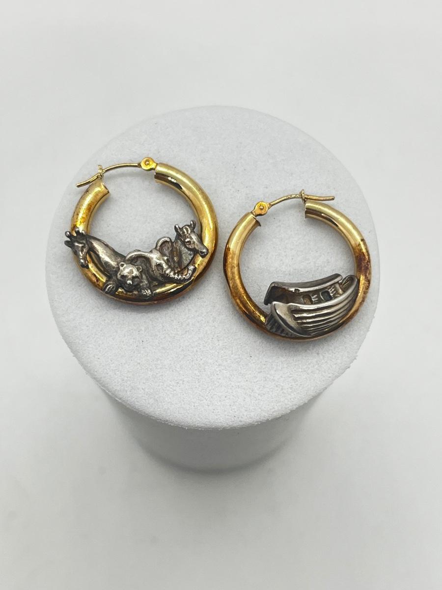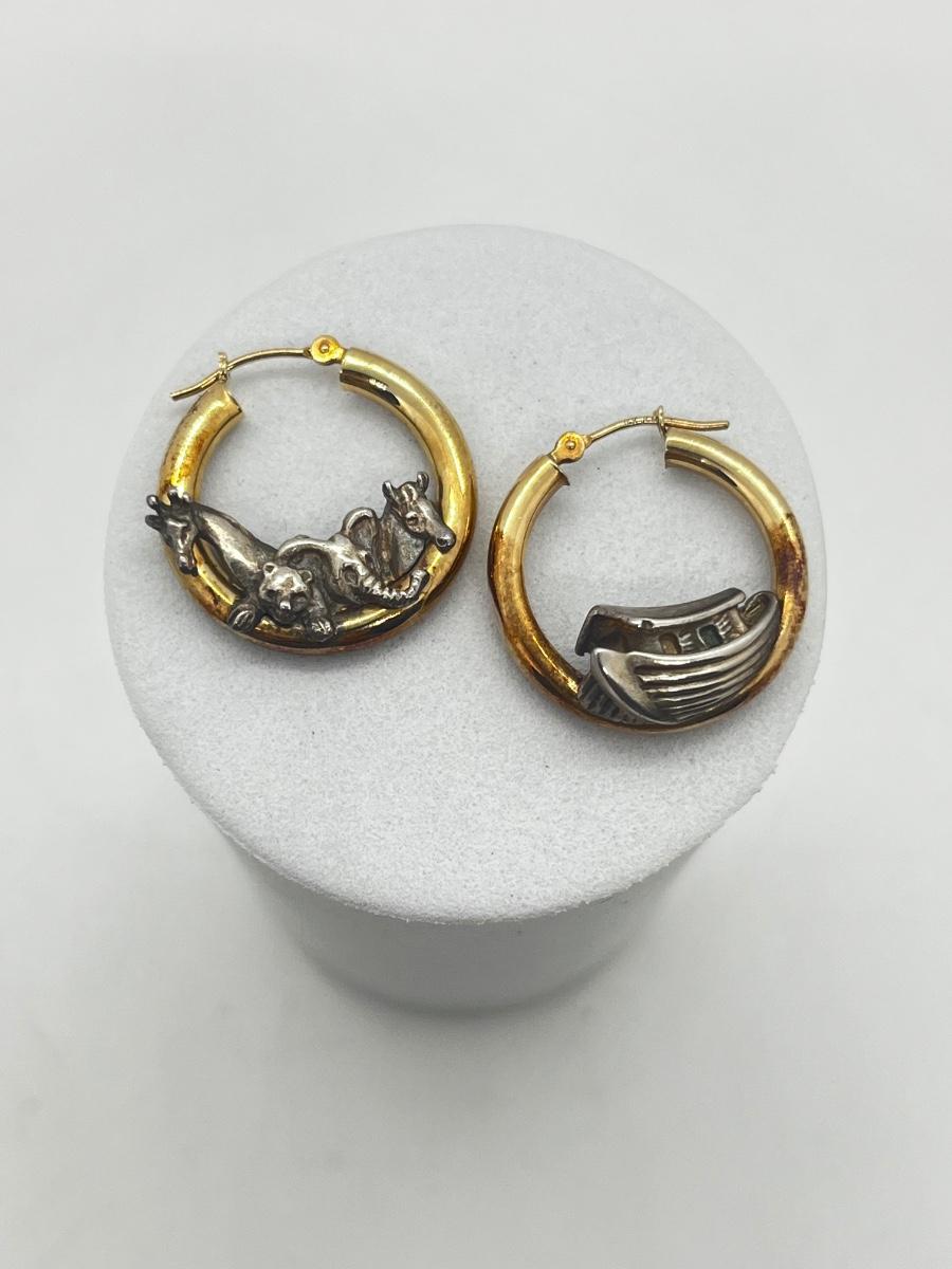 LOT 124J: 14K Yellow Gold and Sterling Silver Noah's Ark Hoop Earrings - 3.6 GTW
