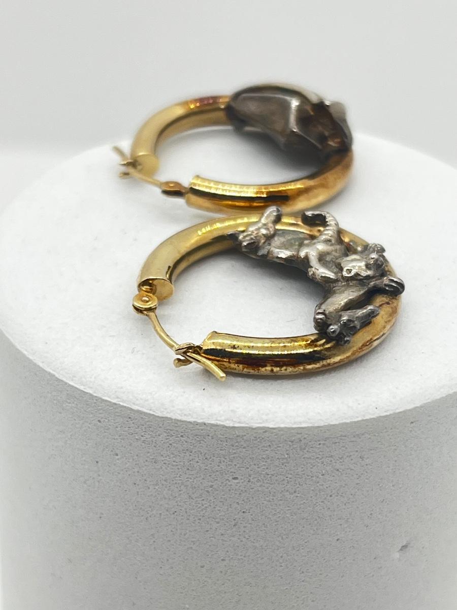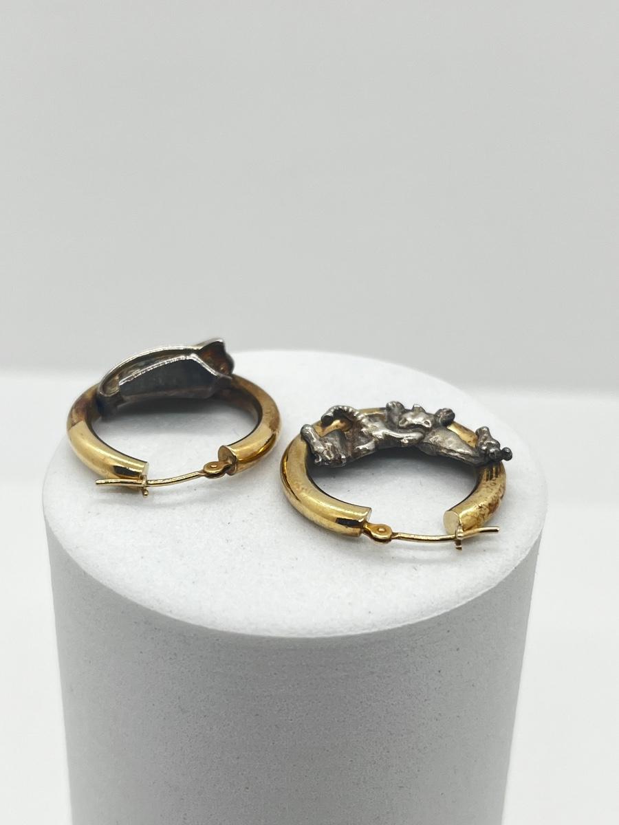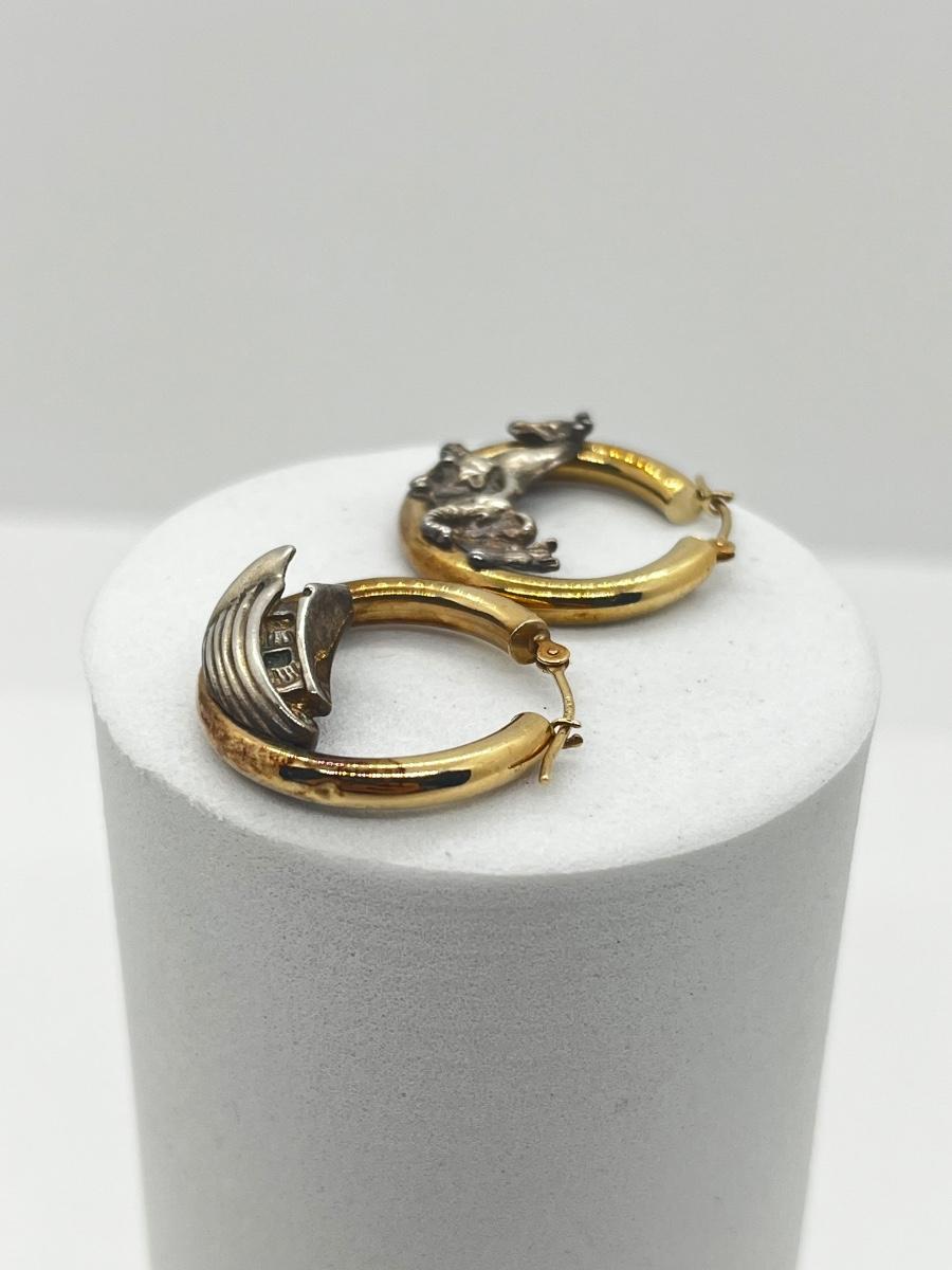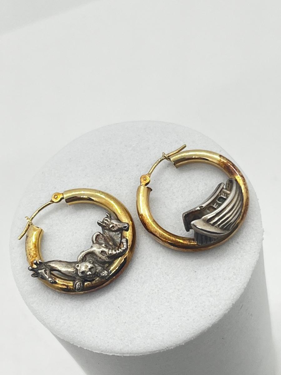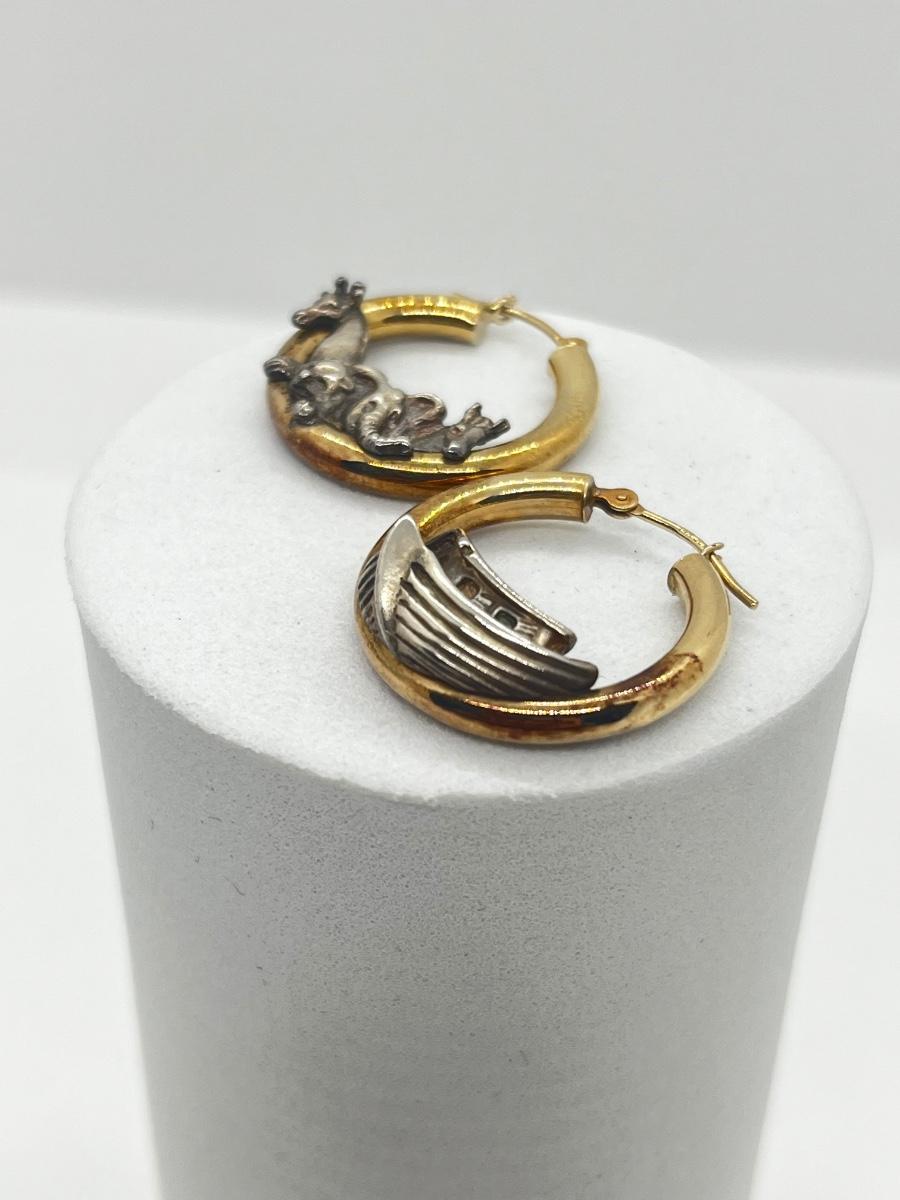 LOT 124J: 14K Yellow Gold and Sterling Silver Noah's Ark Hoop Earrings - 3.6 GTW