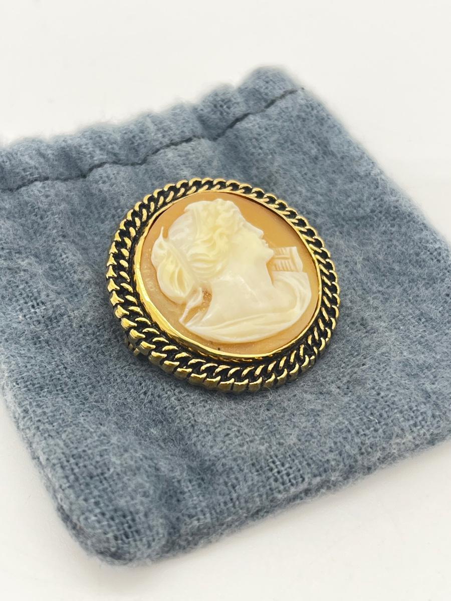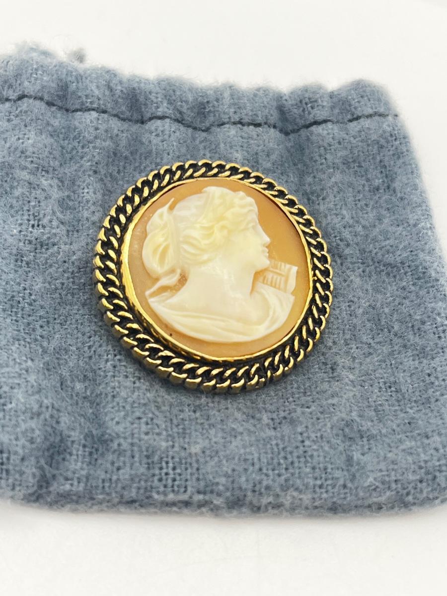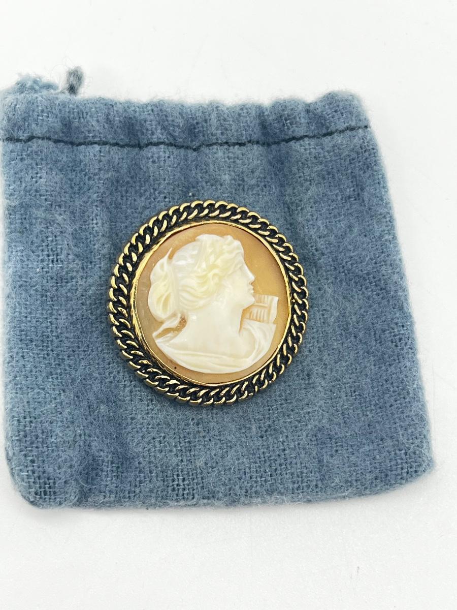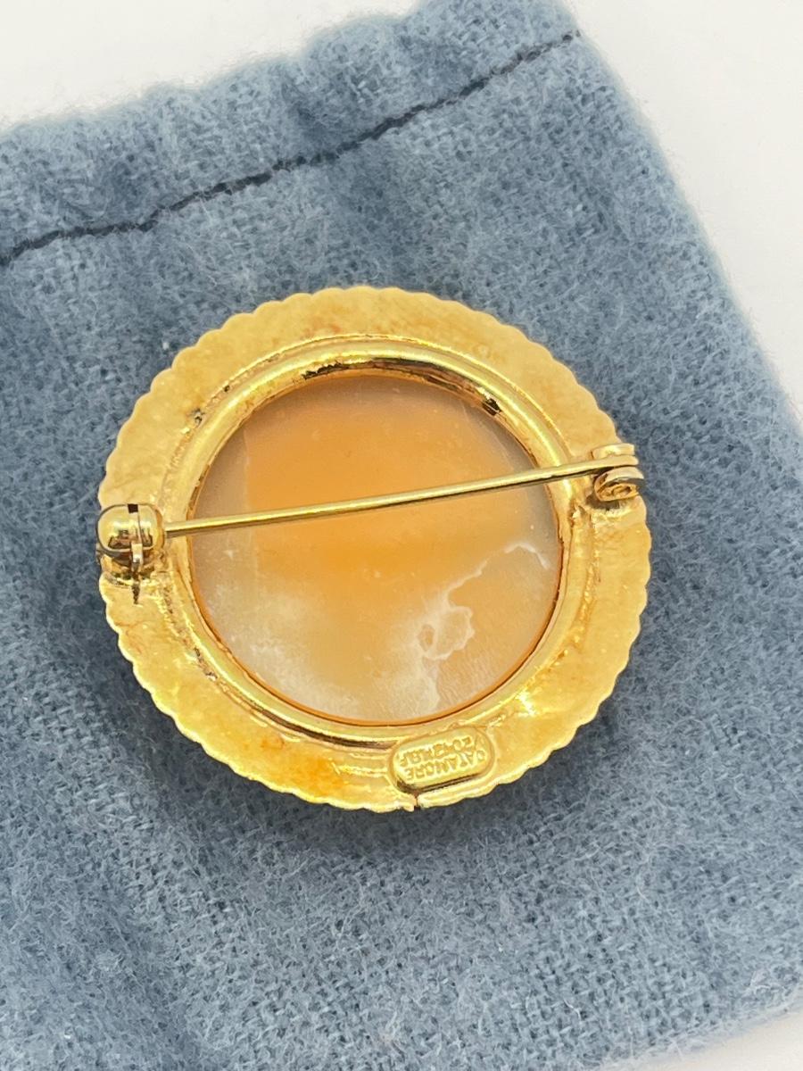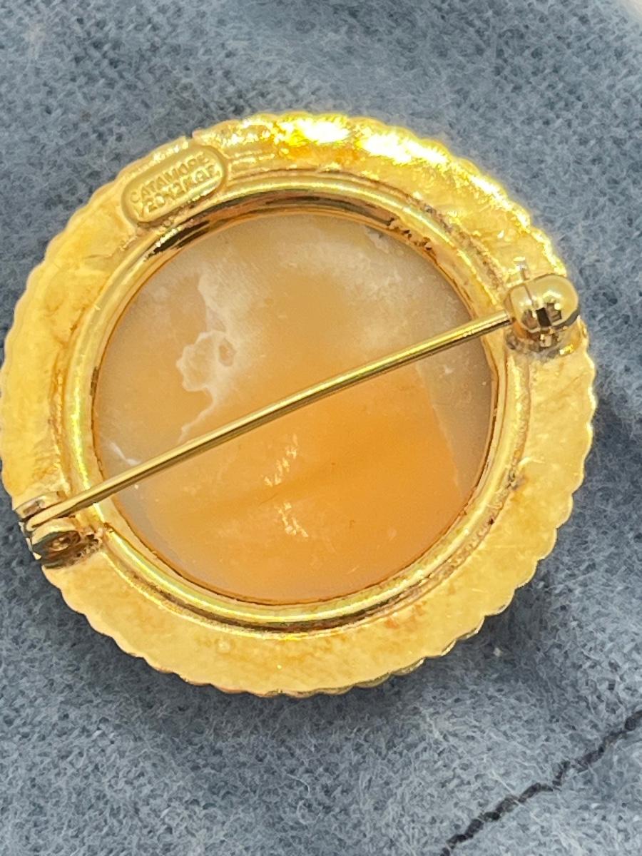LOT 126J: Vintage Catamore Carved Shell Cameo Brooch/Pin - 12K Gold Filled