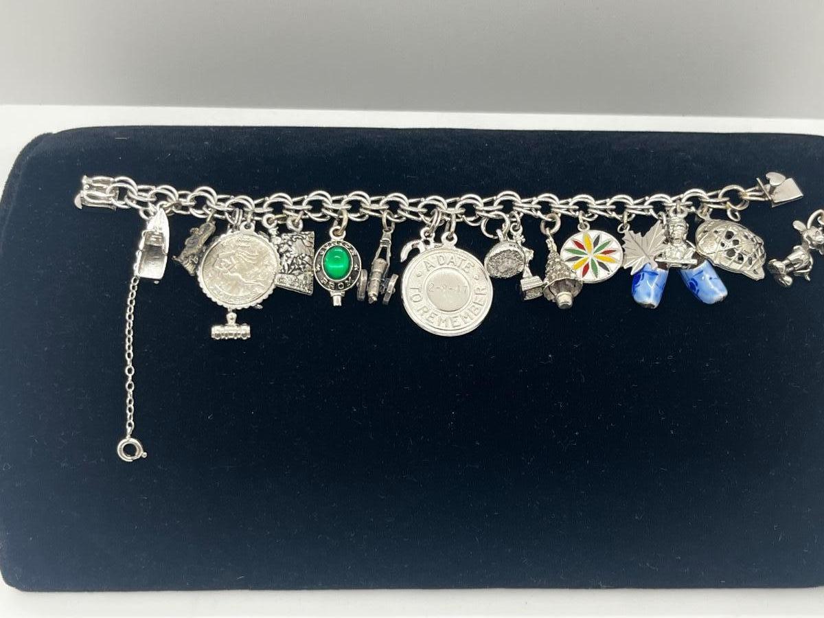 LOT 132J: Vintage Elco Sterling Charm Bracelet - 45.2 GTW