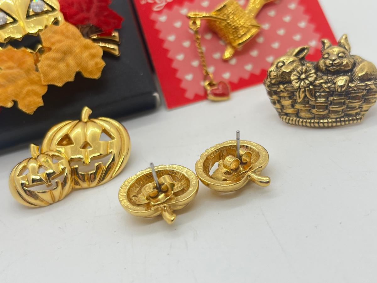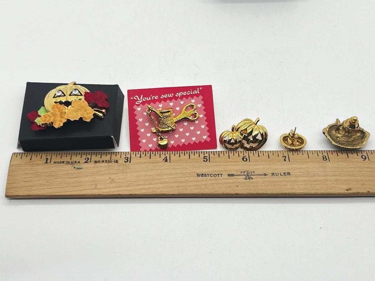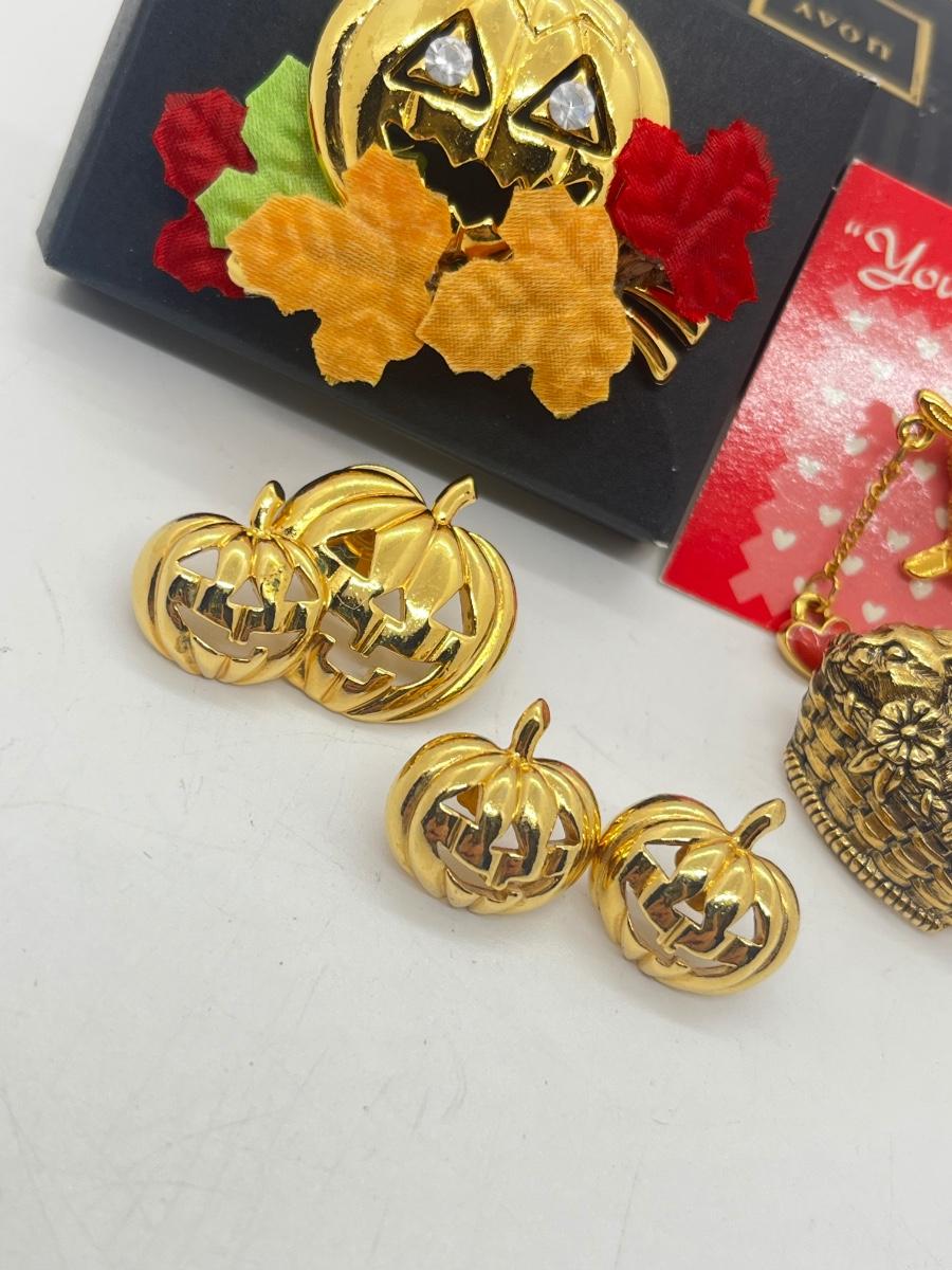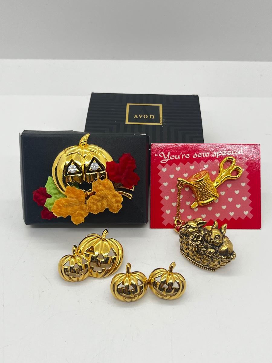 LOT 134J: Vintage Avon Brooch/Pin Lot Including Jack-O-Lantern with Matching Pierced Earrings