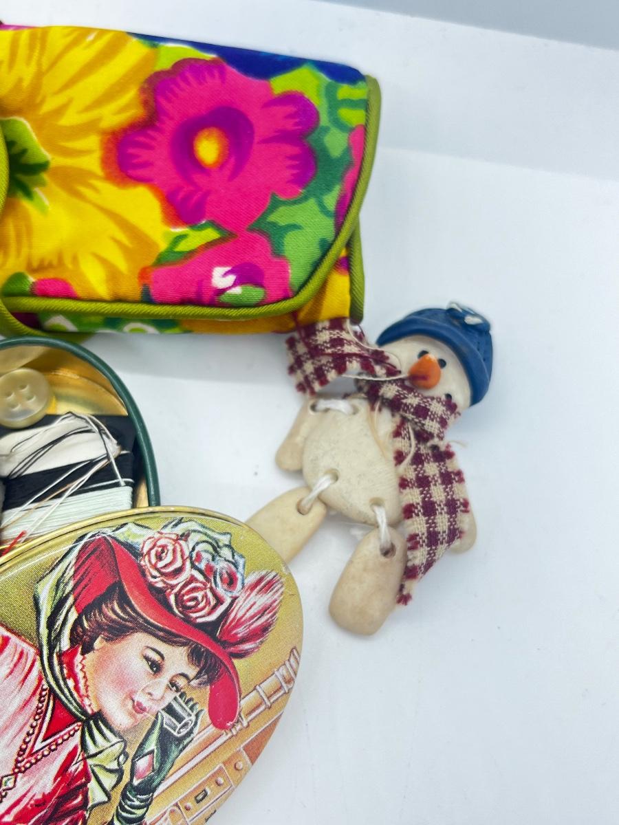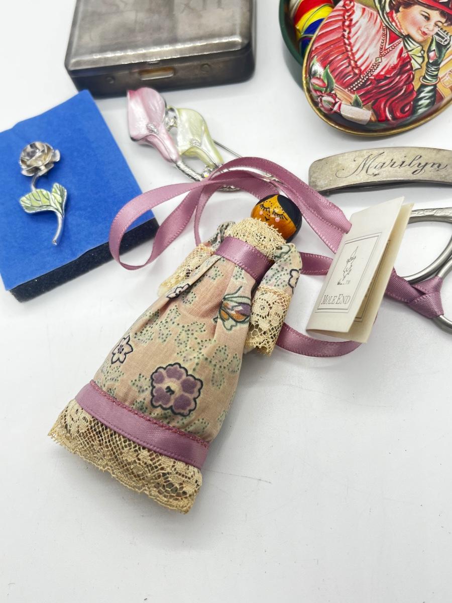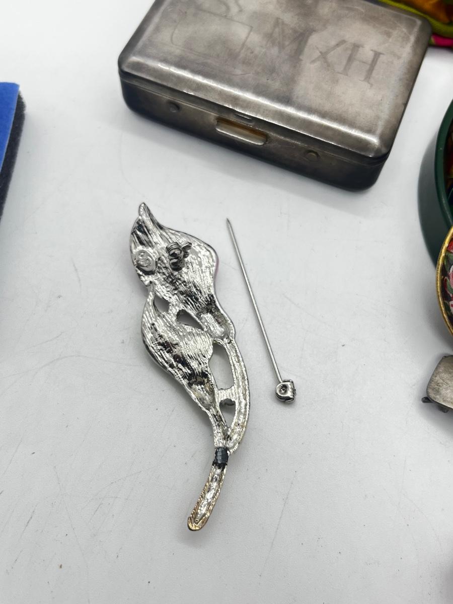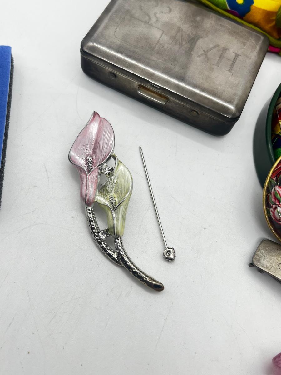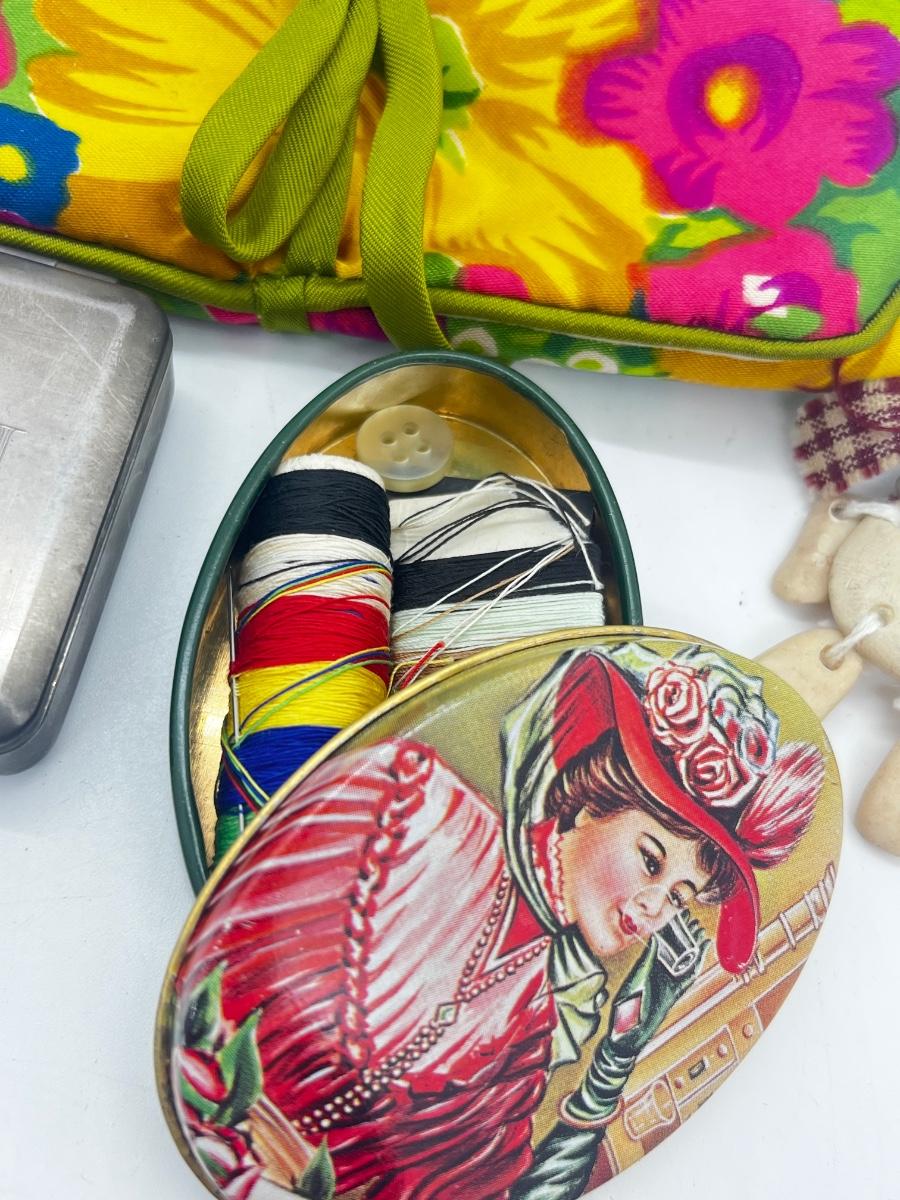 LOT 139J: Vintage Odds and Ends Collection: Silver Plated Box for Sweetener Packets, "Marilyn" Barette, Sewing Tin, Scissors and More!