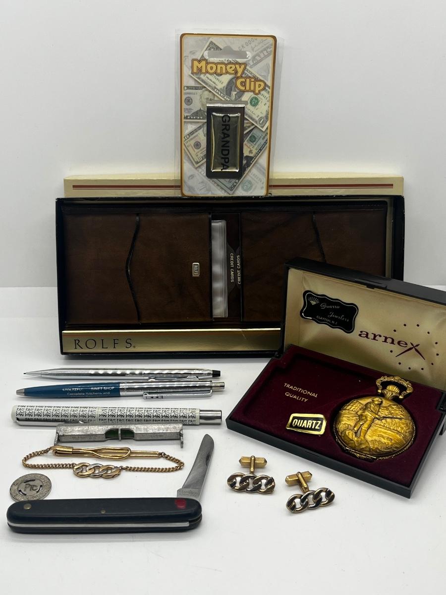 LOT 140J: Assorted Men's Lot: New in Package Wallet, "Grandpa" Money Clip, Pocket Knife and More!