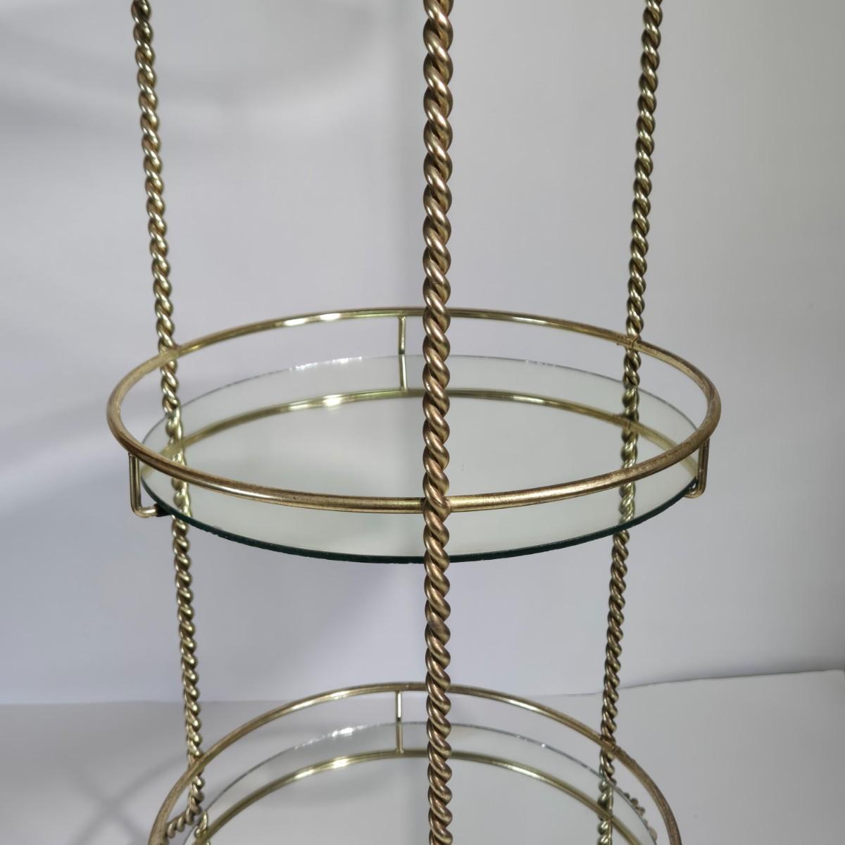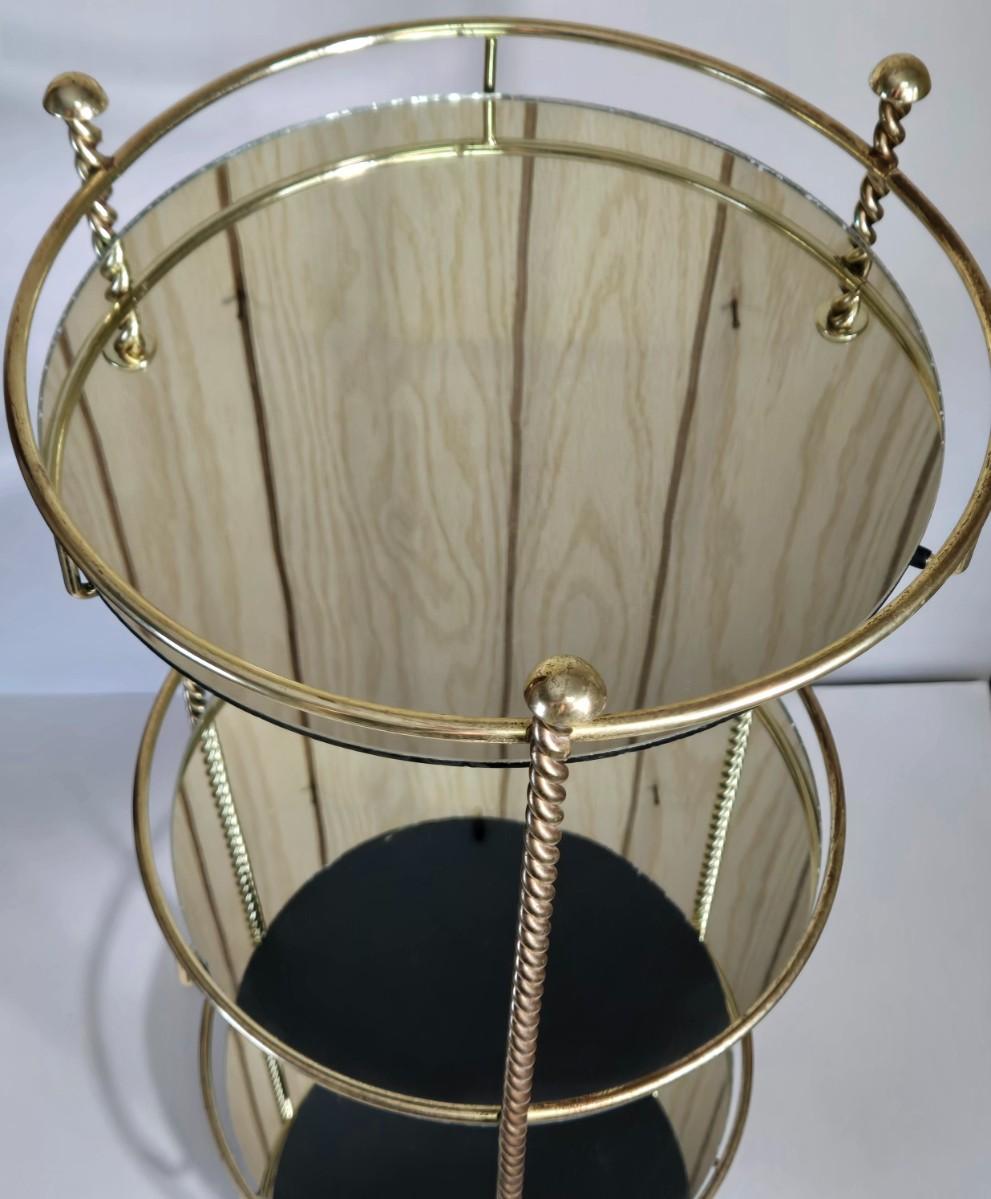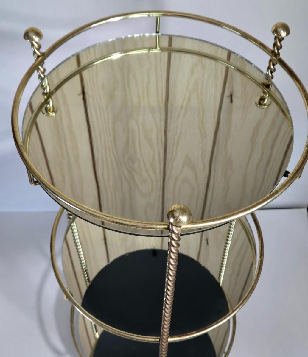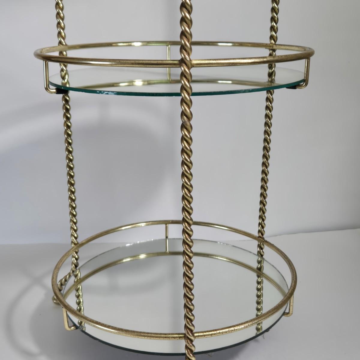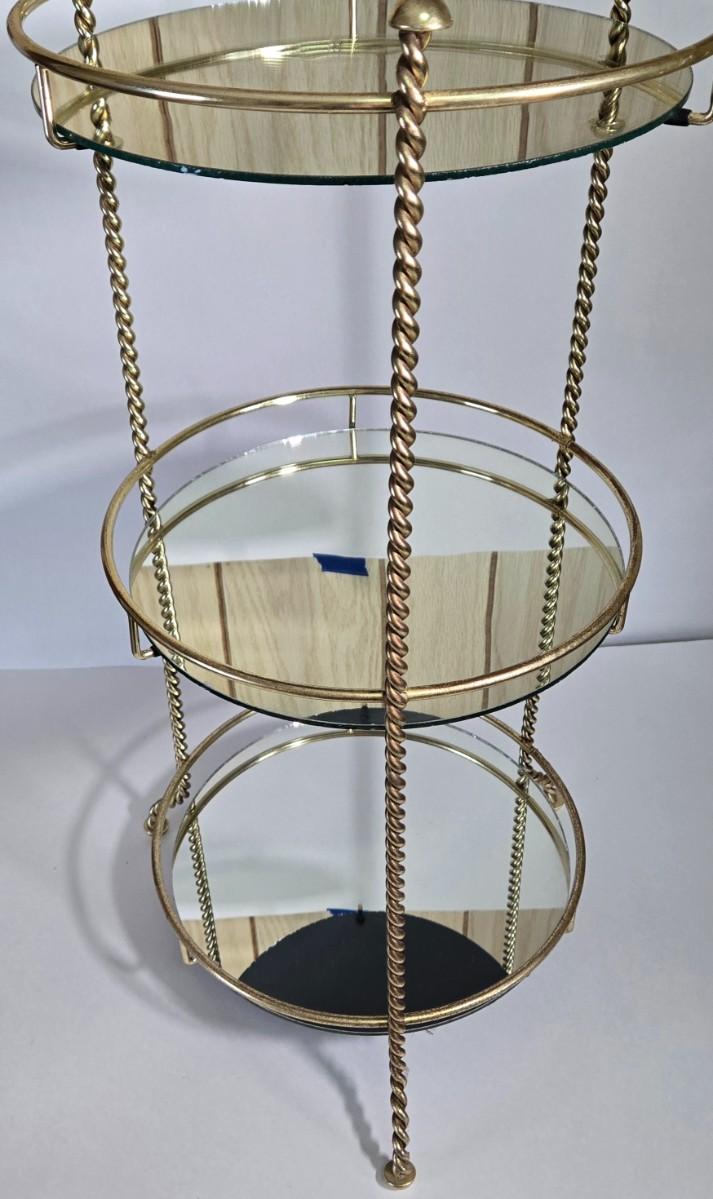 LOT 165X: MCM Wooden Magazine Holder and Brass-tone and Mirror Round Plant Stand/Side Table