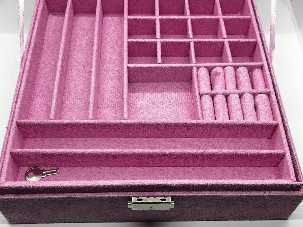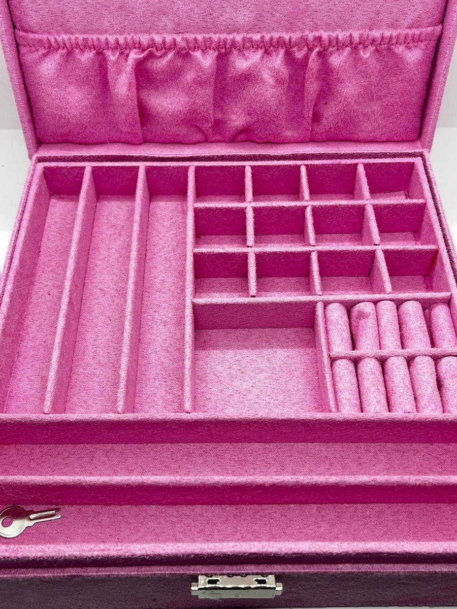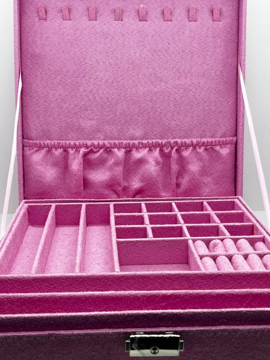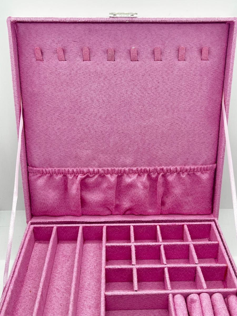 LOT 279: Jewelry Boxes: Vintage Wooden Red Velvet Lined + Pink Faux Suede