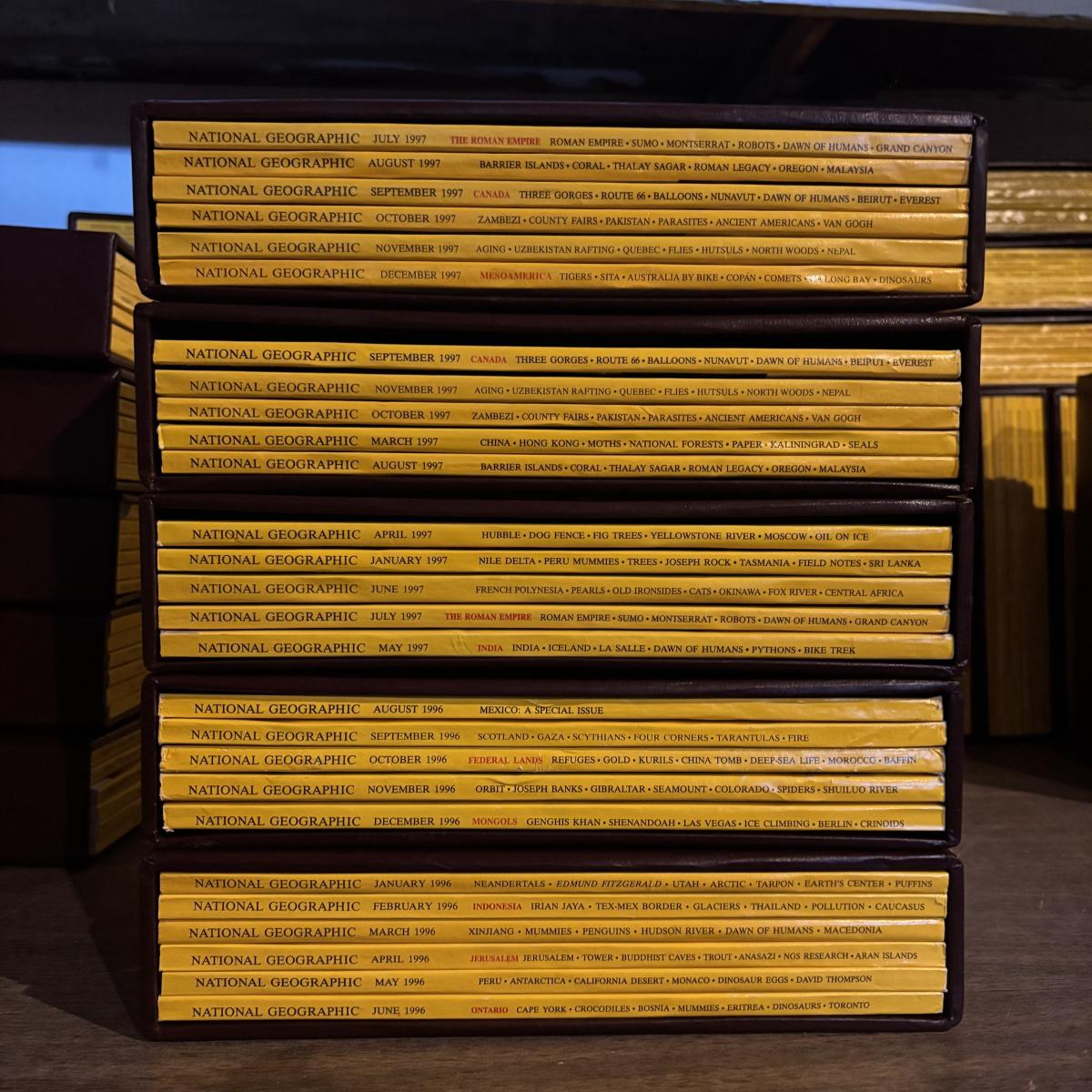LOT 281: National Geographic Magazine in Faux Leather Slip Cases