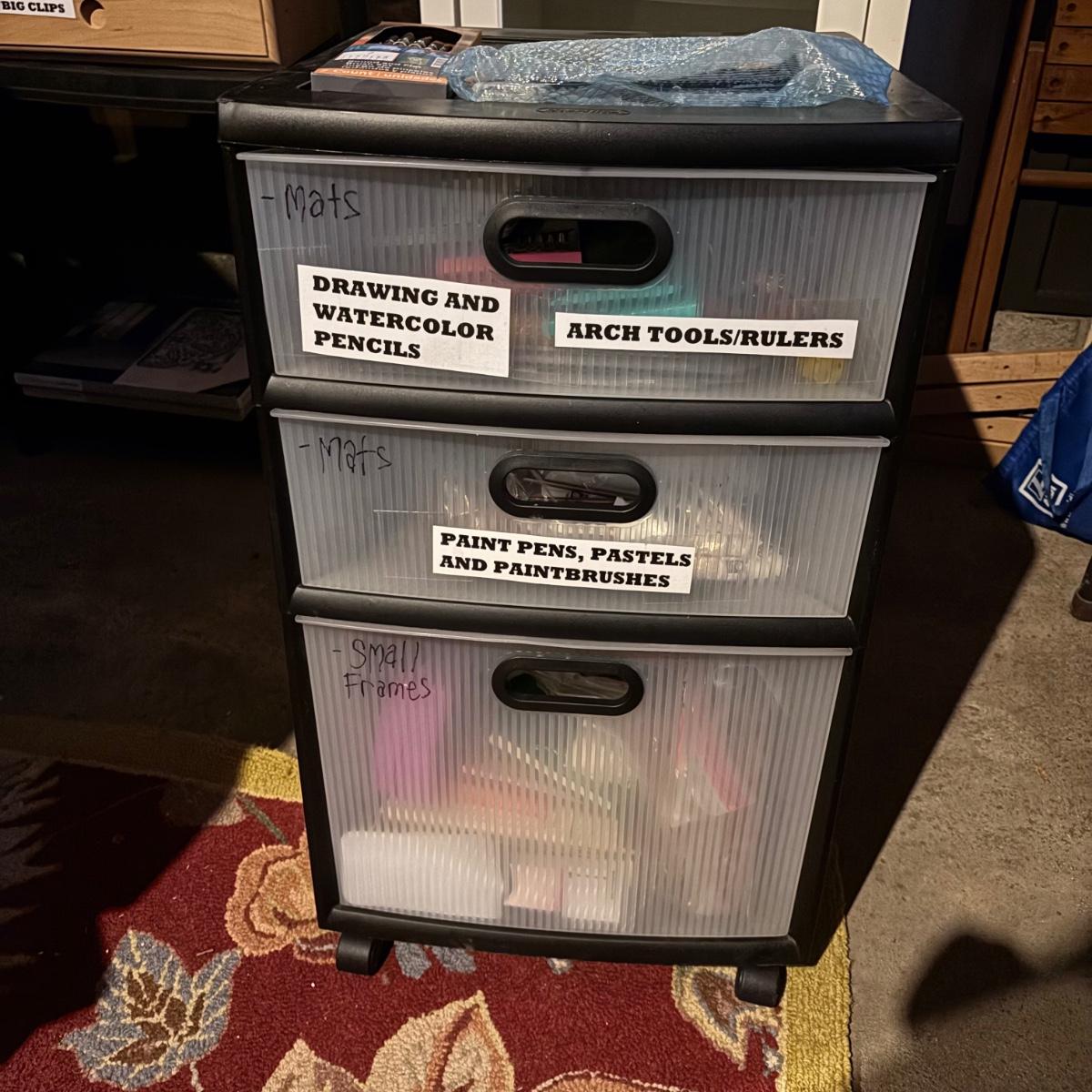LOT 283: Three Drawer Plastic Organizer Full of Drawing/Painting/Crafting Supplies