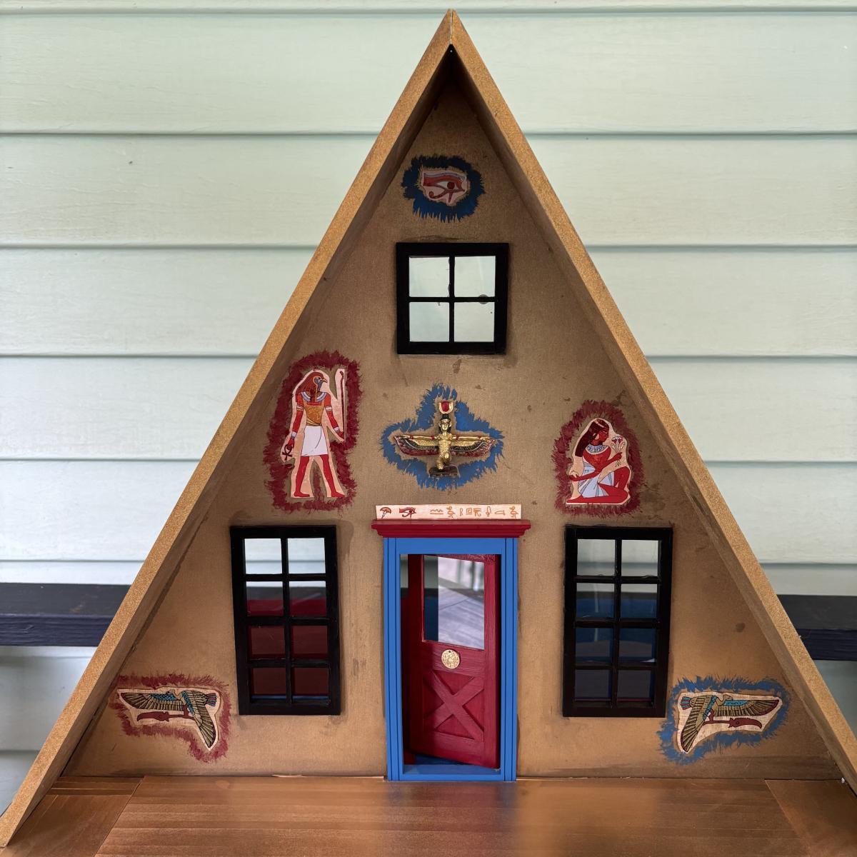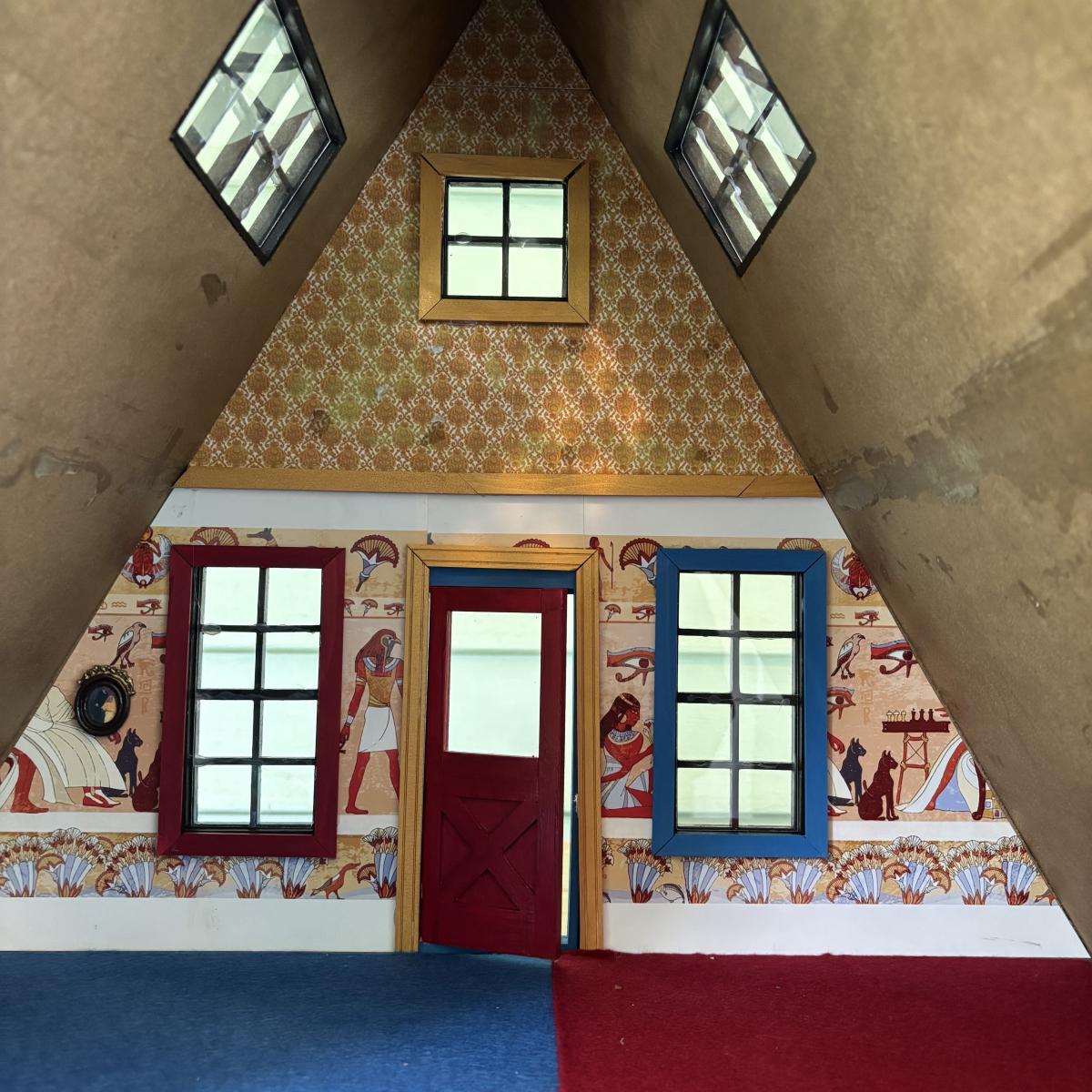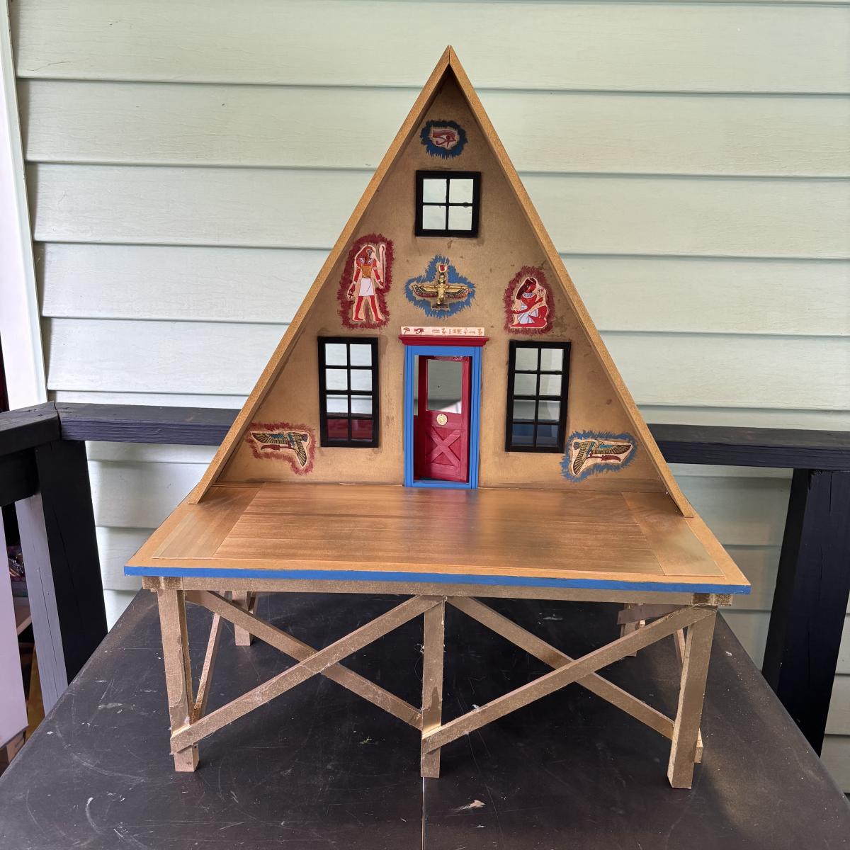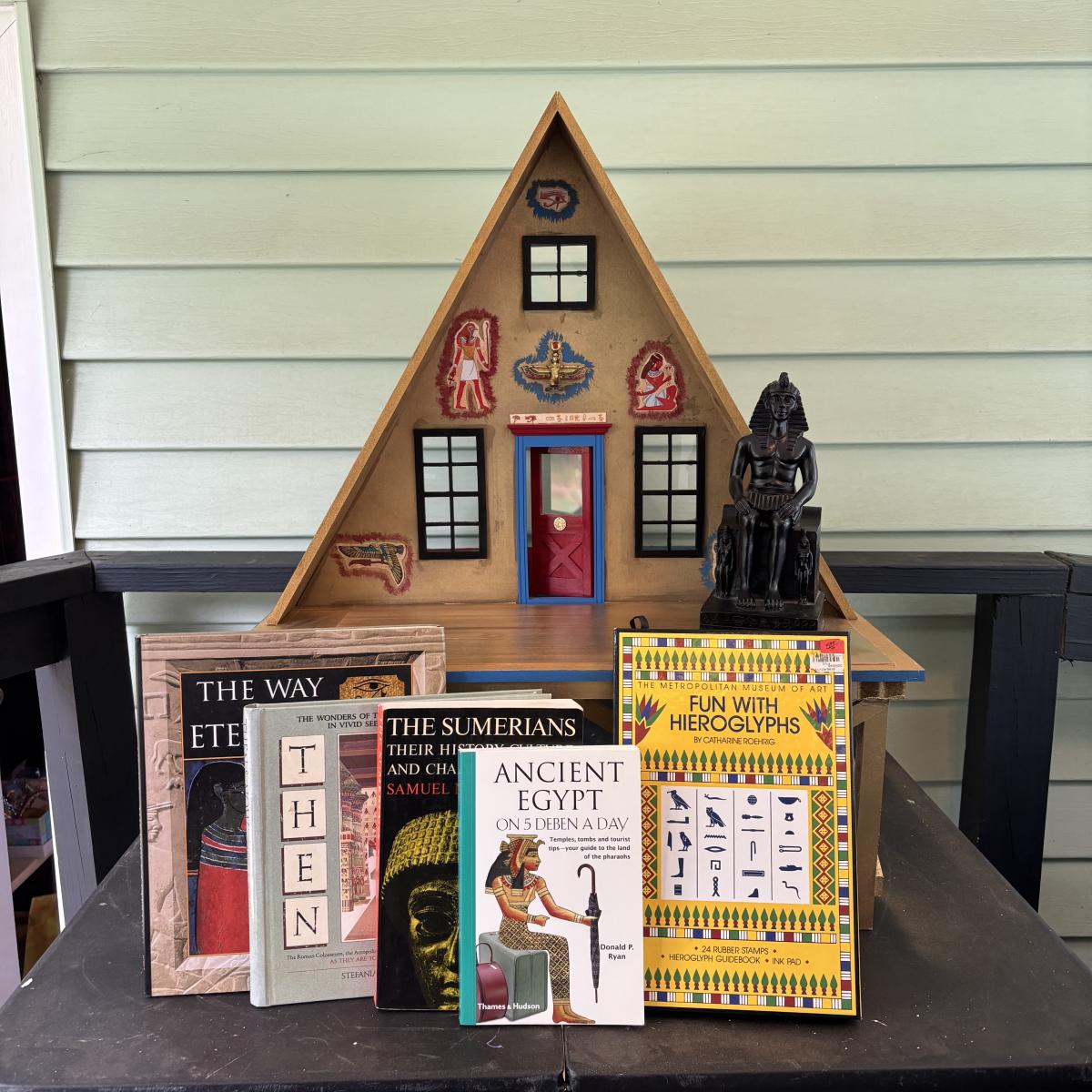 LOT 287: Handcrafted Egyptian A-Frame Style Doll House and Books