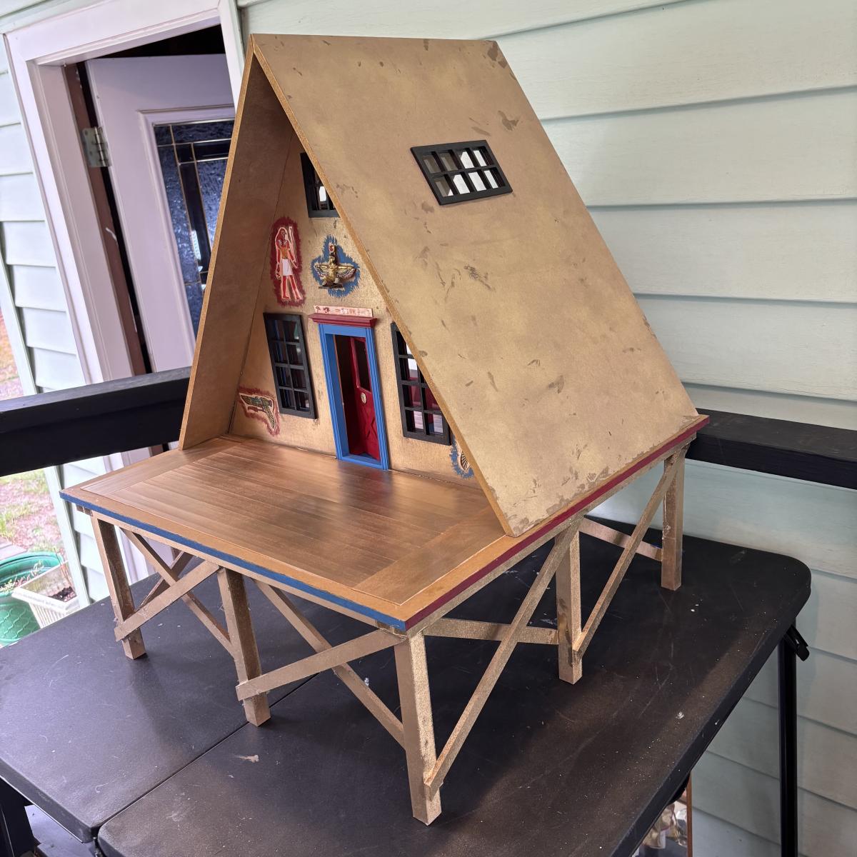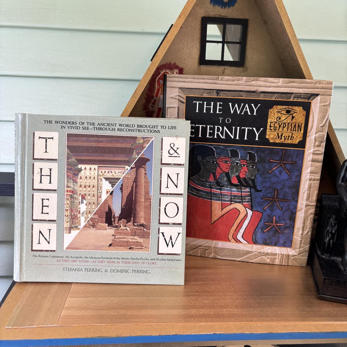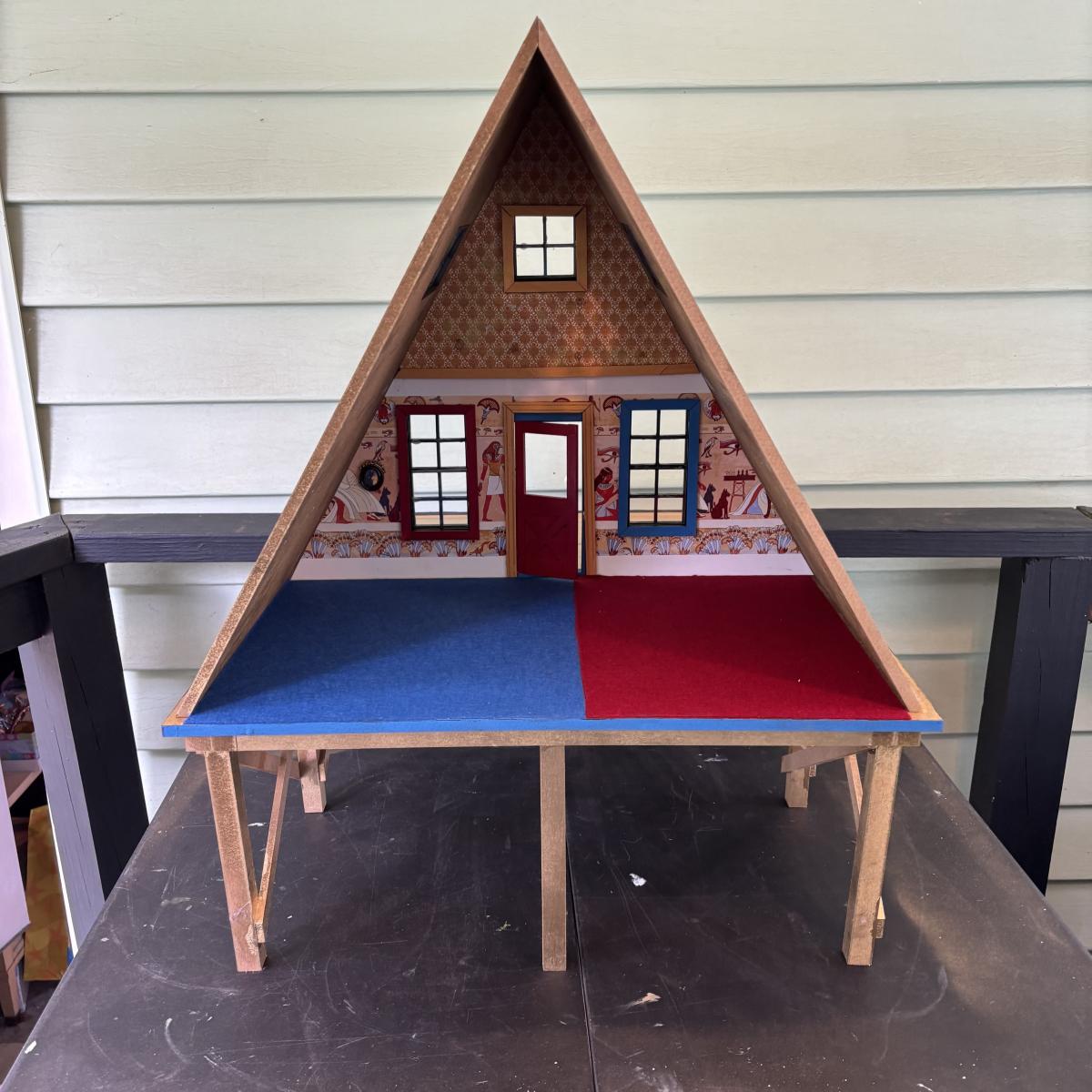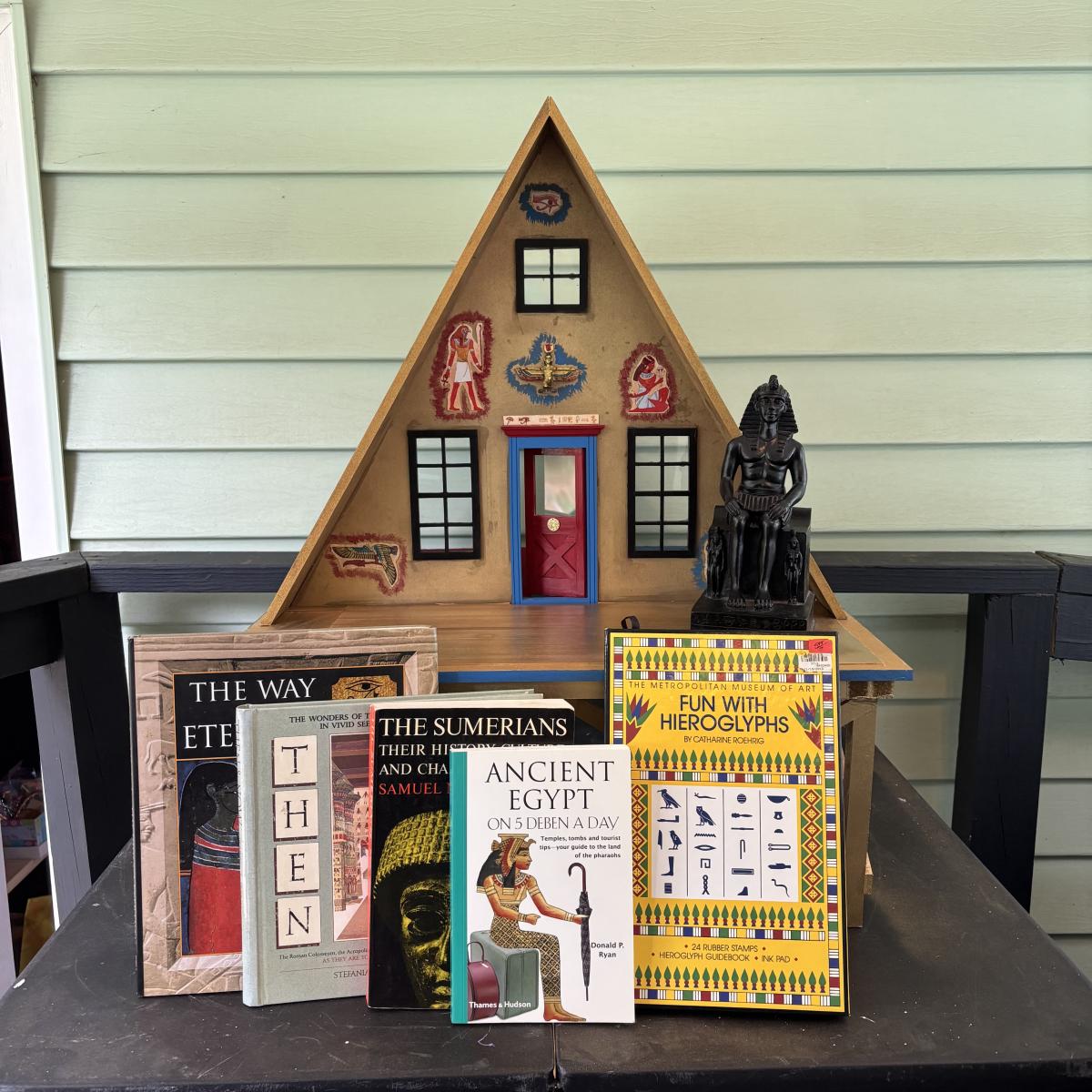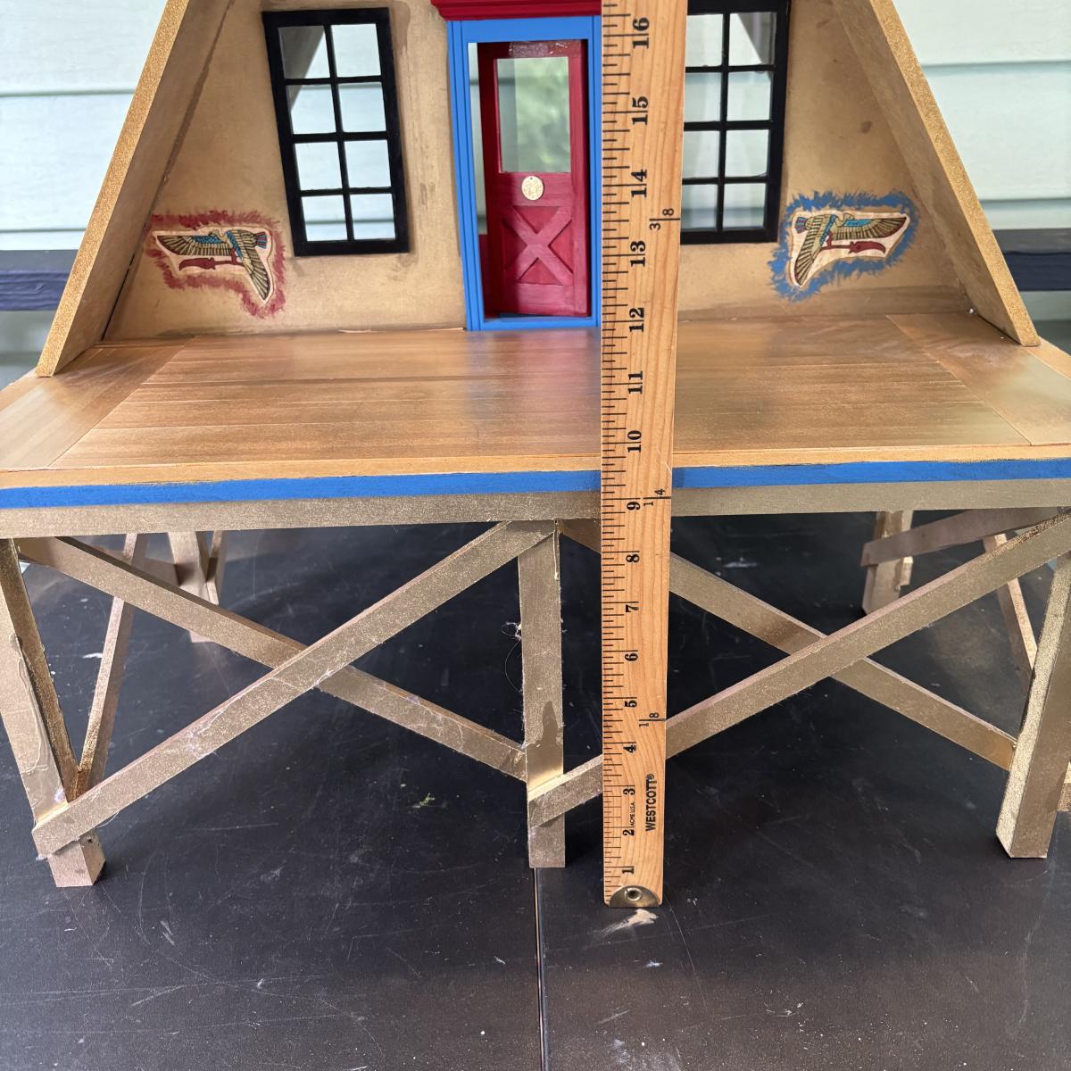 LOT 287: Handcrafted Egyptian A-Frame Style Doll House and Books