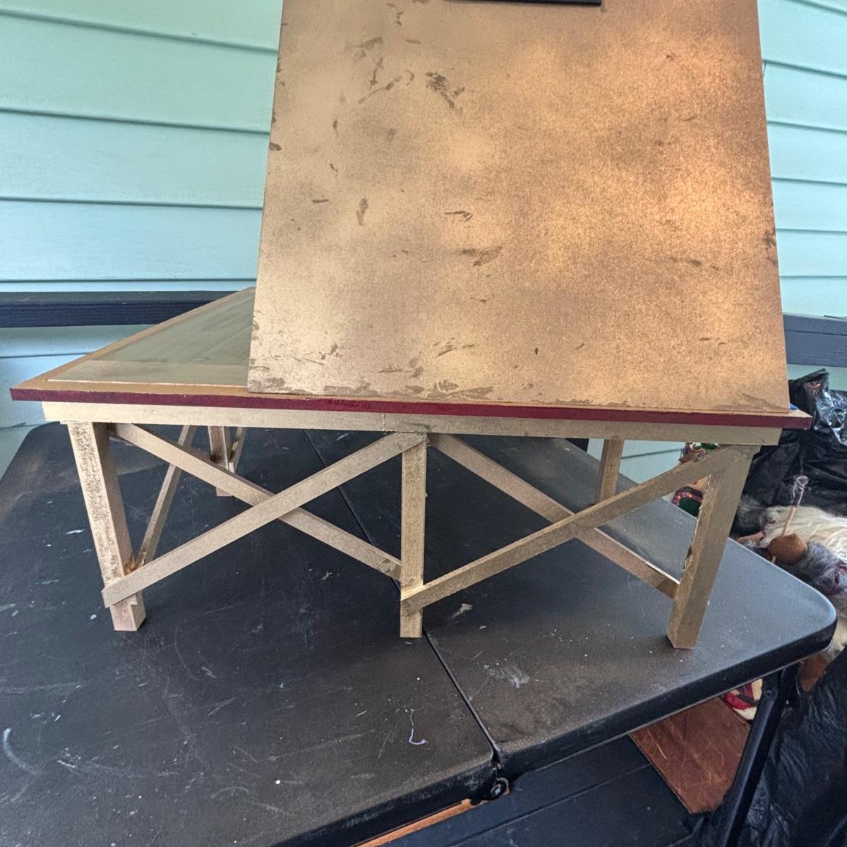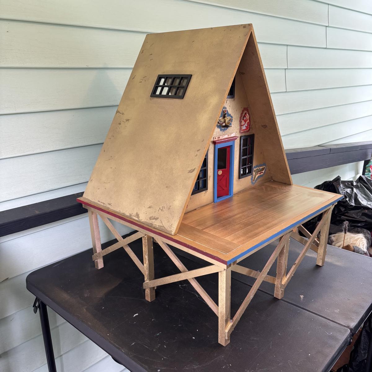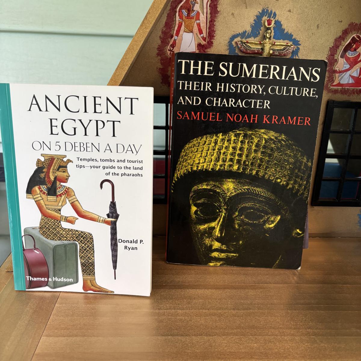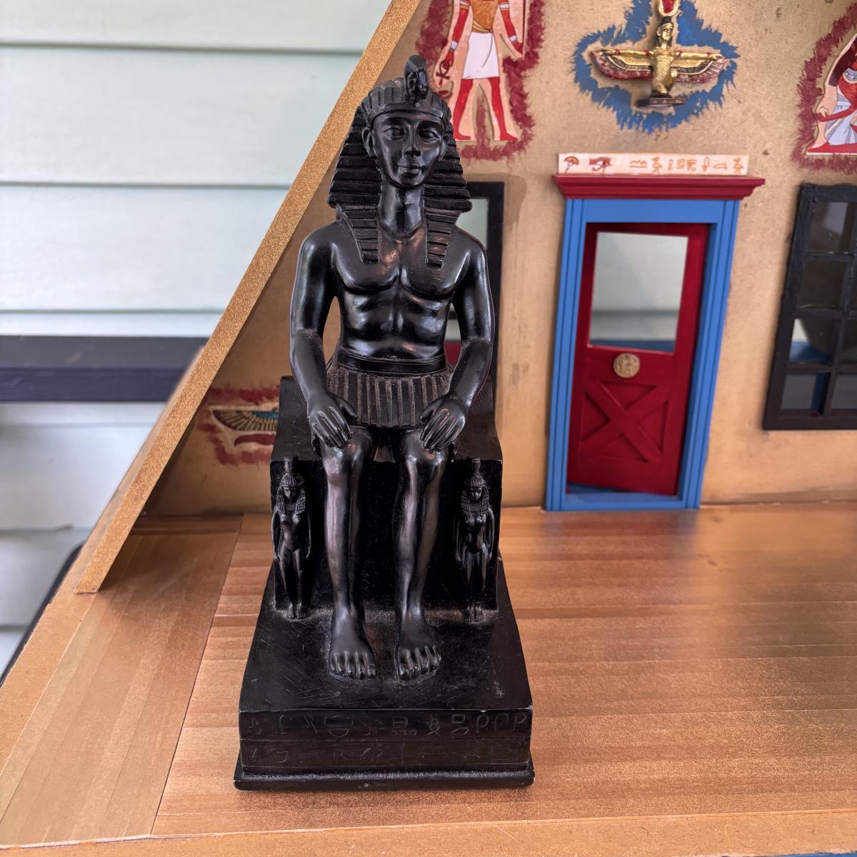 LOT 287: Handcrafted Egyptian A-Frame Style Doll House and Books