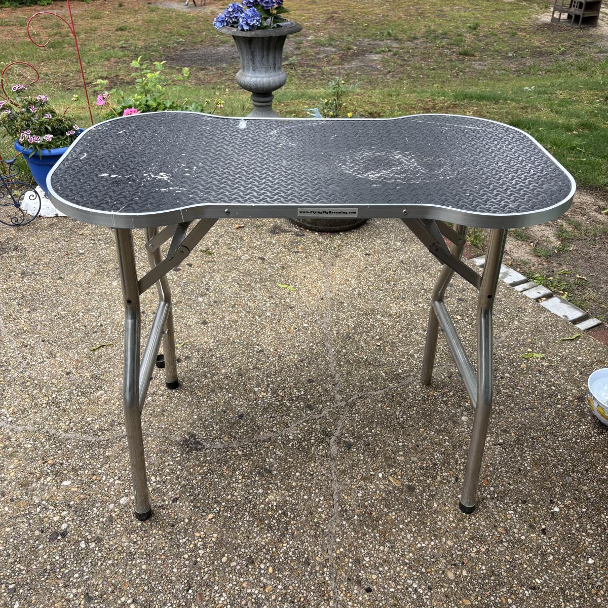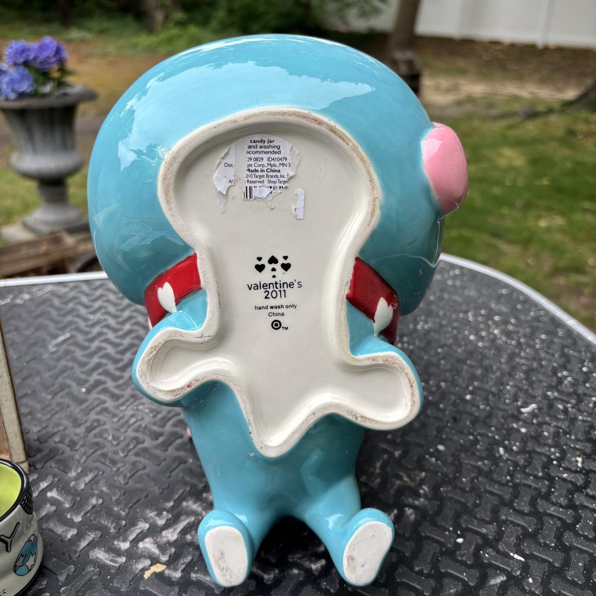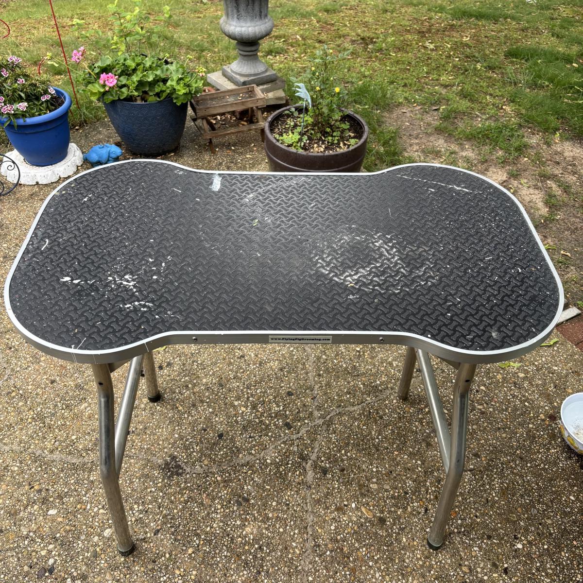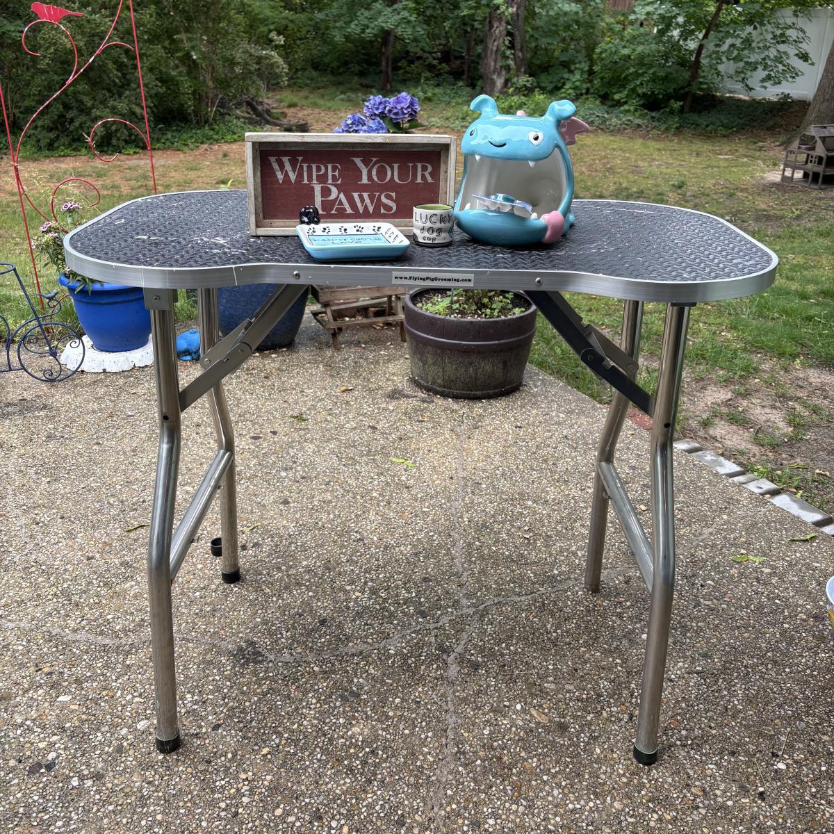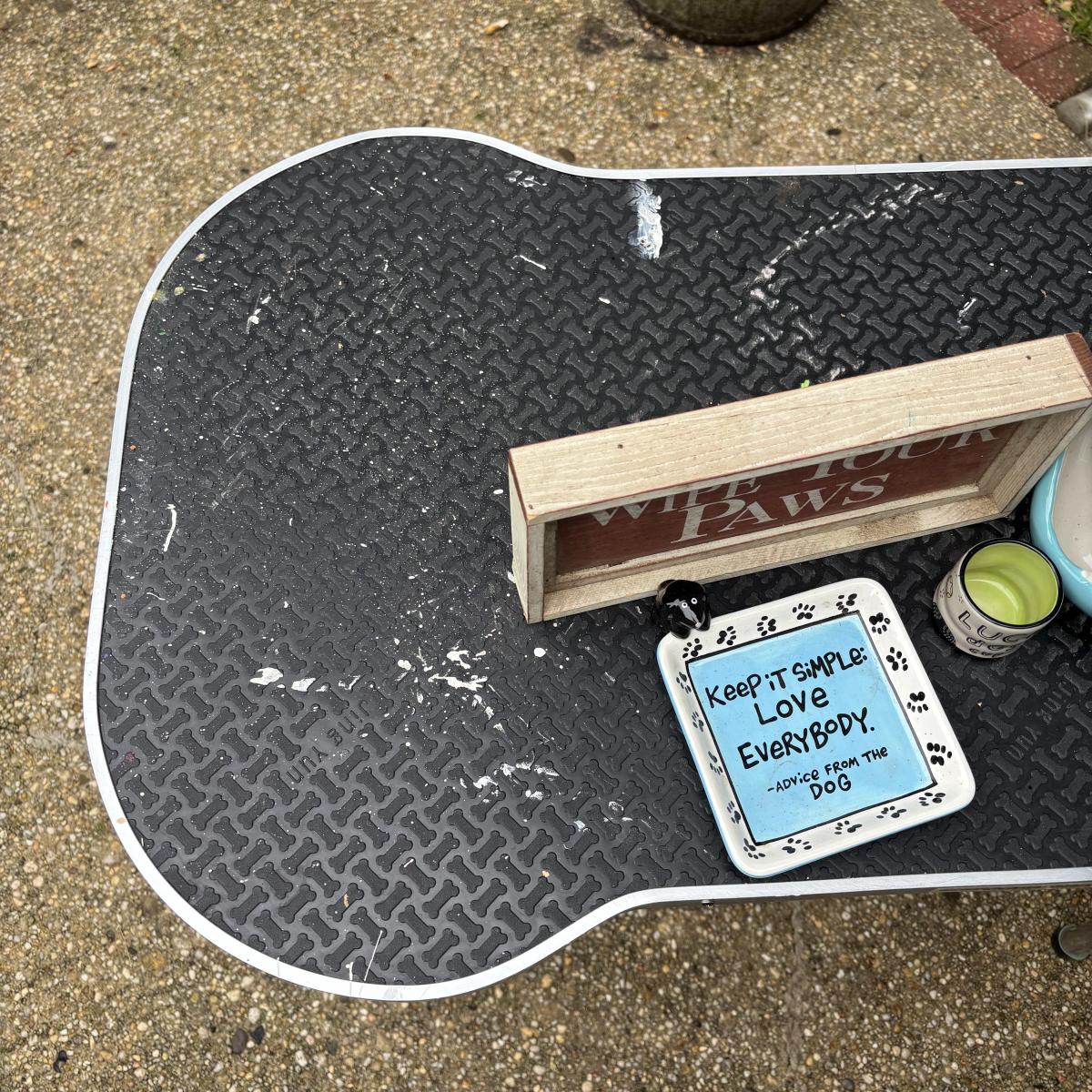 LOT 289: Flying Pig Pet Grooming Table: Valentines Bulldog Candy Dish: Hand Painted Louie Veasey Dish & Lucky Dog Cup by The Bowl Maker