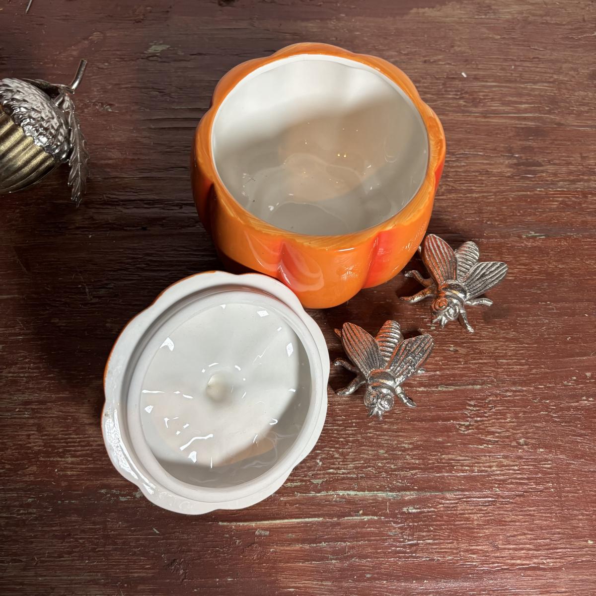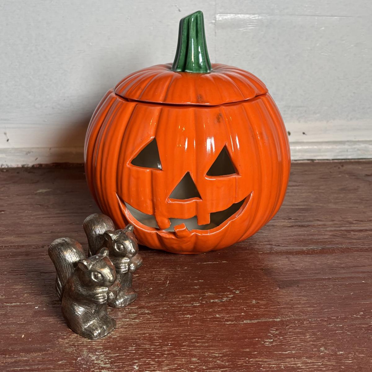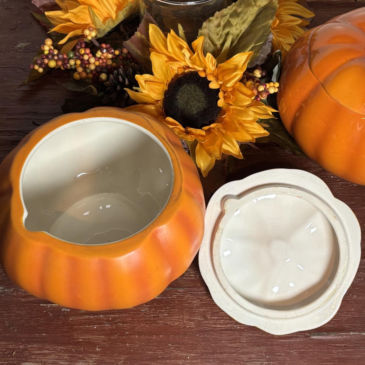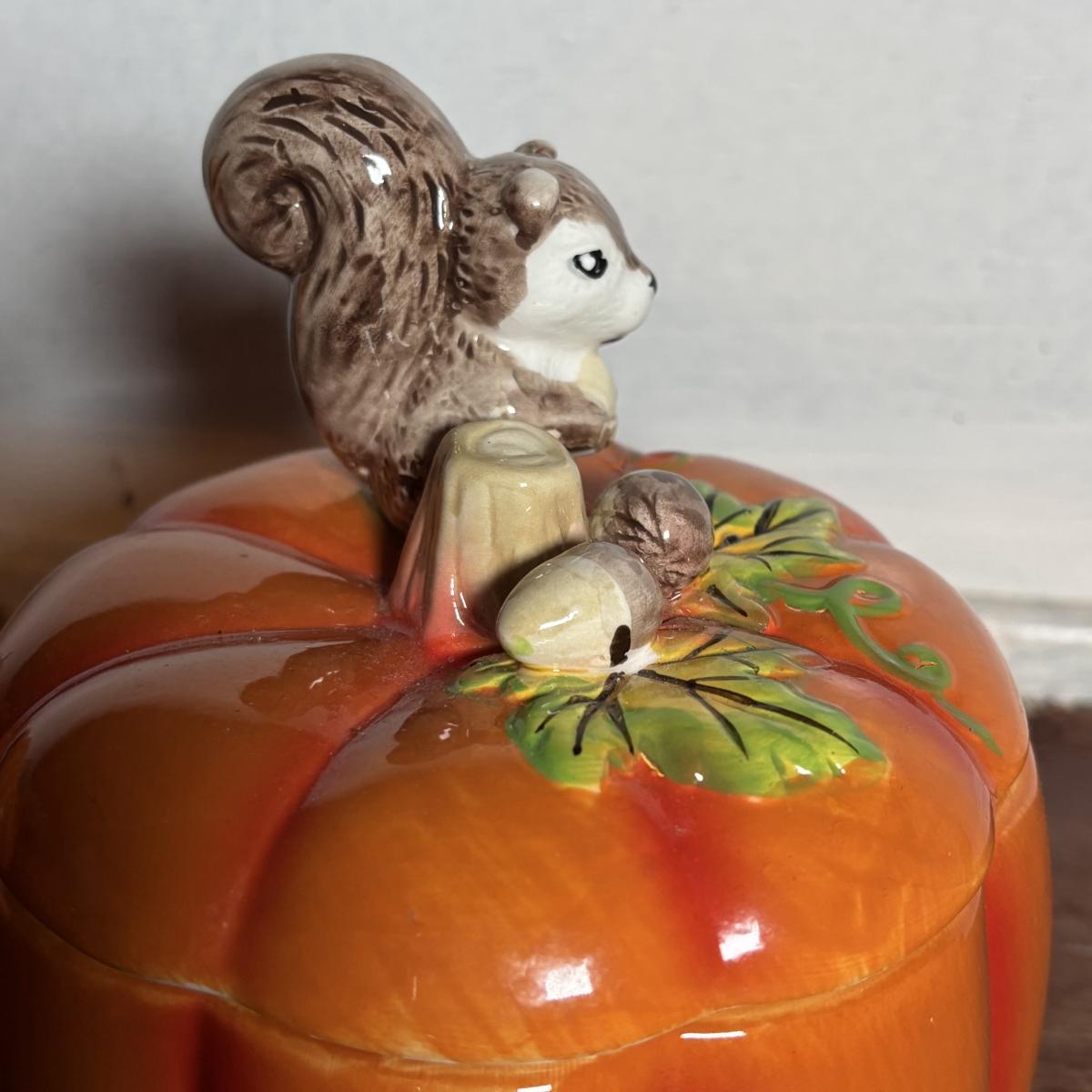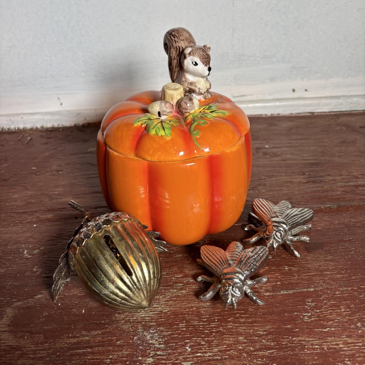 LOT 291: Fall Decor: Ceramic Pumpkins, Squirrel Salt/Pepper Shakers, Floral Center Piece and More