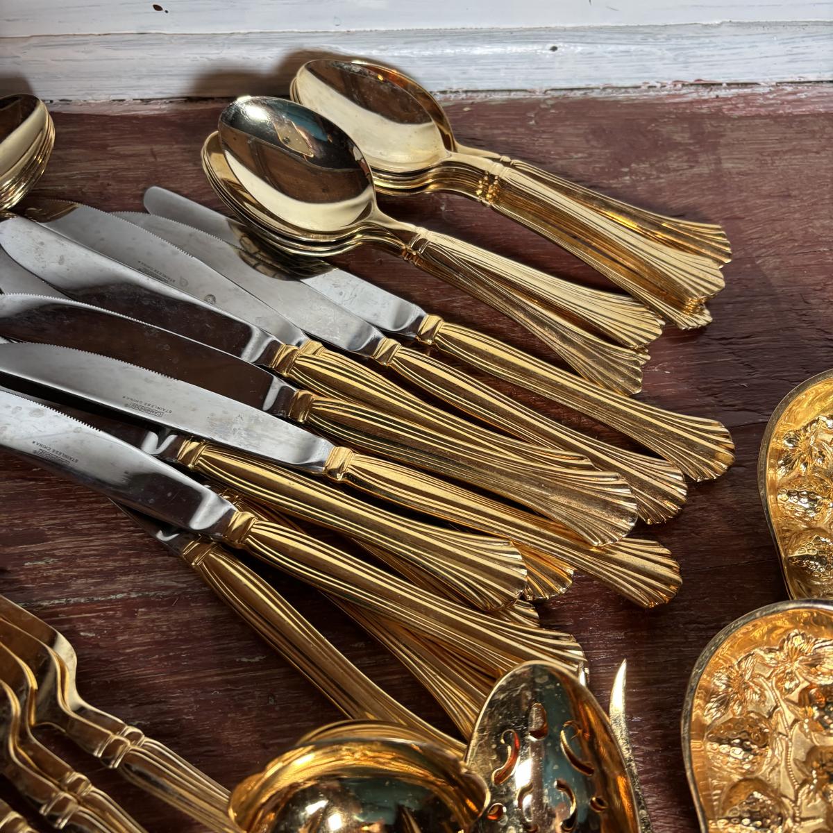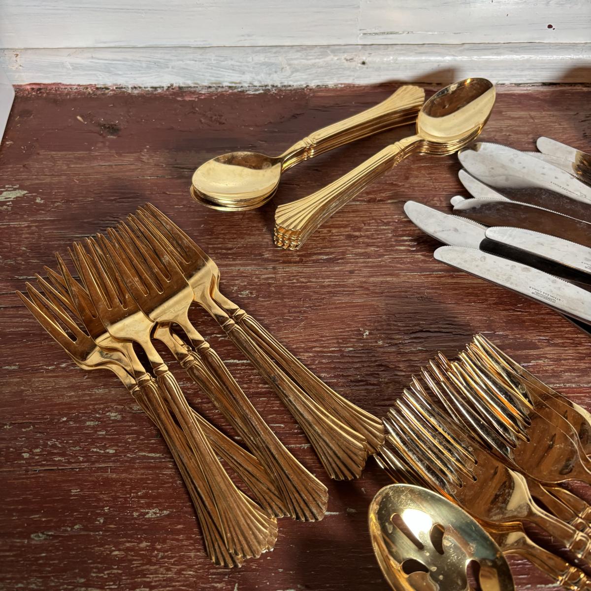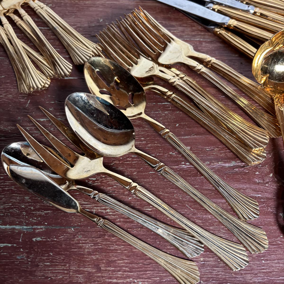 LOT 295: Godinger, Imperial 24k Gold Electro Plate and Cambridge Tracy Stainless Gold-Plated Flatware