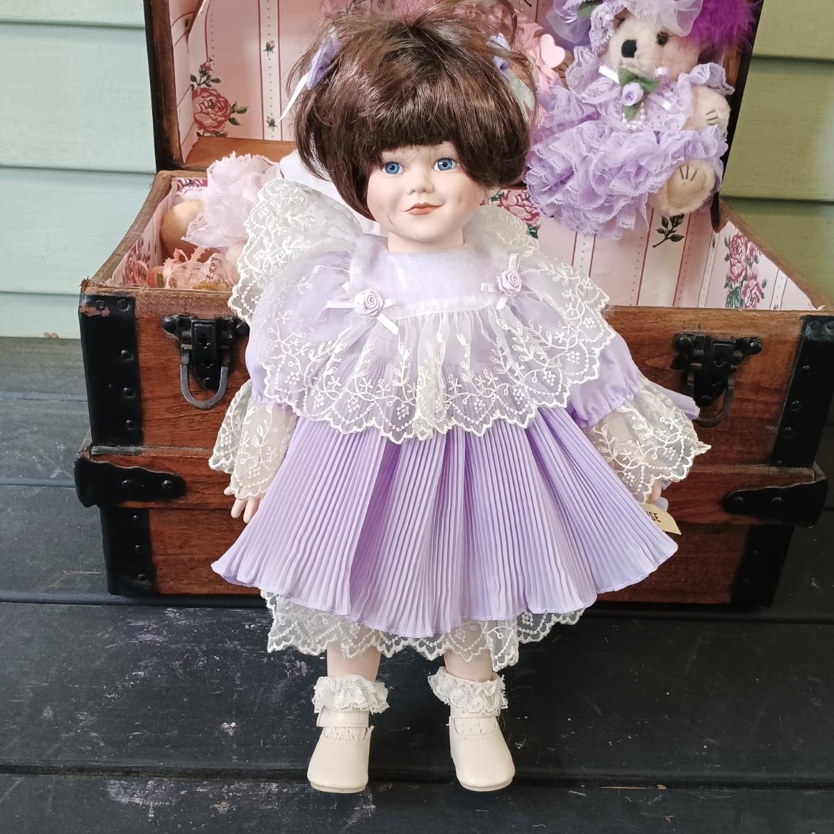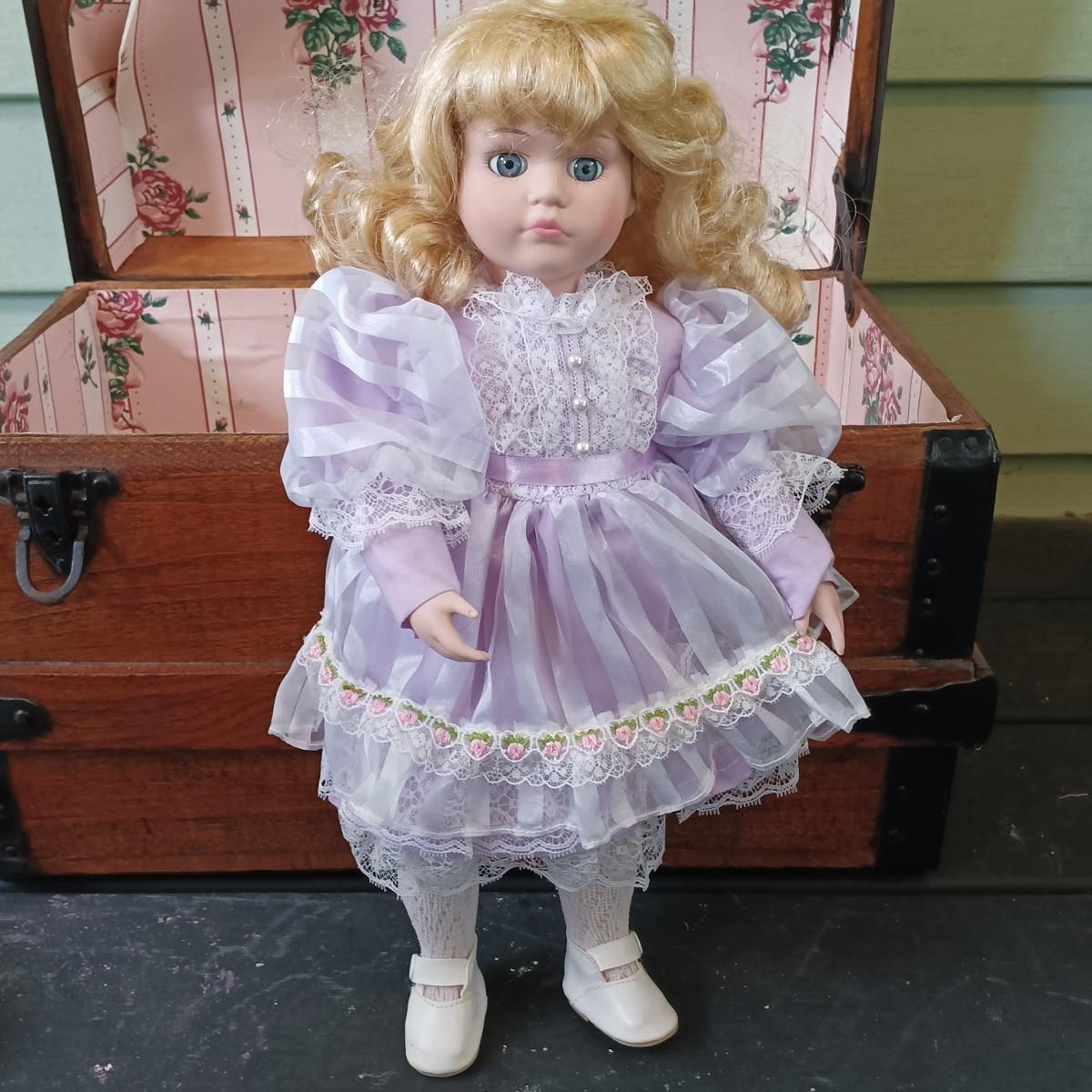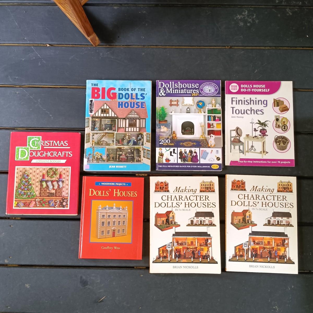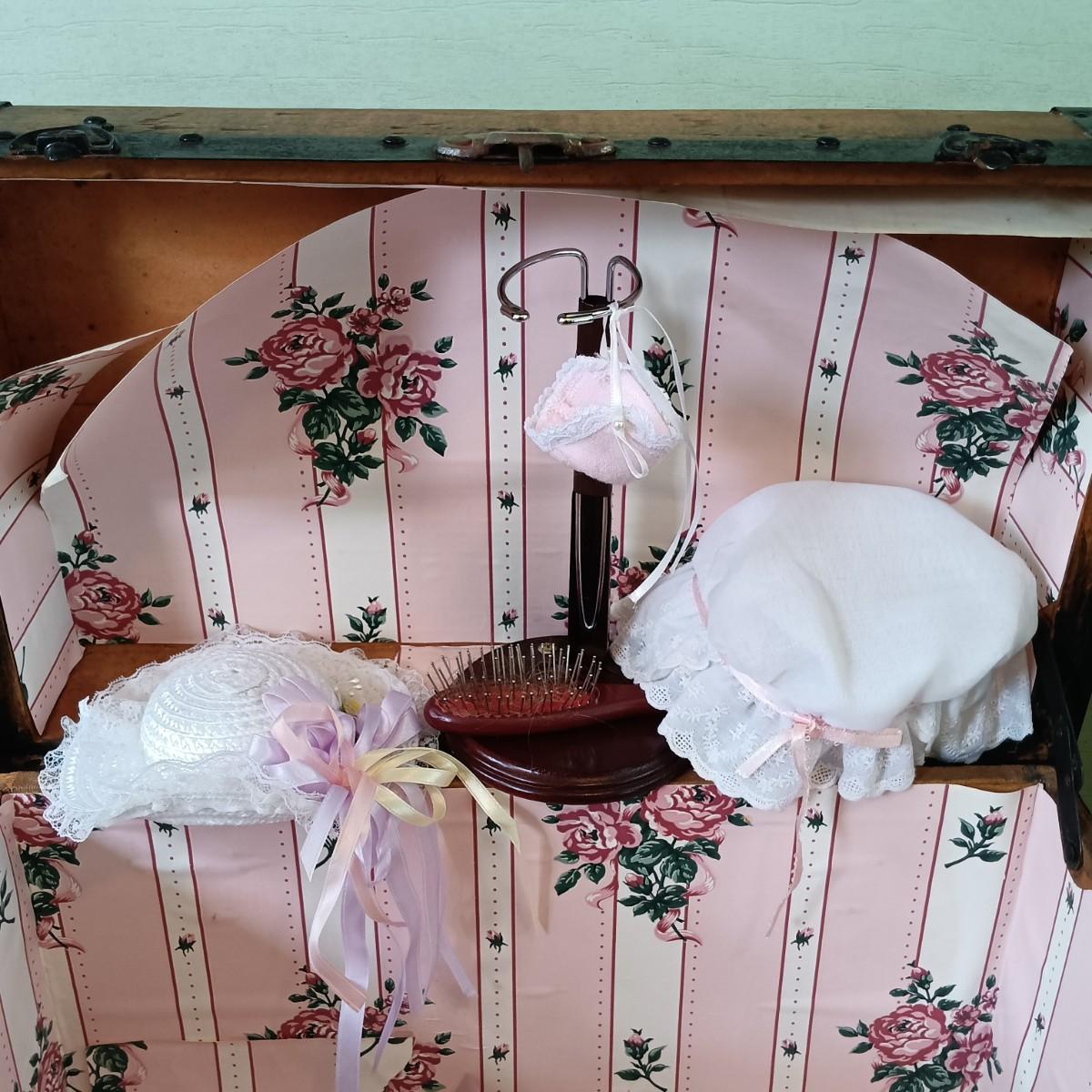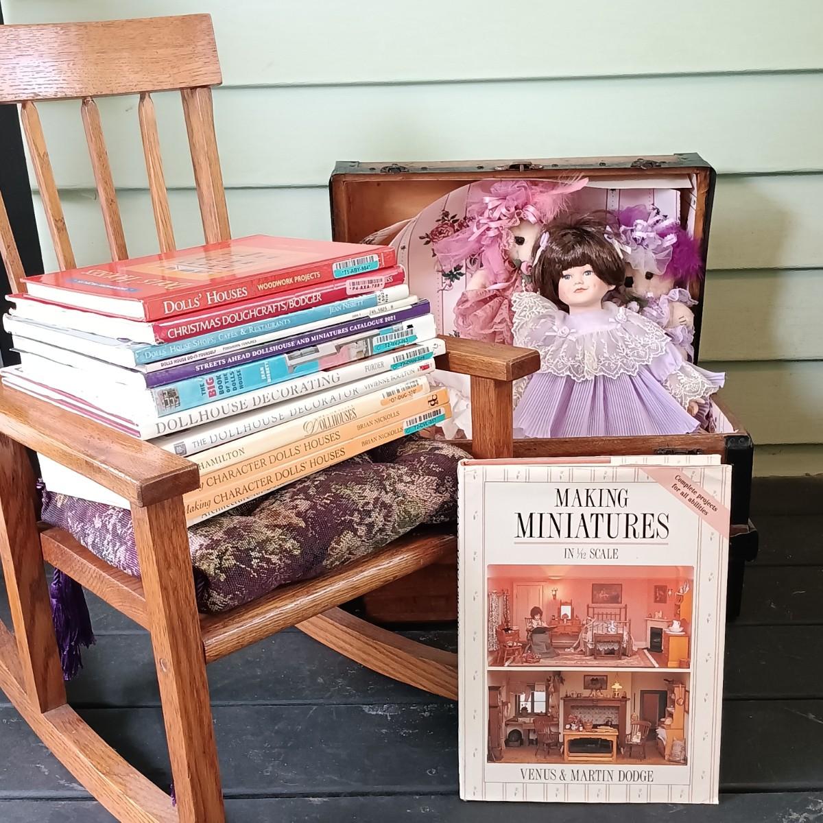 LOT 314: Antique Wooden Chest with Dolls, Child's Rocking Chair & Books on Doll House Miniatures