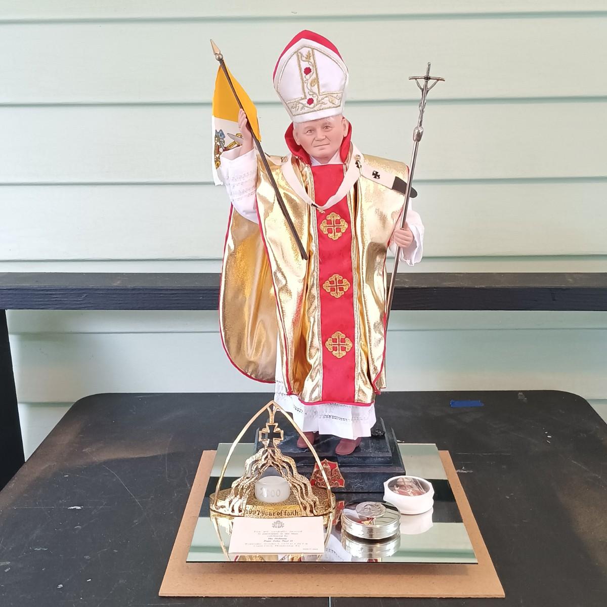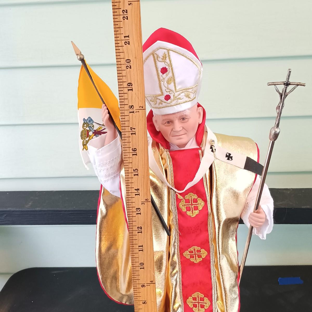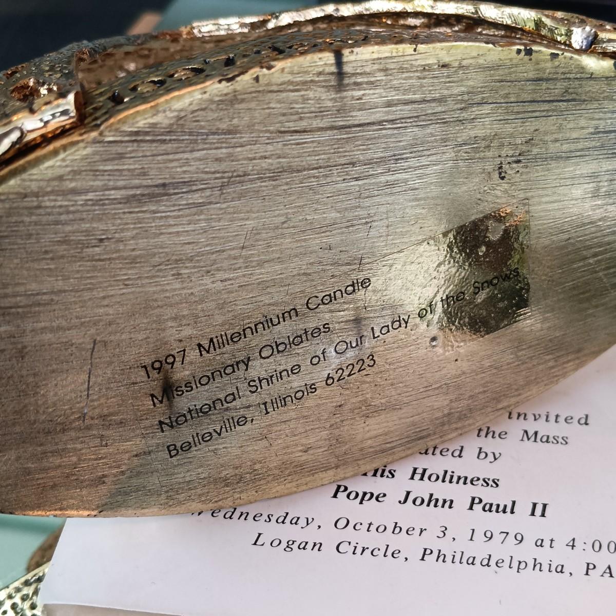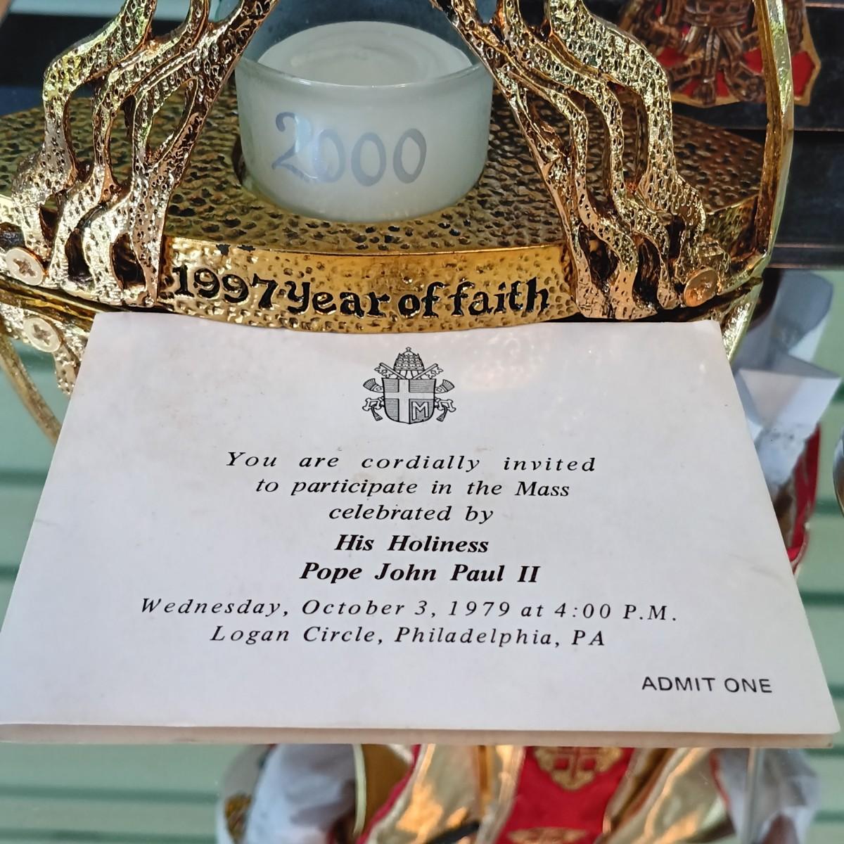 LOT 316: Pope John Paul II Collectible Figurine w/ Rosaries, Candle Holder and 1979 Mass Invitation
