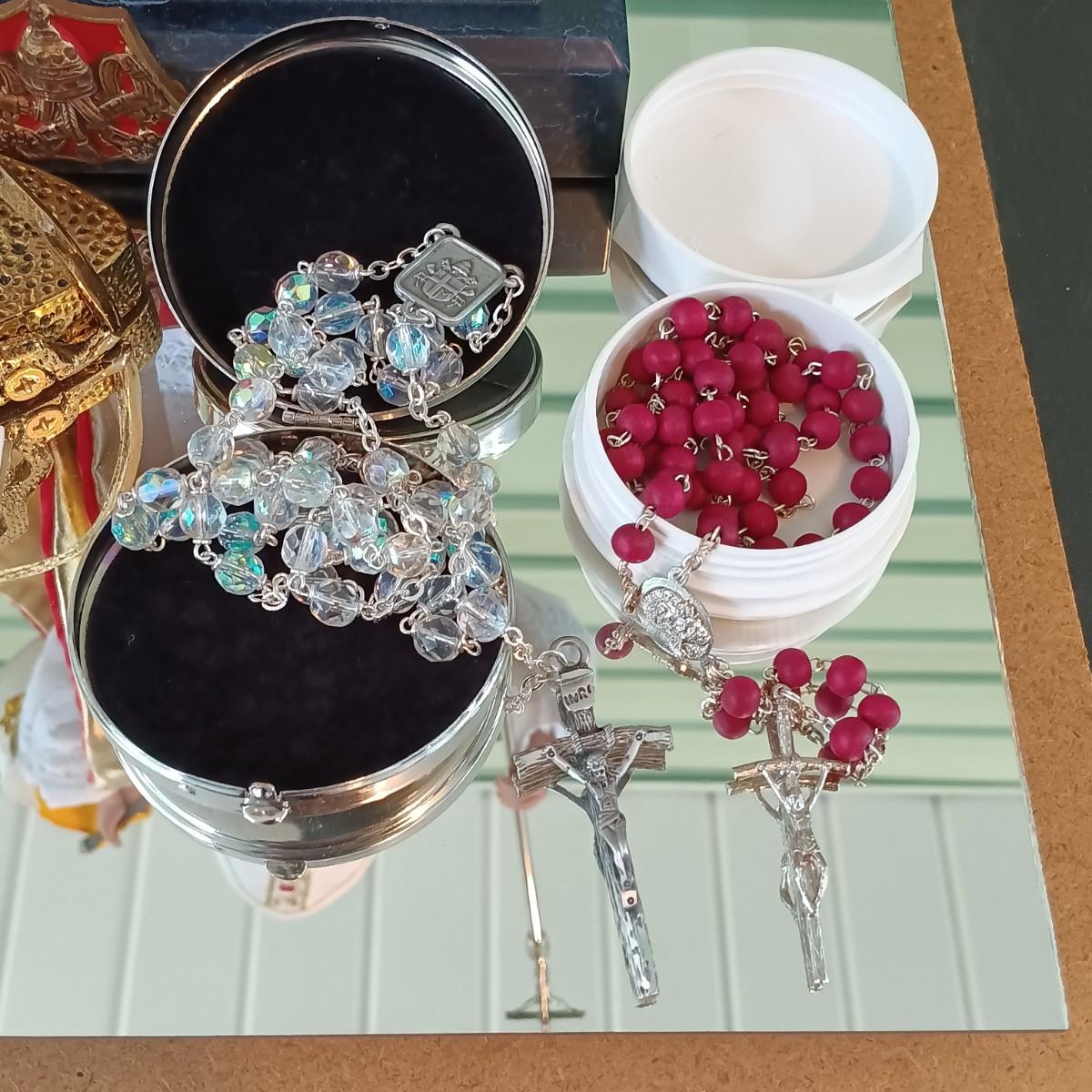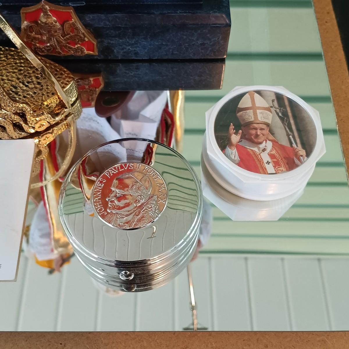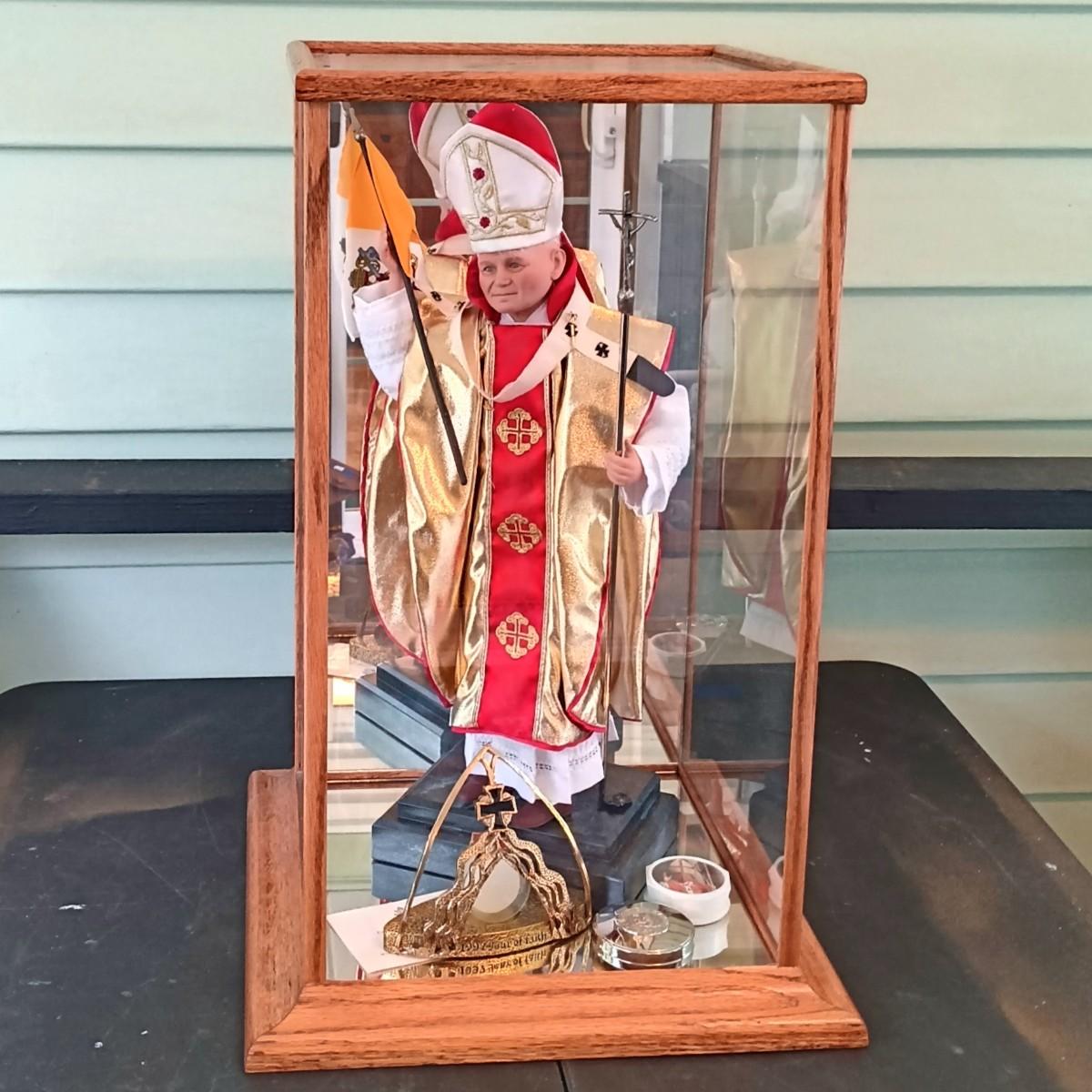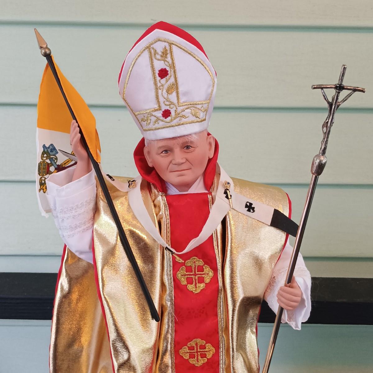 LOT 316: Pope John Paul II Collectible Figurine w/ Rosaries, Candle Holder and 1979 Mass Invitation