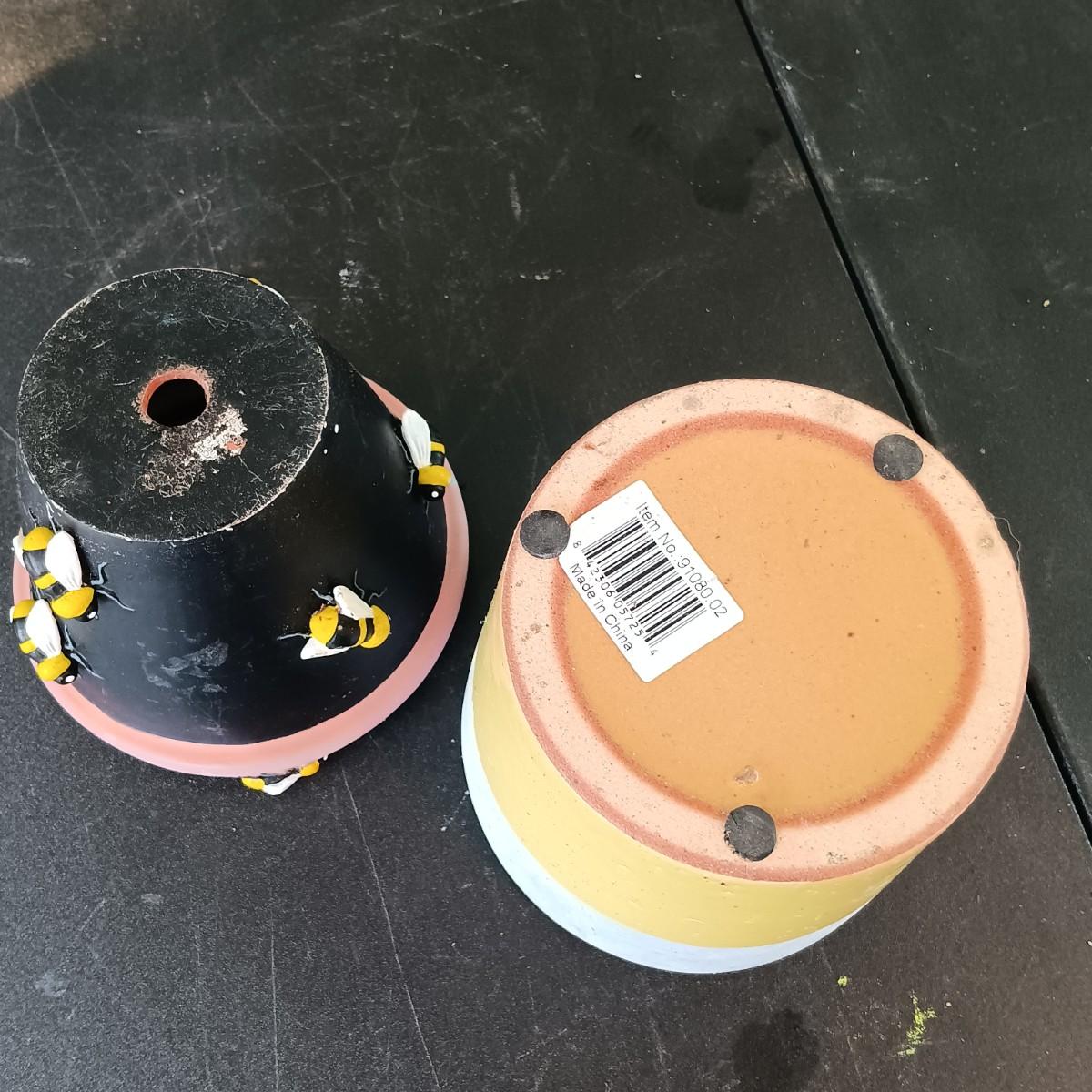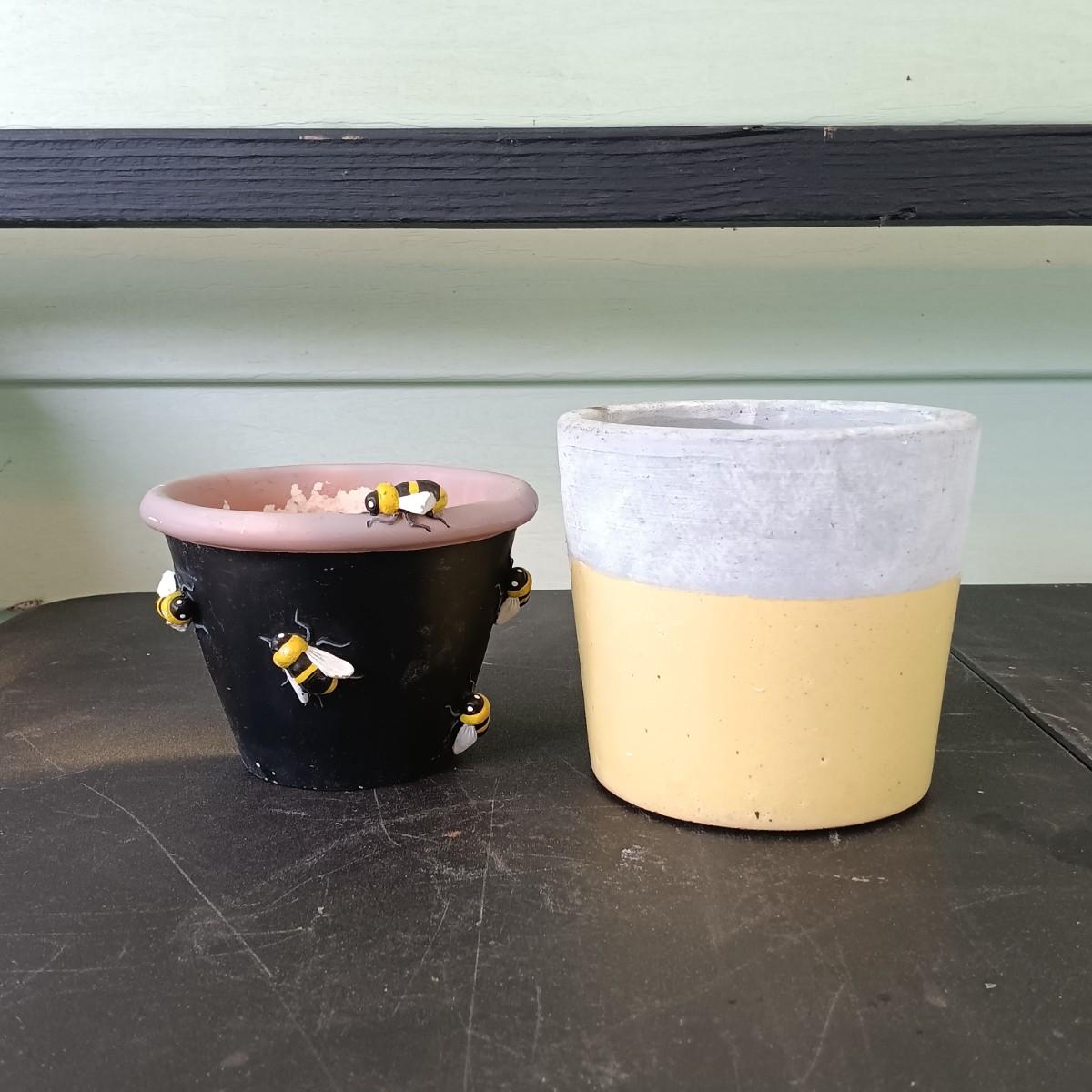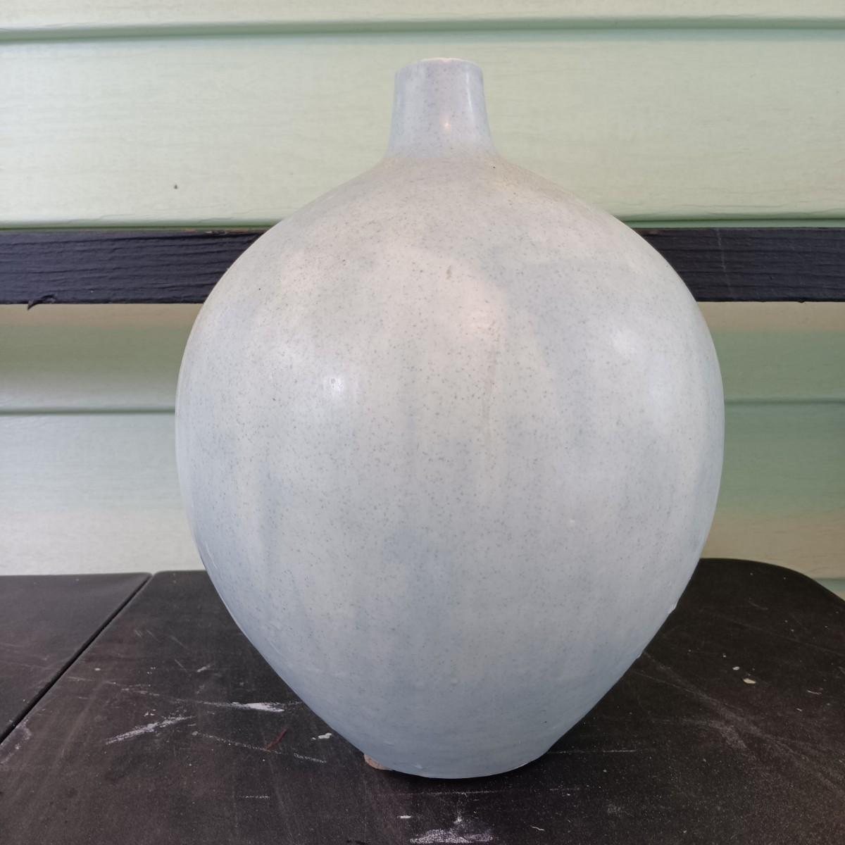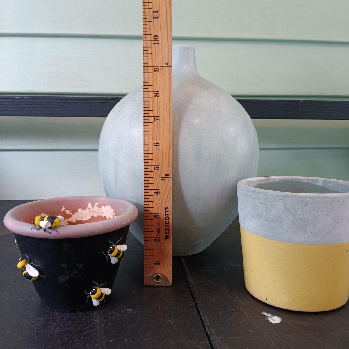 LOT 324: Smith Brothers Farms Metal Dairy Porch Box with Blue Glaze Vase & Garden Pottery