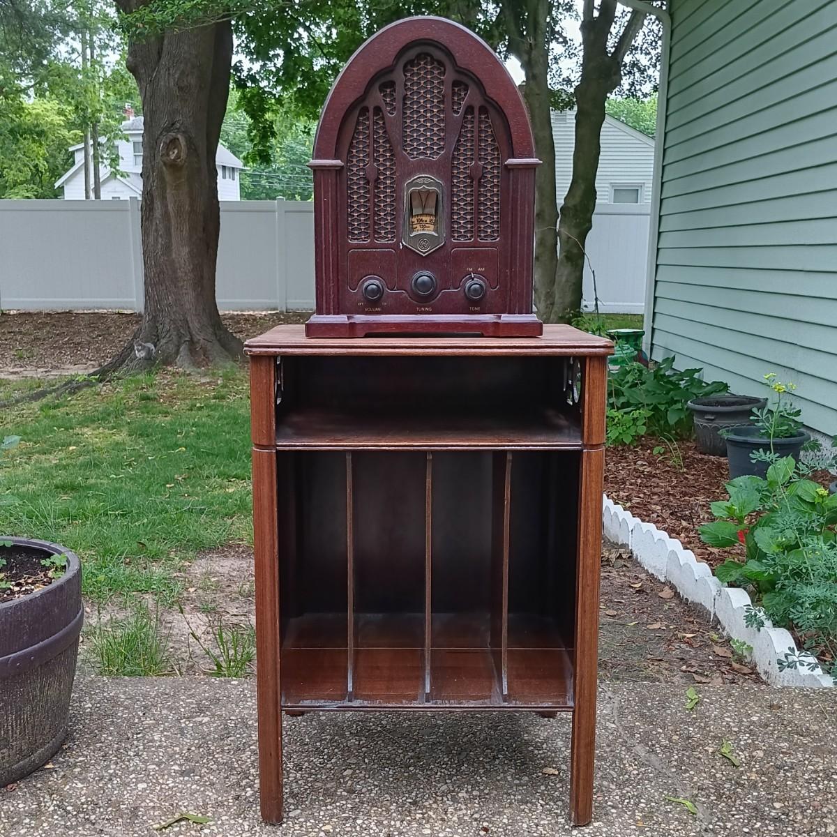 LOT 348: GE Cathedral Radio Model 7-4100JA with Record Stand