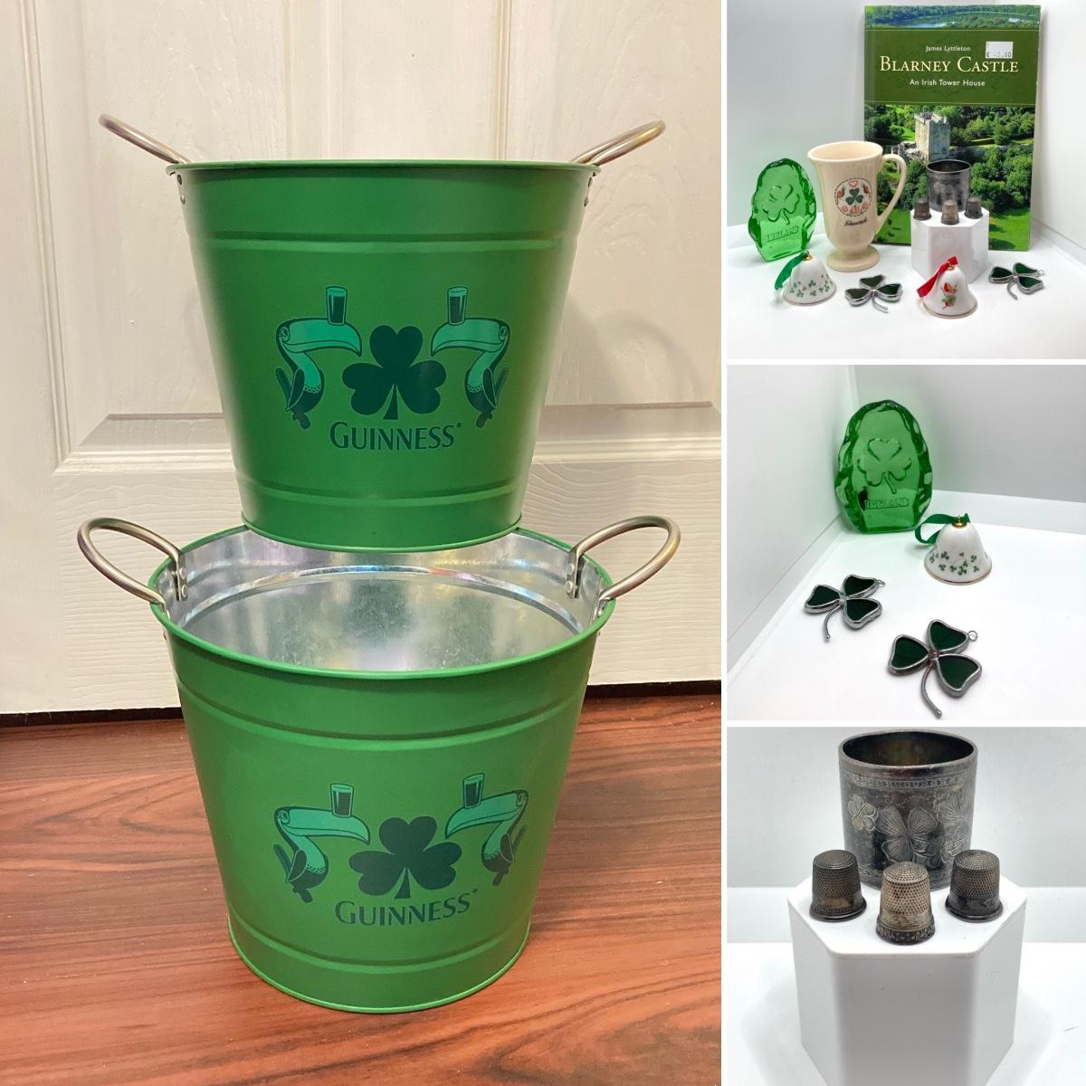LOT 356: Ireland Themed Collection - Guinness Ice Buckets, Book, Miniature Bells, Thimbles (Sterling Included) and More