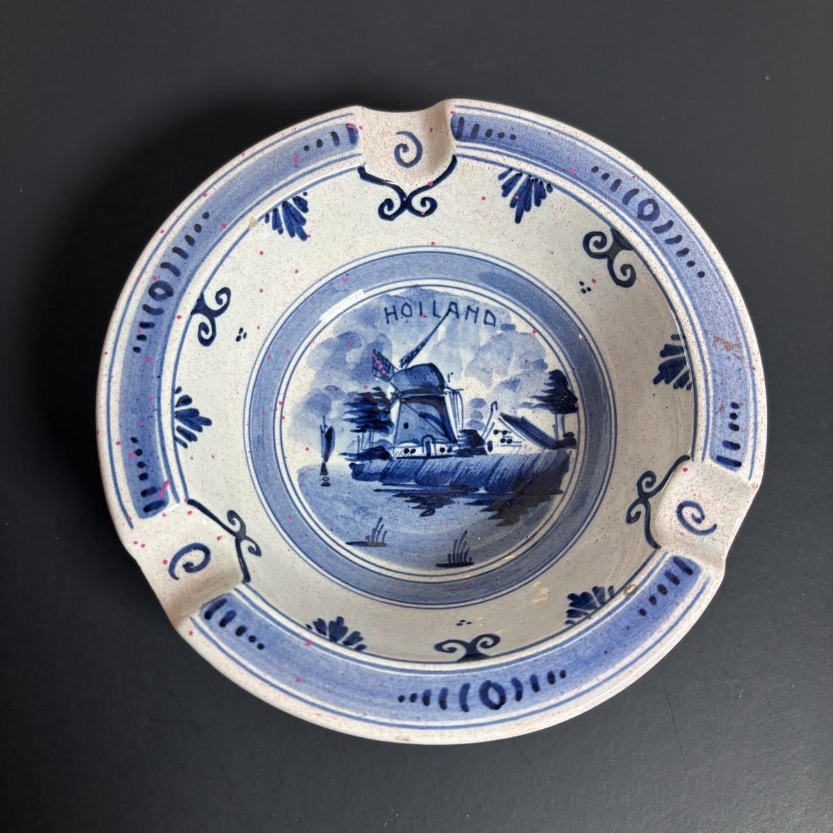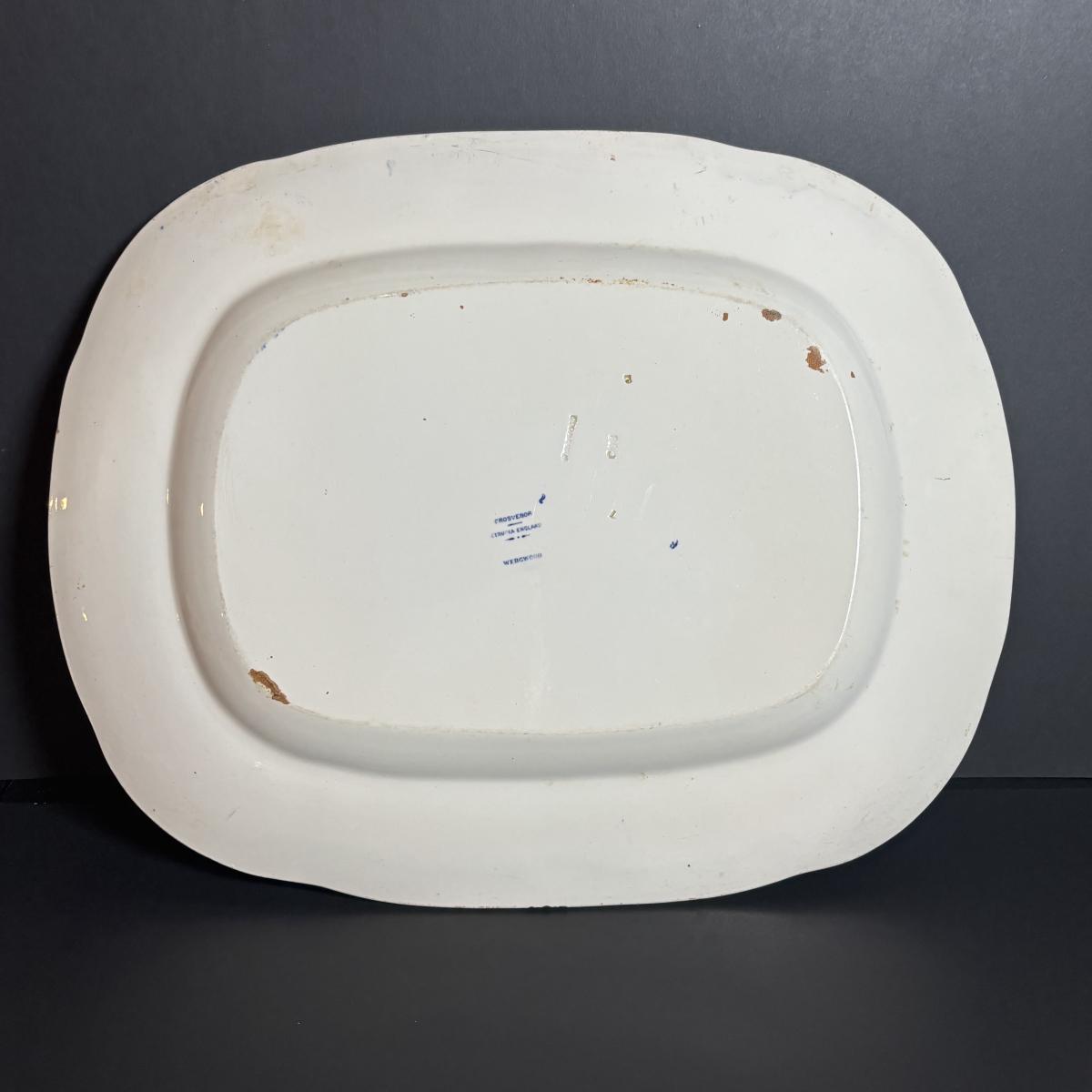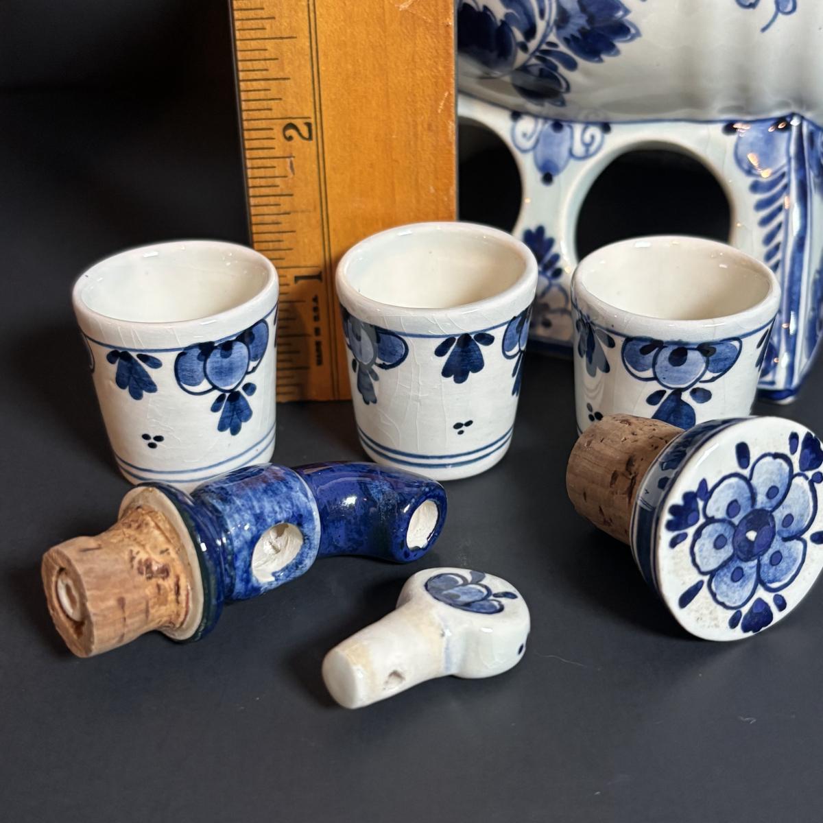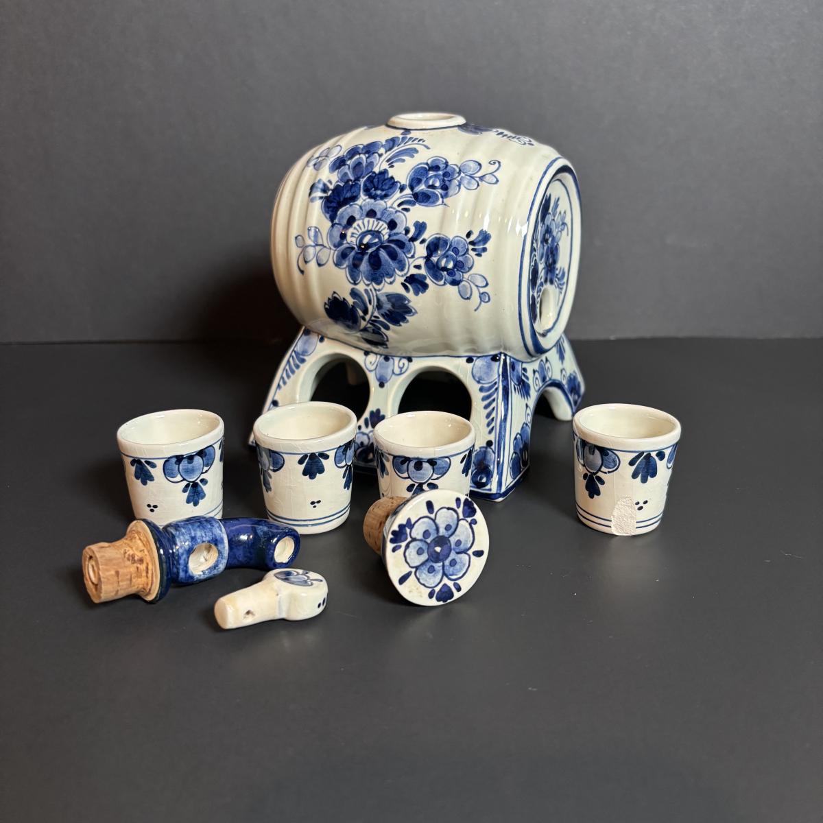 LOT 363: Wedgewood Grosvenor Blue Swag Pattern Platter and Delft Blue Decanter/Jug Set, Tea Caddy & Ashtray