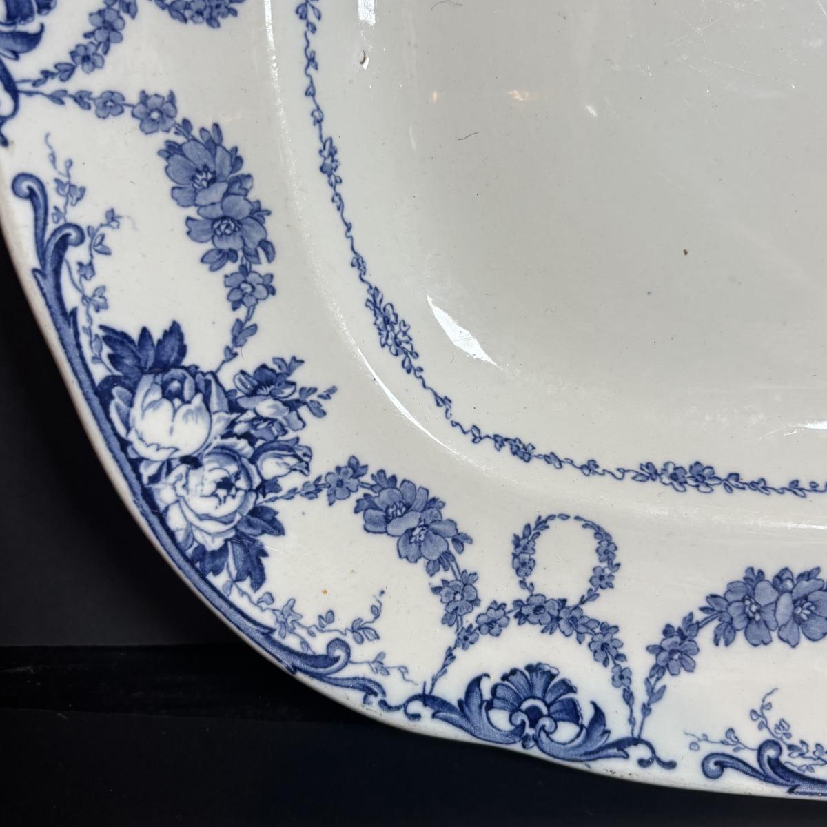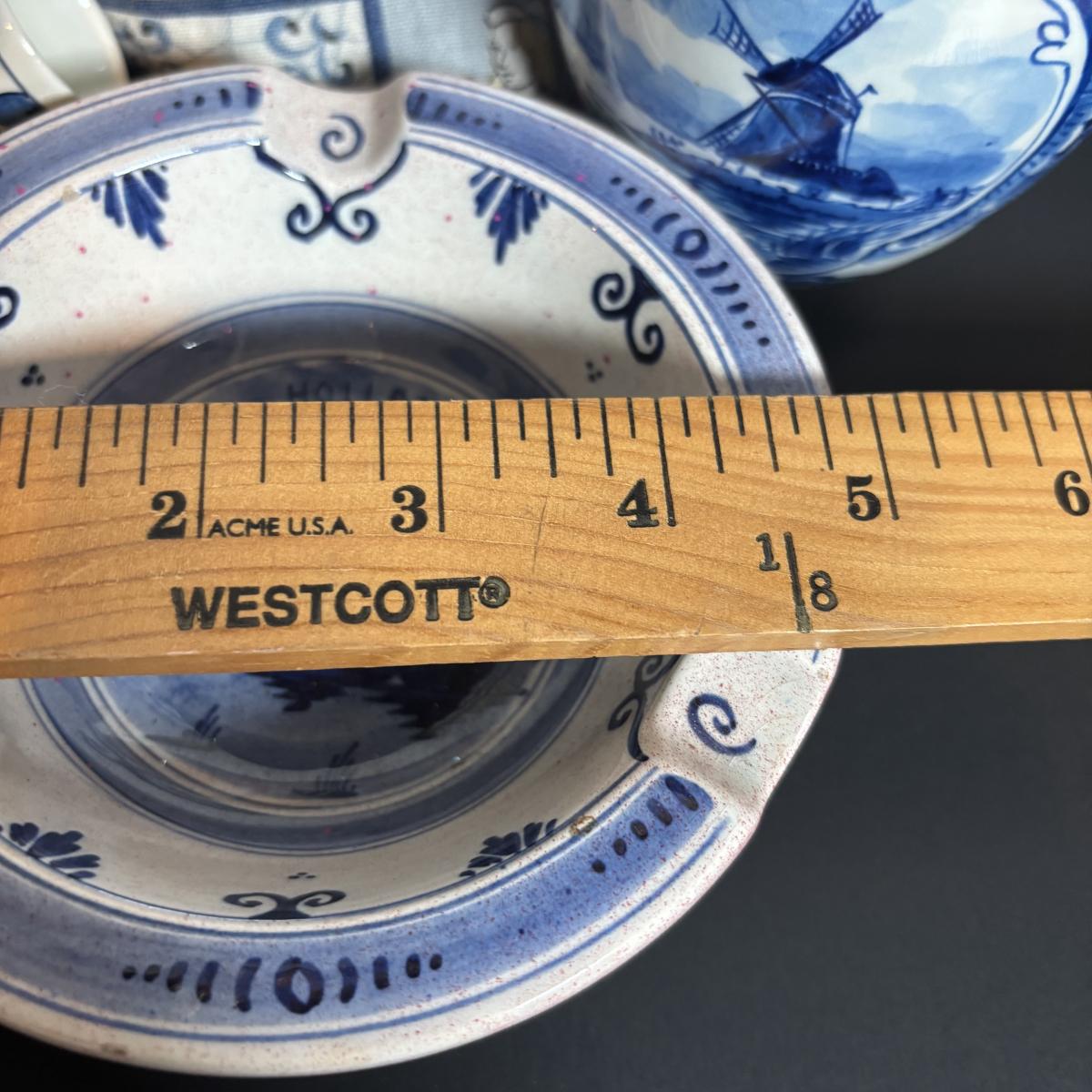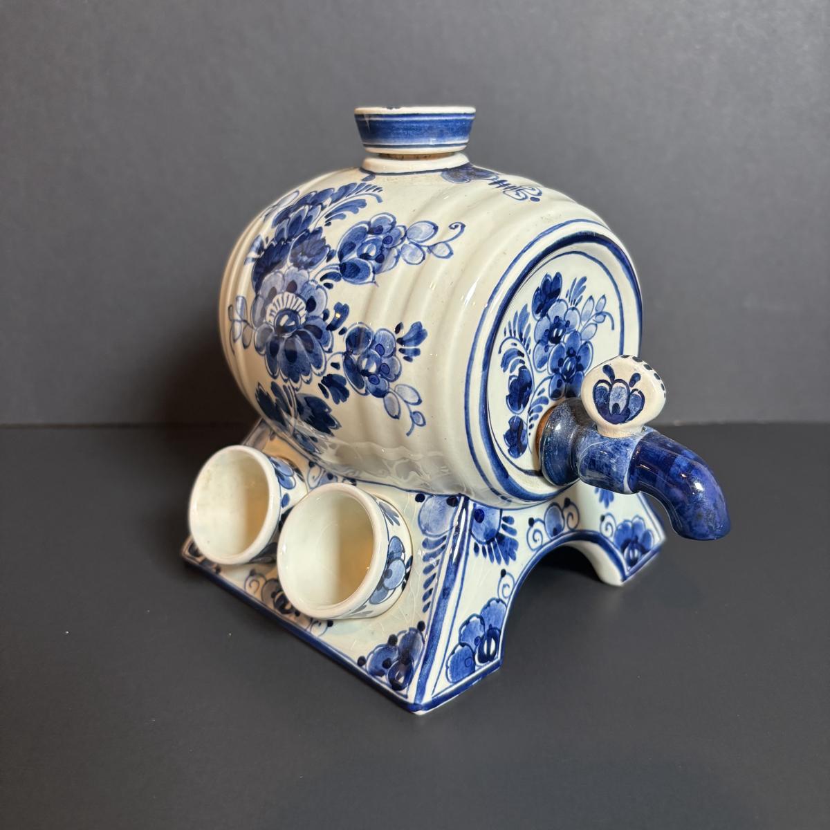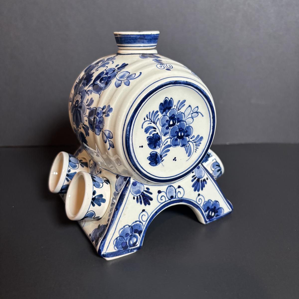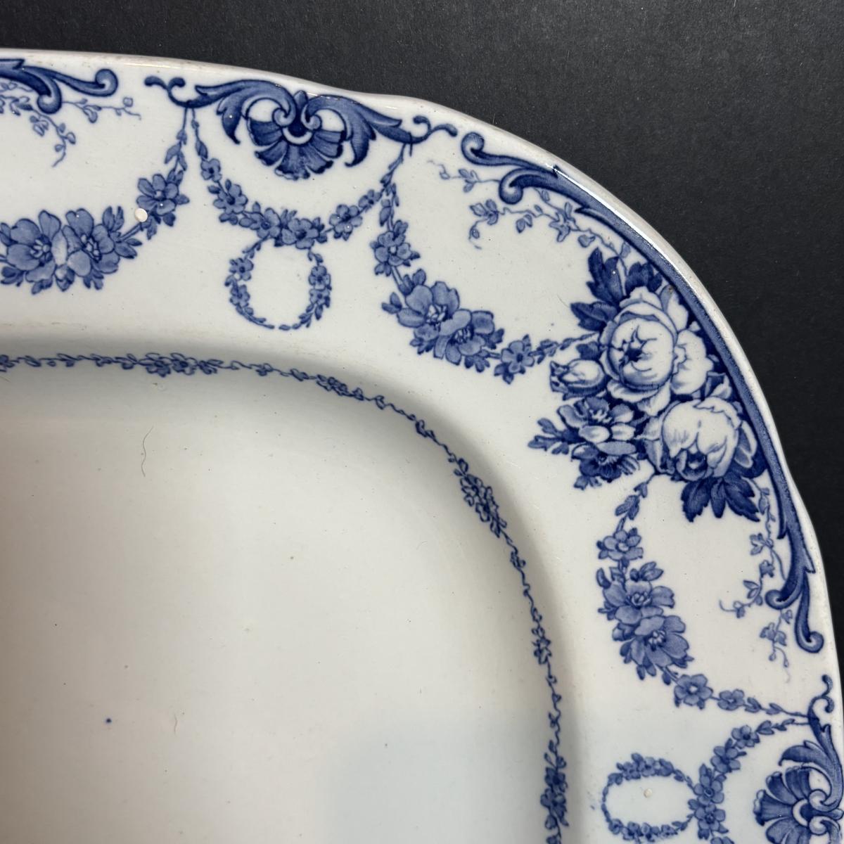 LOT 363: Wedgewood Grosvenor Blue Swag Pattern Platter and Delft Blue Decanter/Jug Set, Tea Caddy & Ashtray