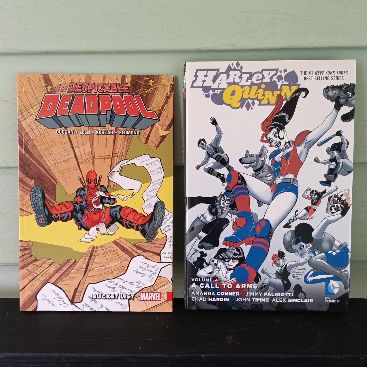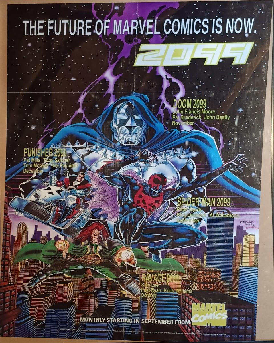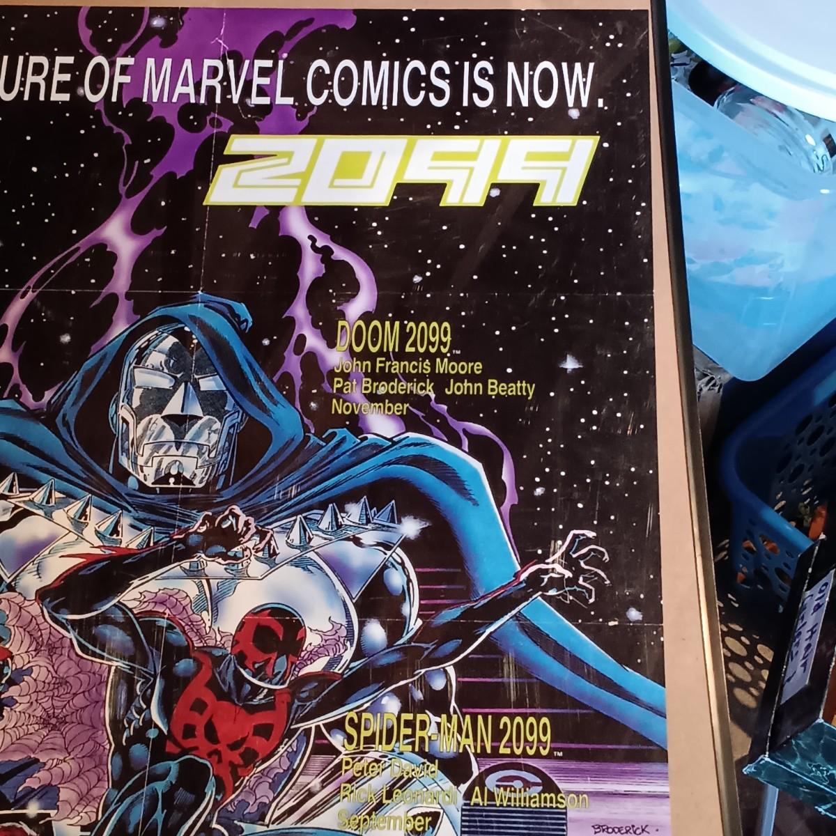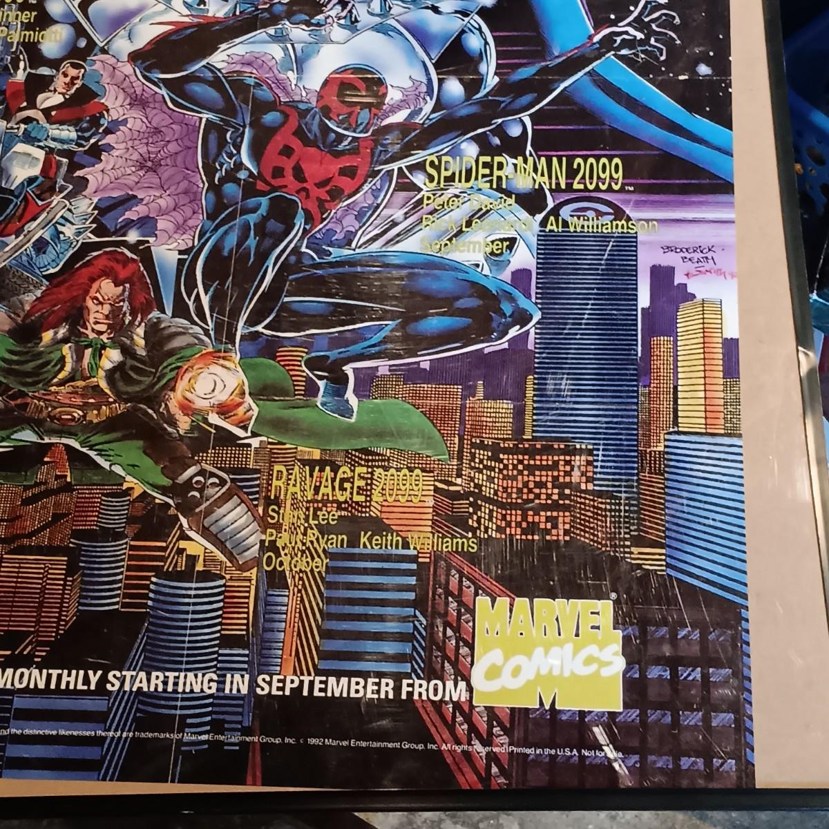 LOT 365: Signed Joe Jusko Marvel Collector Cards Promotional Poster, Marvel Comics 2099 Promotional Poster, Deadpool and Harley Quinn Comics & Atari TV Gam