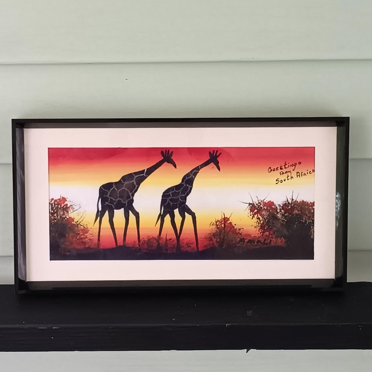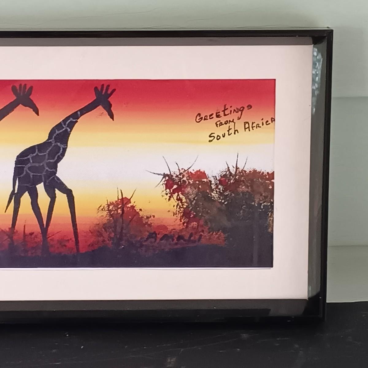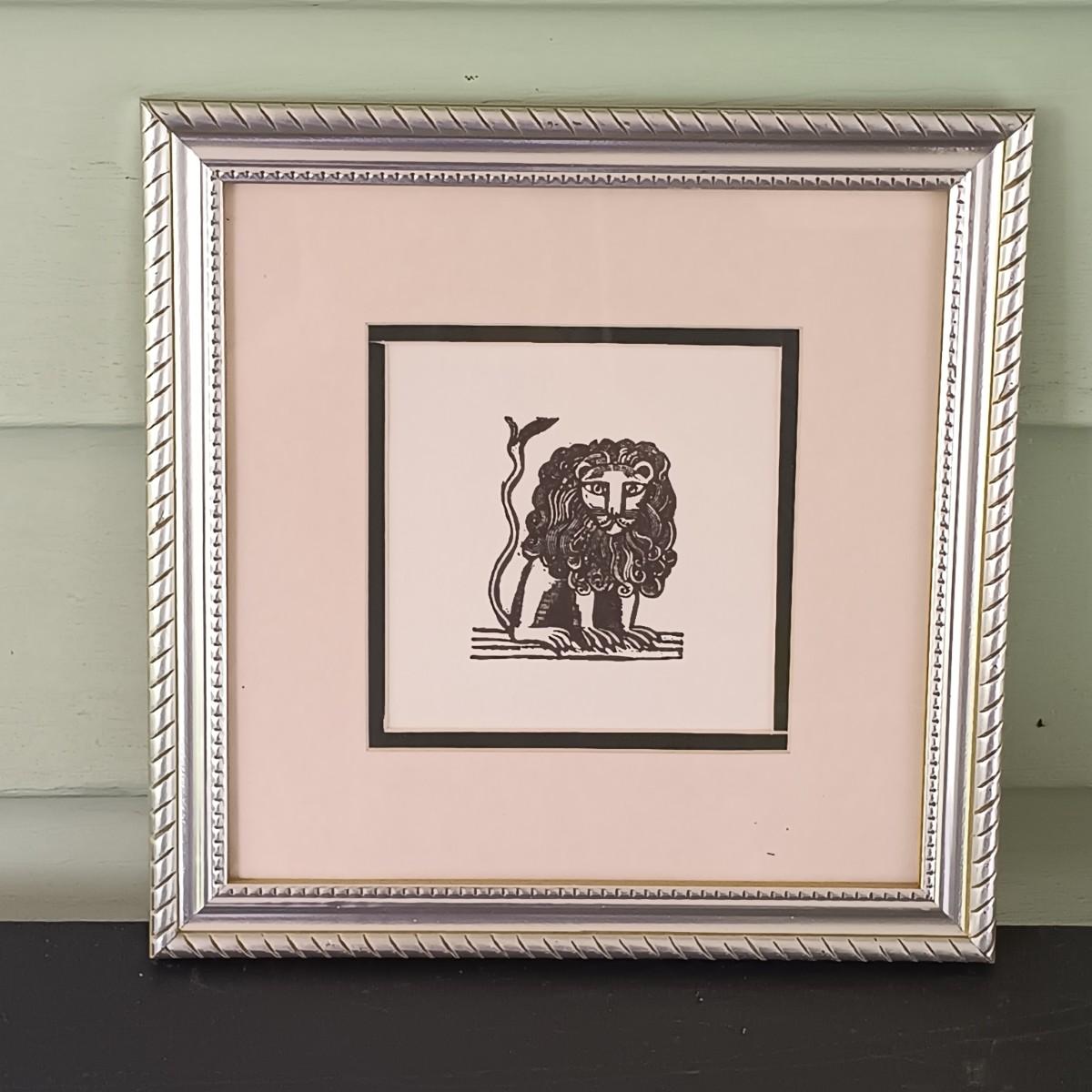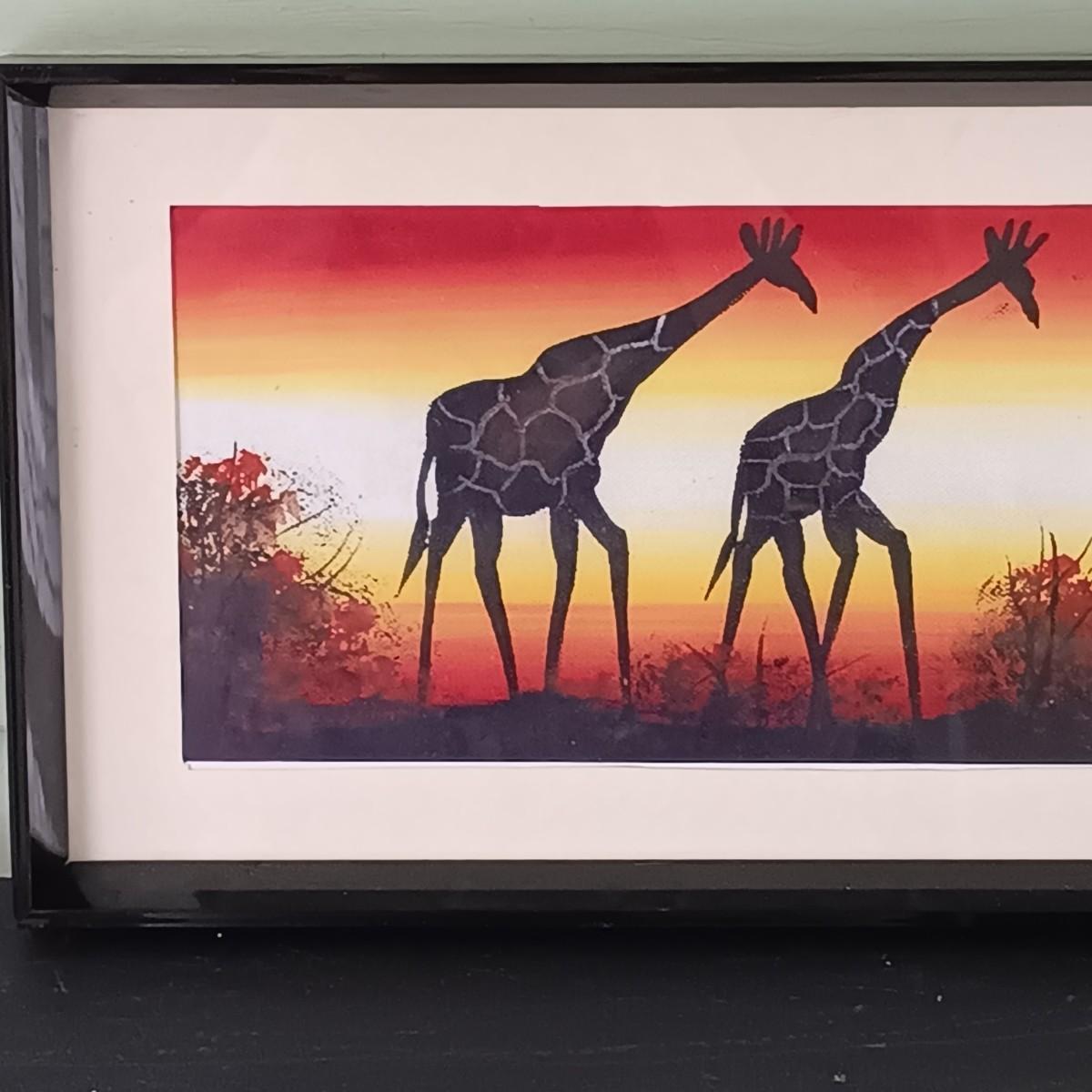 LOT 369: Philip Higgins Signed Art, Lion Block Print & Giraffe Silhouette Art by A'Mali