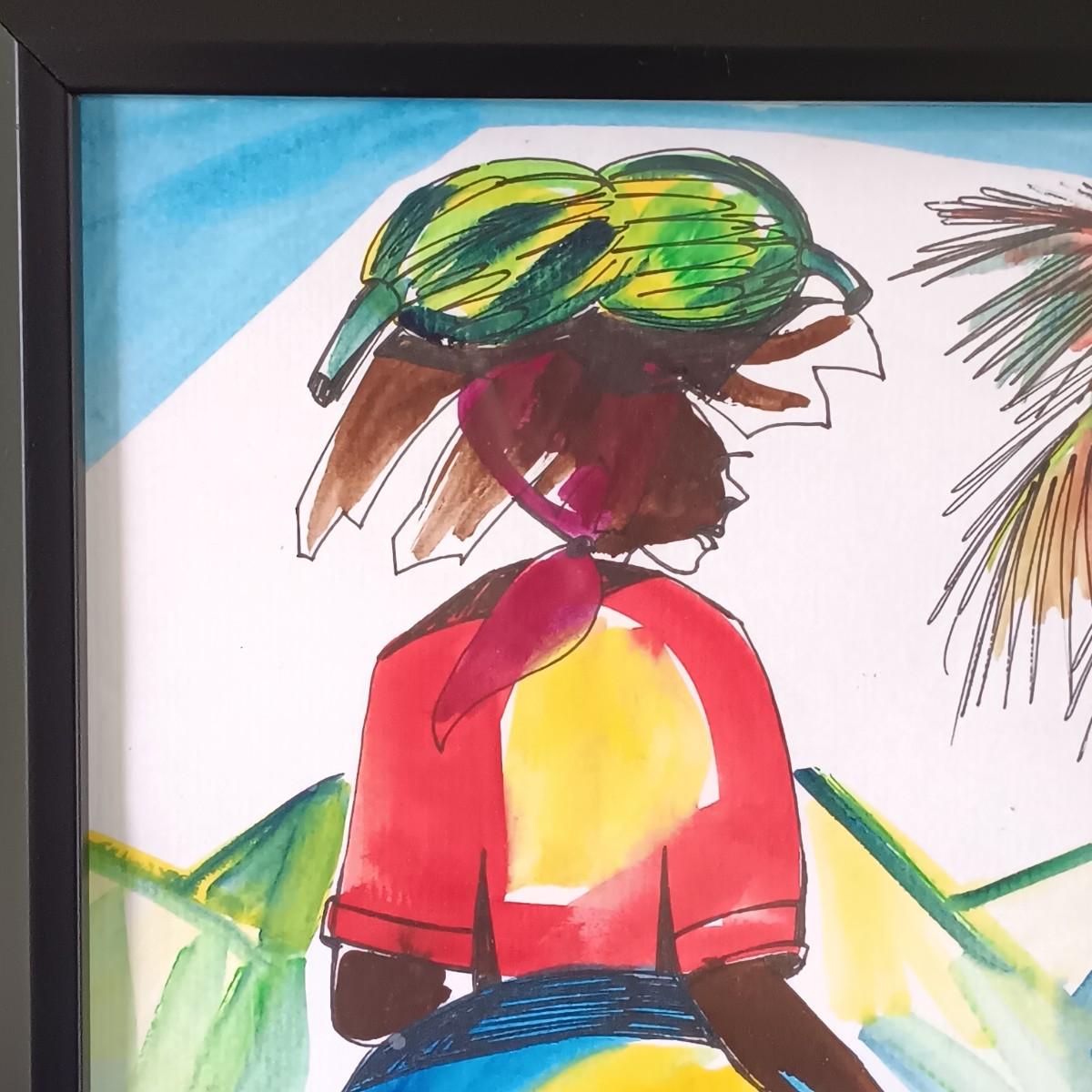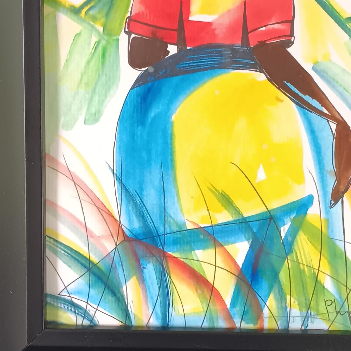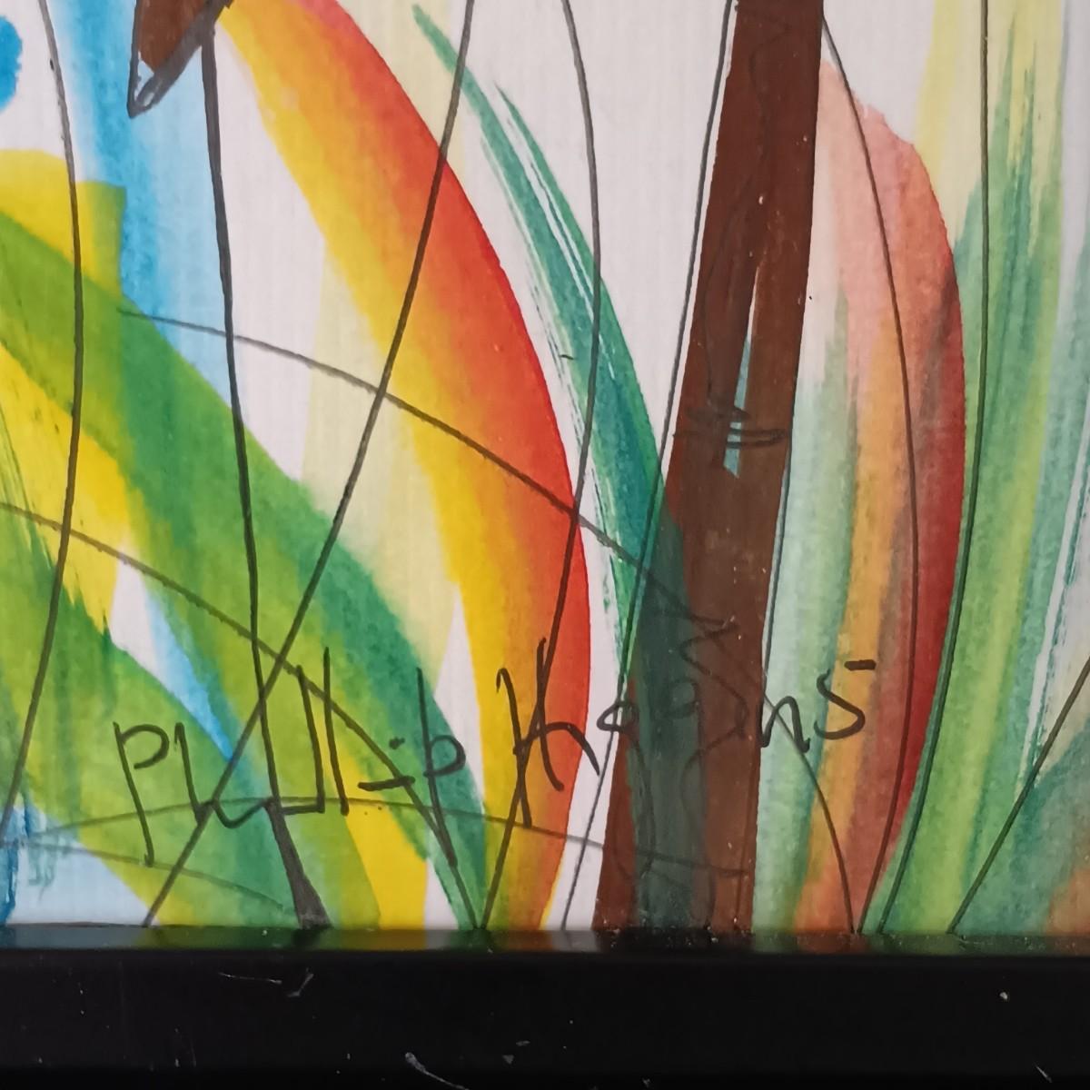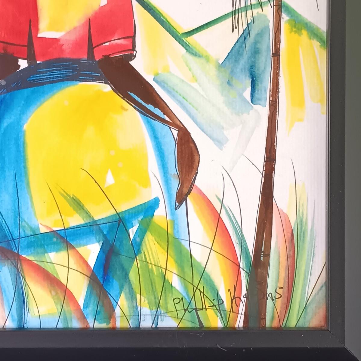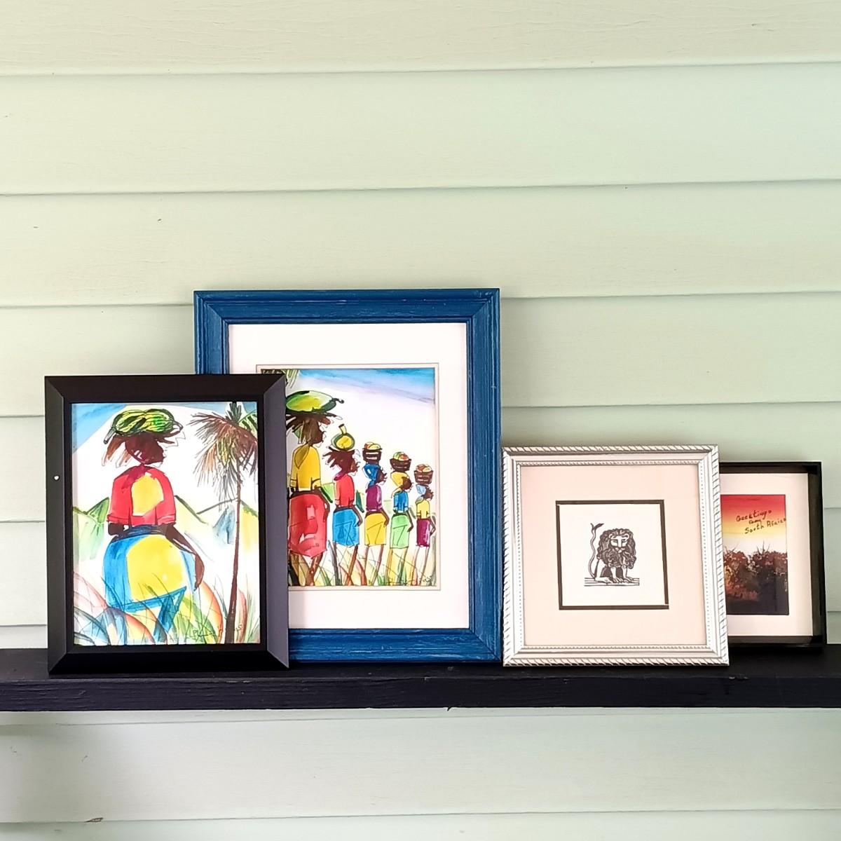 LOT 369: Philip Higgins Signed Art, Lion Block Print & Giraffe Silhouette Art by A'Mali