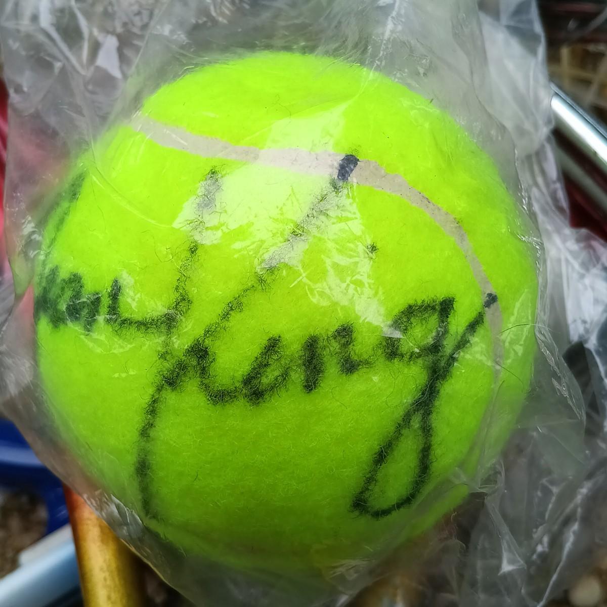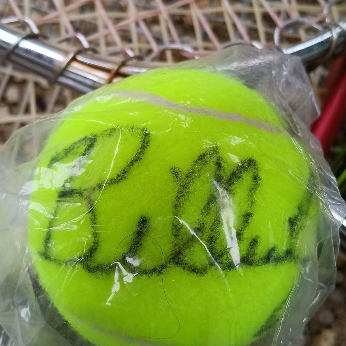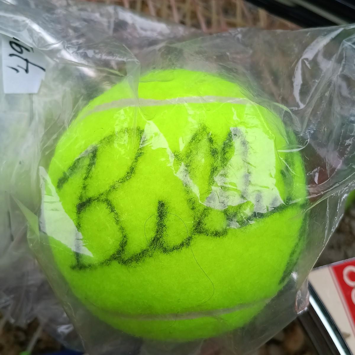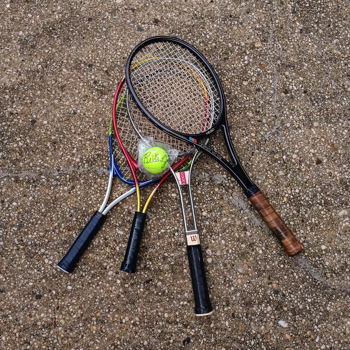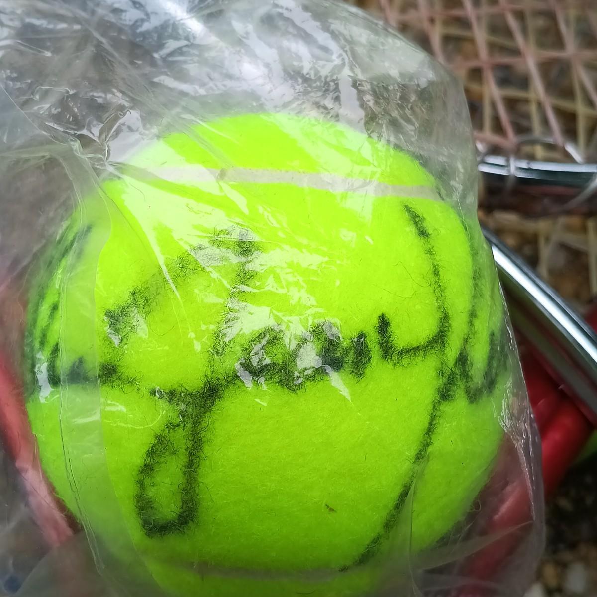 LOT 375: Set of (4) Tennis Rackets with Tennis Ball Signed Billie Jean King