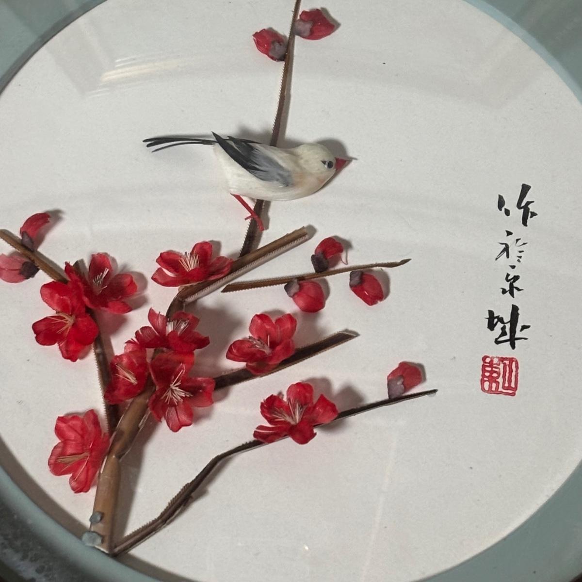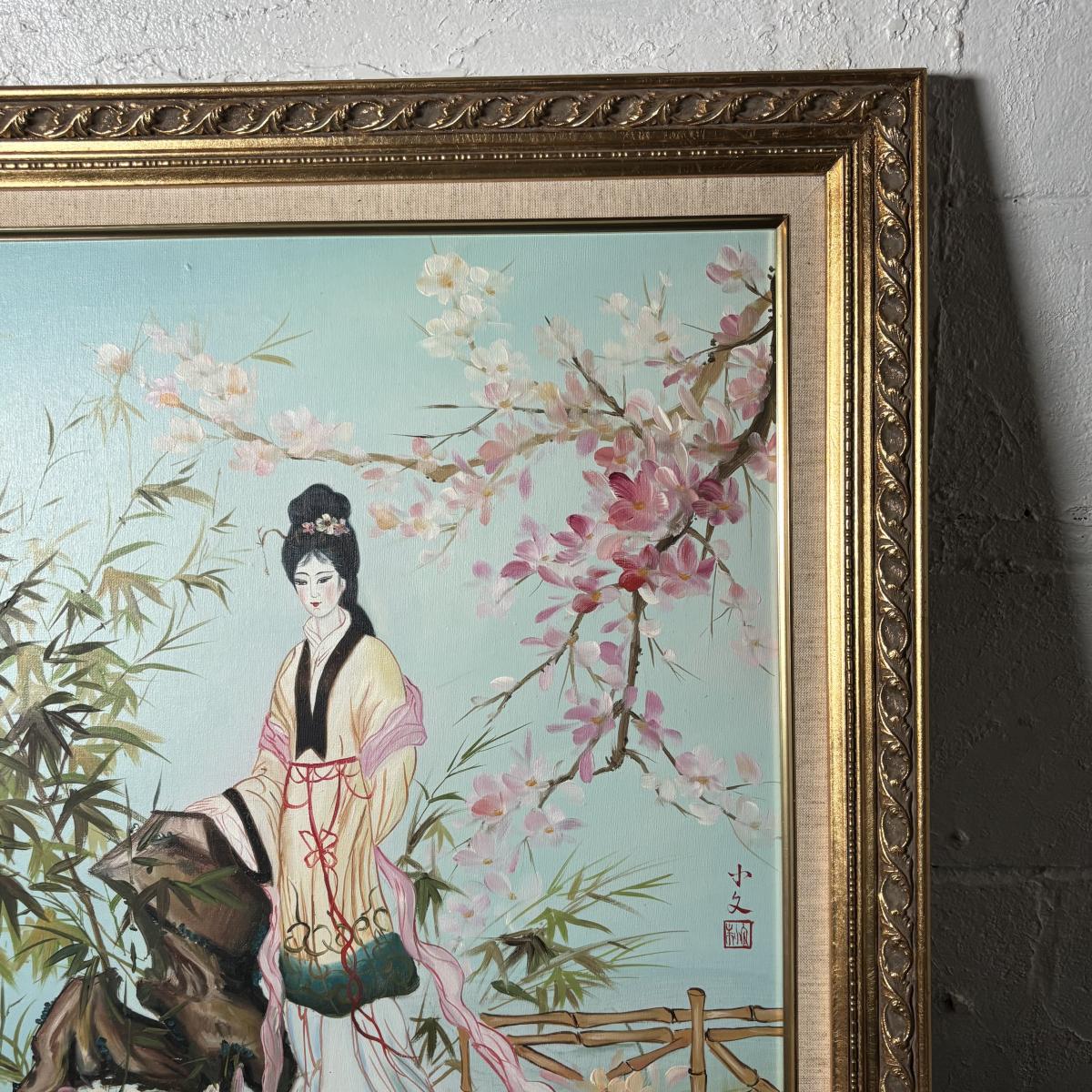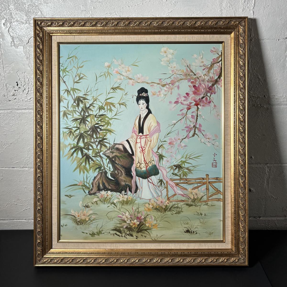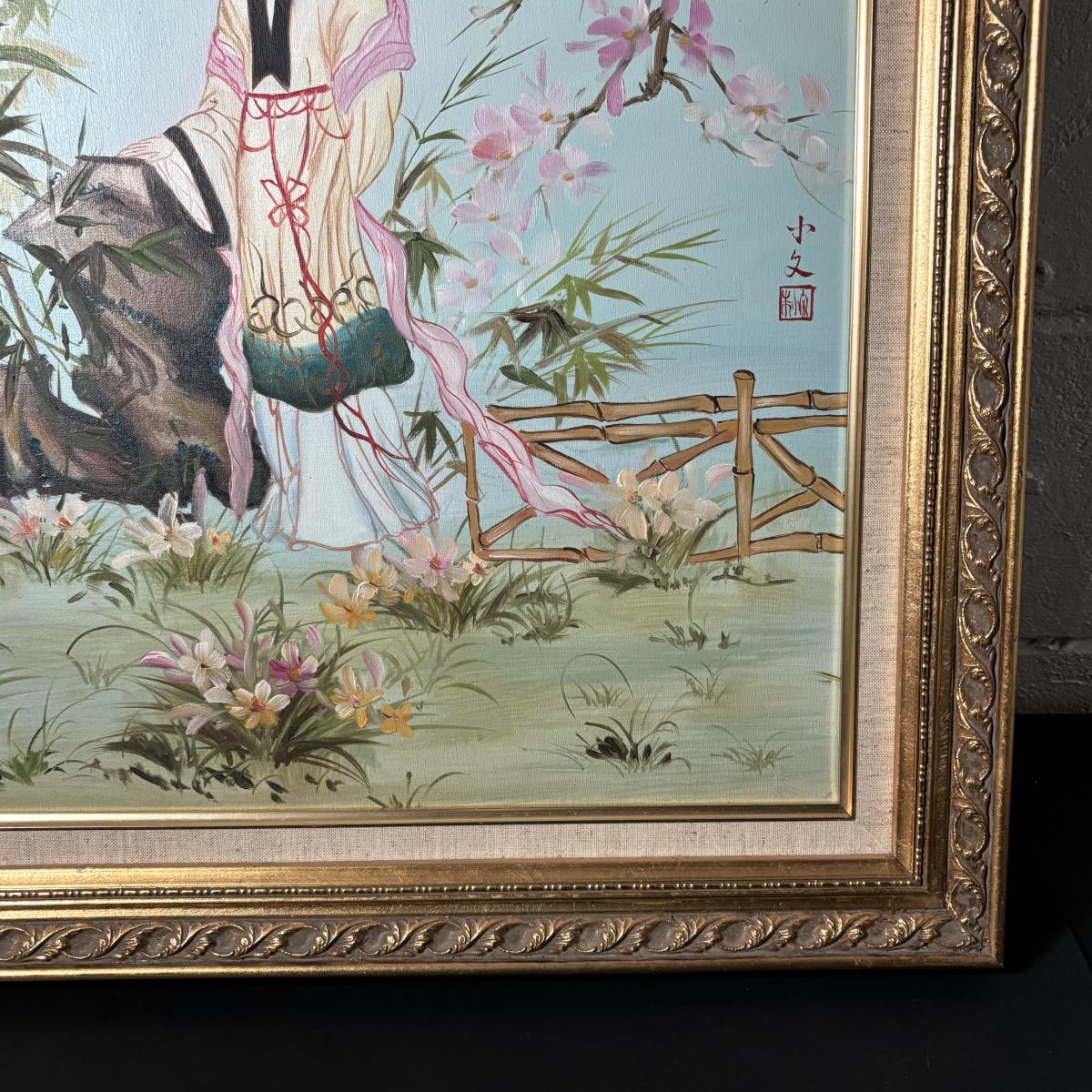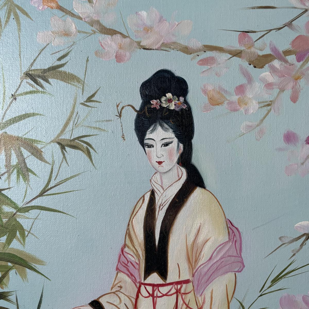 LOT 382: Home Decor Geisha Girl Print on Canvas & Set of 3 Round Japanese 3D Art Shadow Boxes