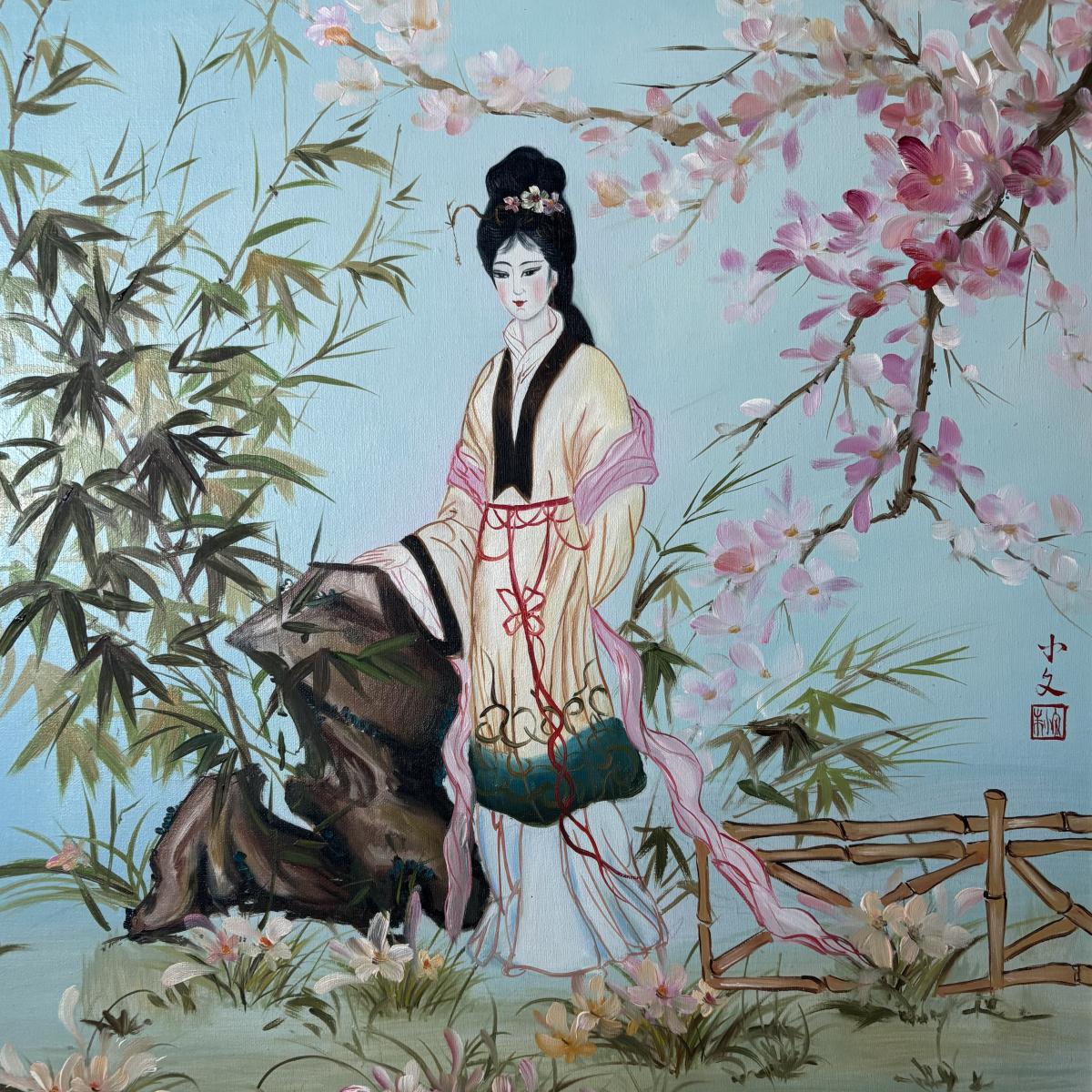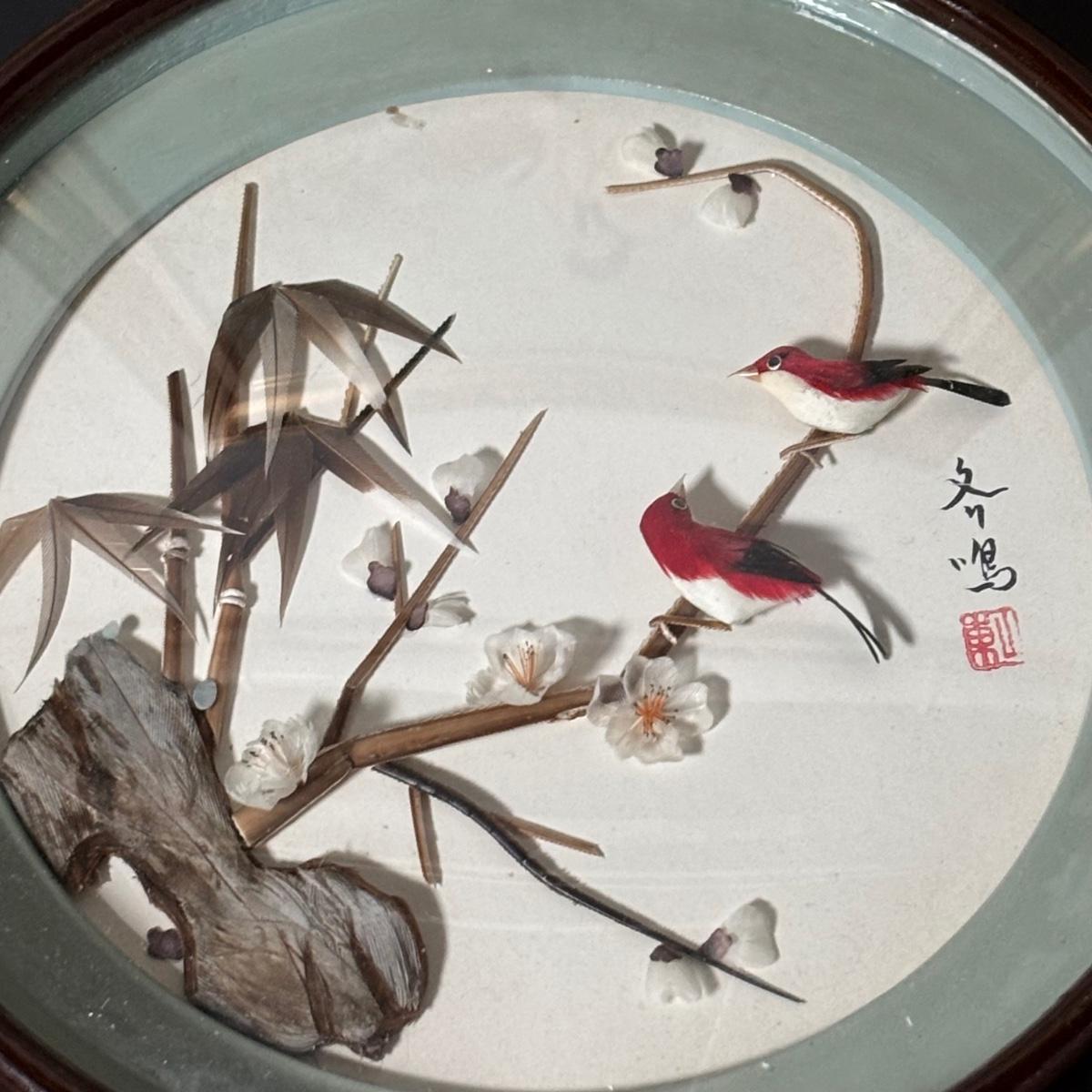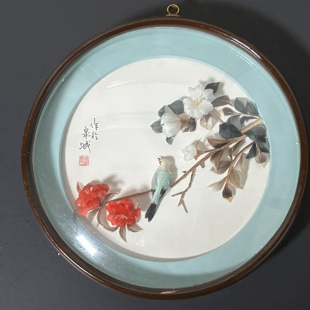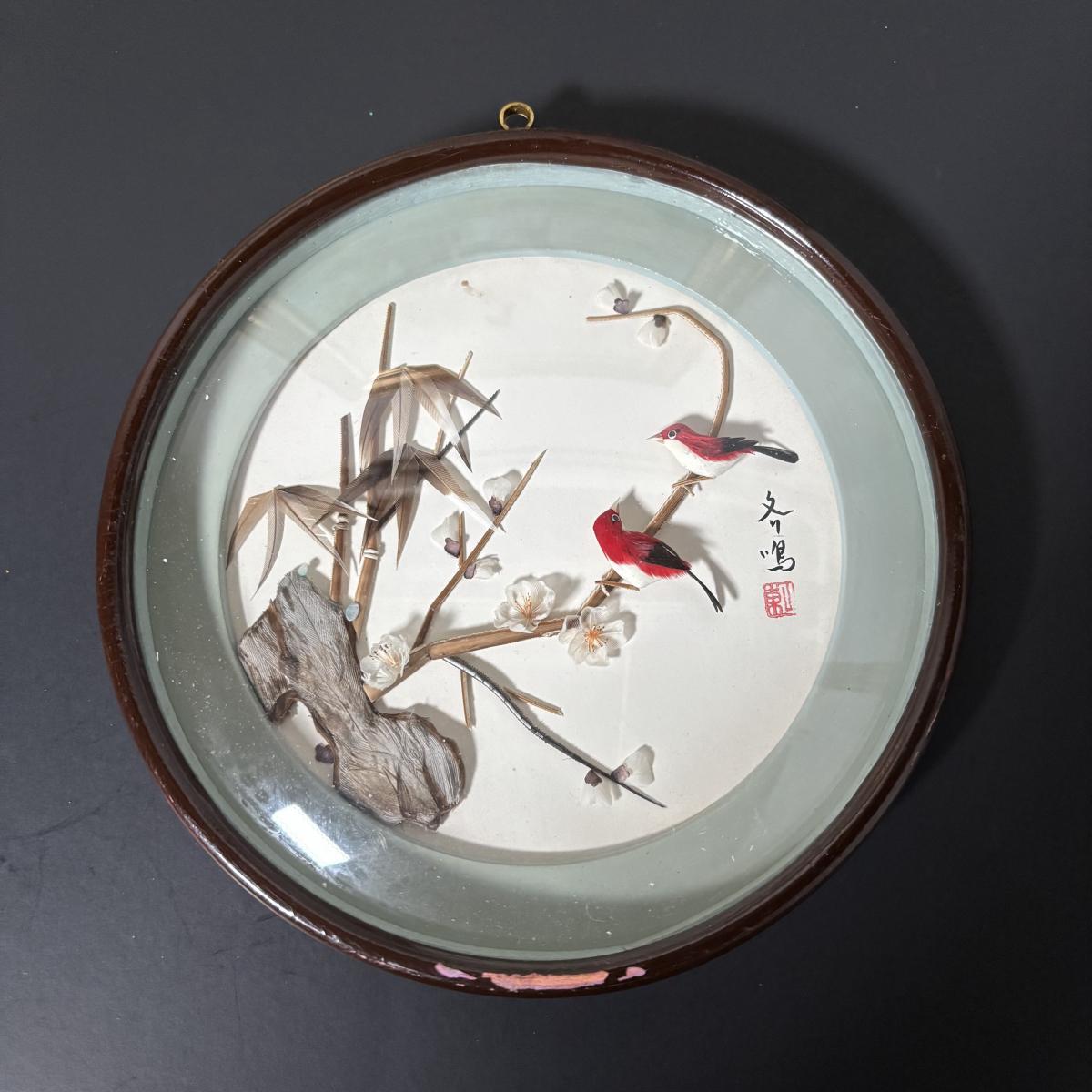 LOT 382: Home Decor Geisha Girl Print on Canvas & Set of 3 Round Japanese 3D Art Shadow Boxes