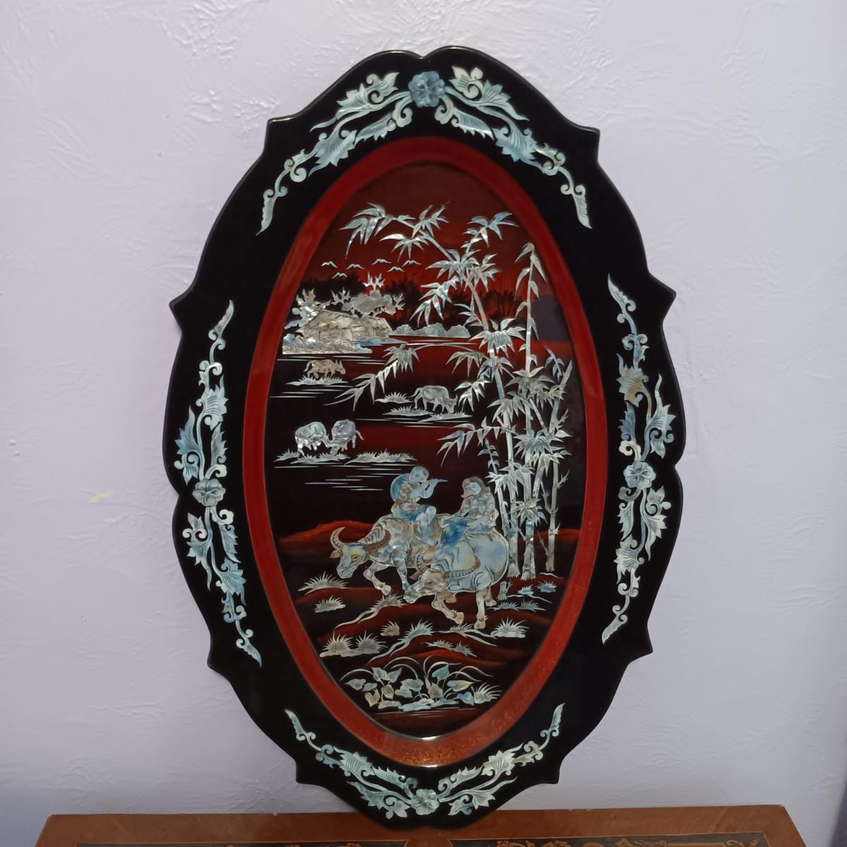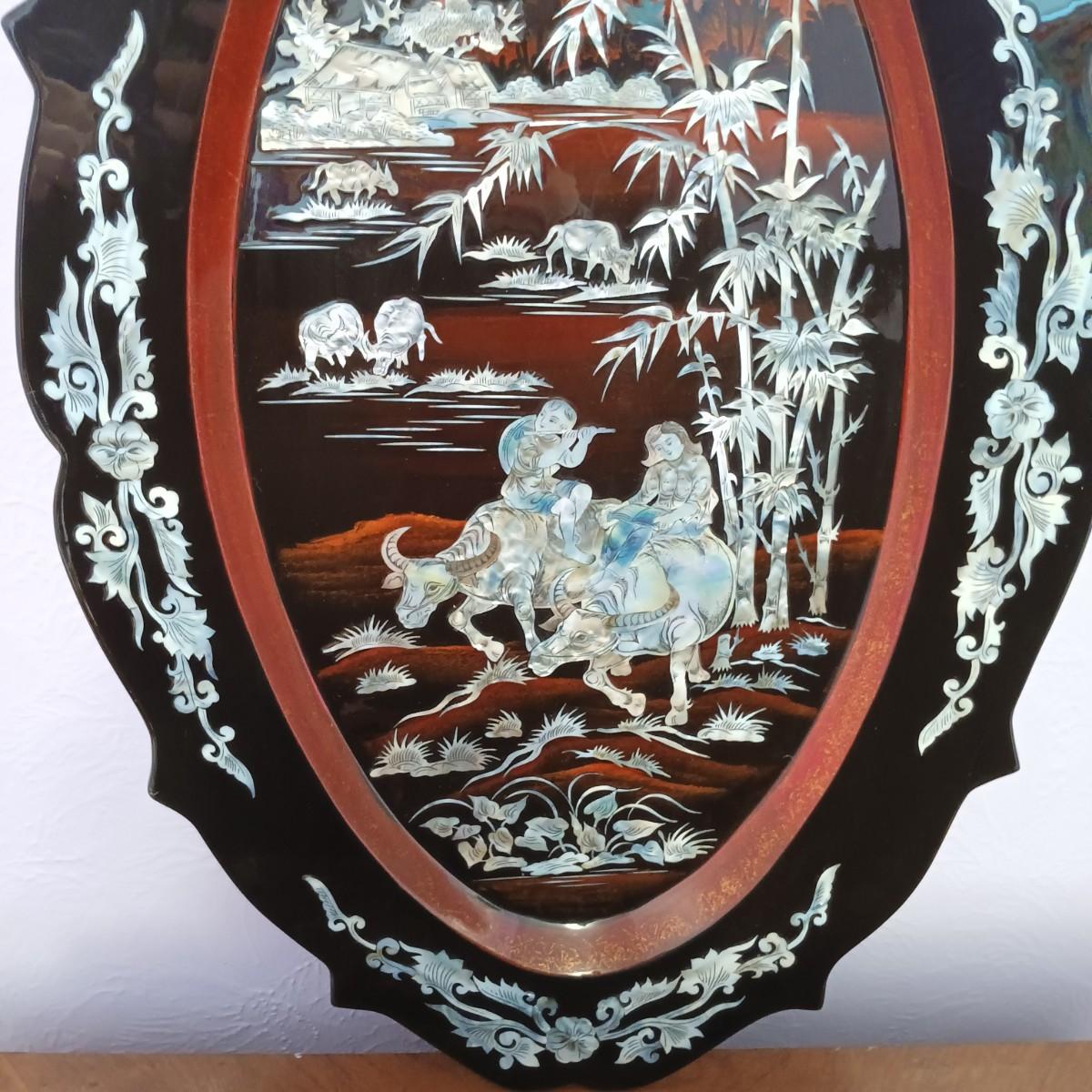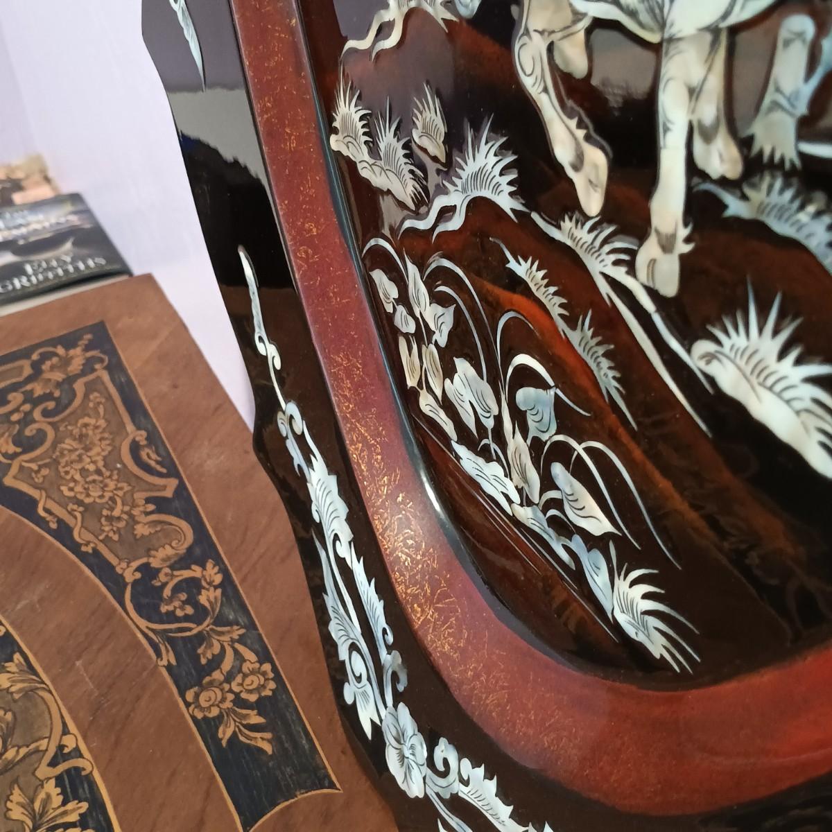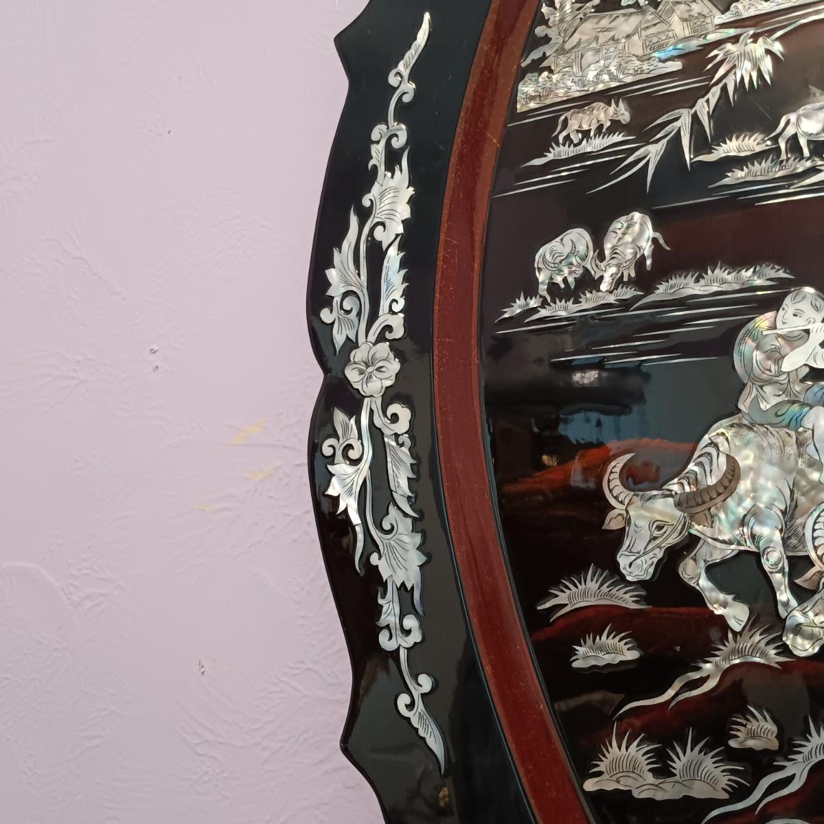 LOT 387: Large Mother of Pearl Inlaid Lacquerware Tray Art