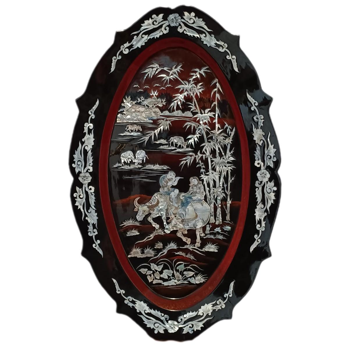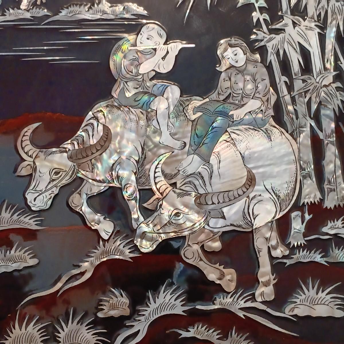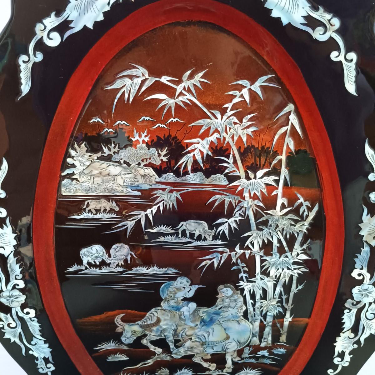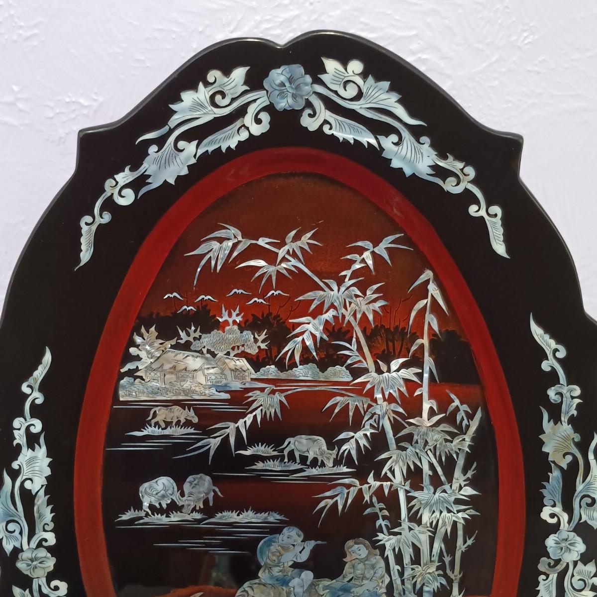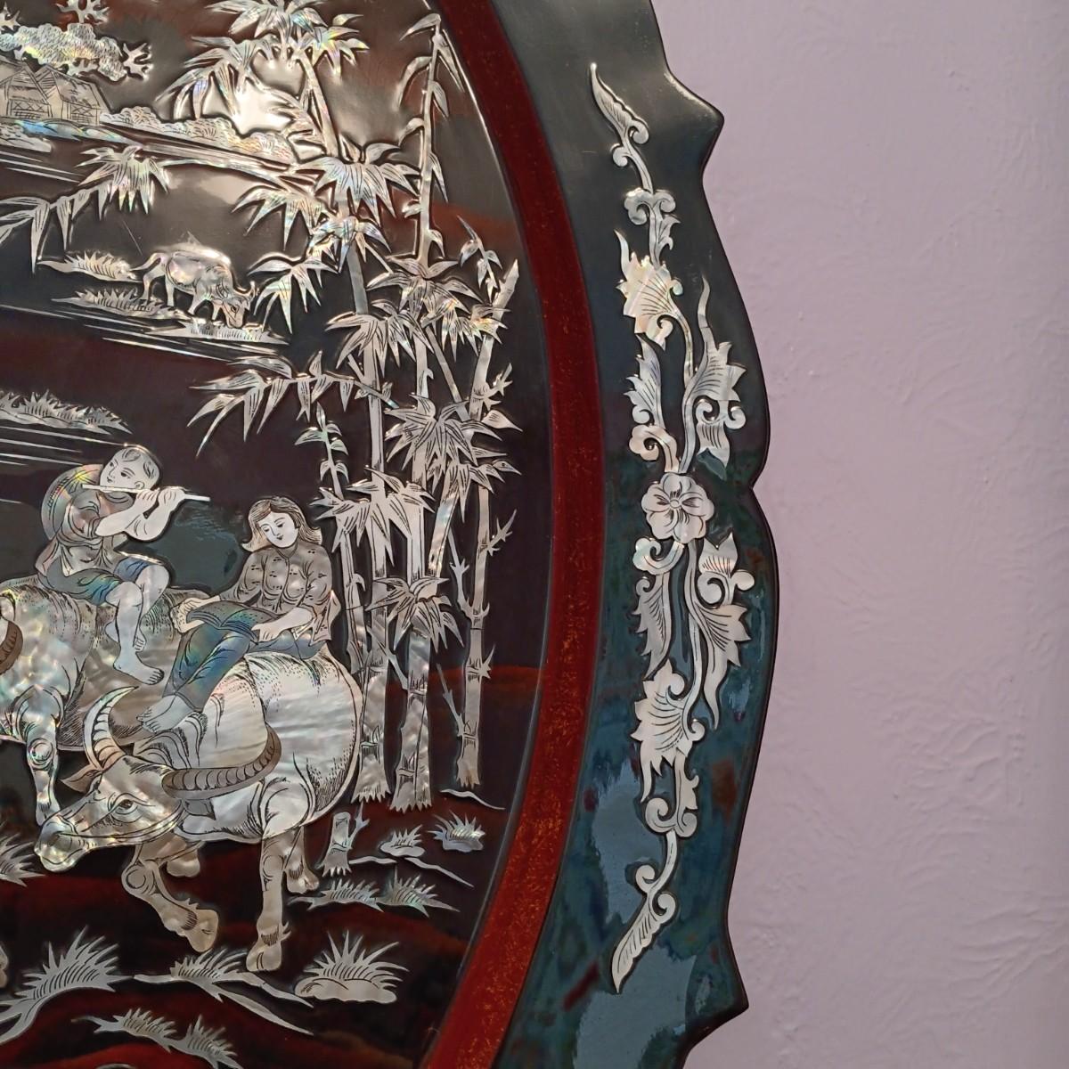 LOT 387: Large Mother of Pearl Inlaid Lacquerware Tray Art