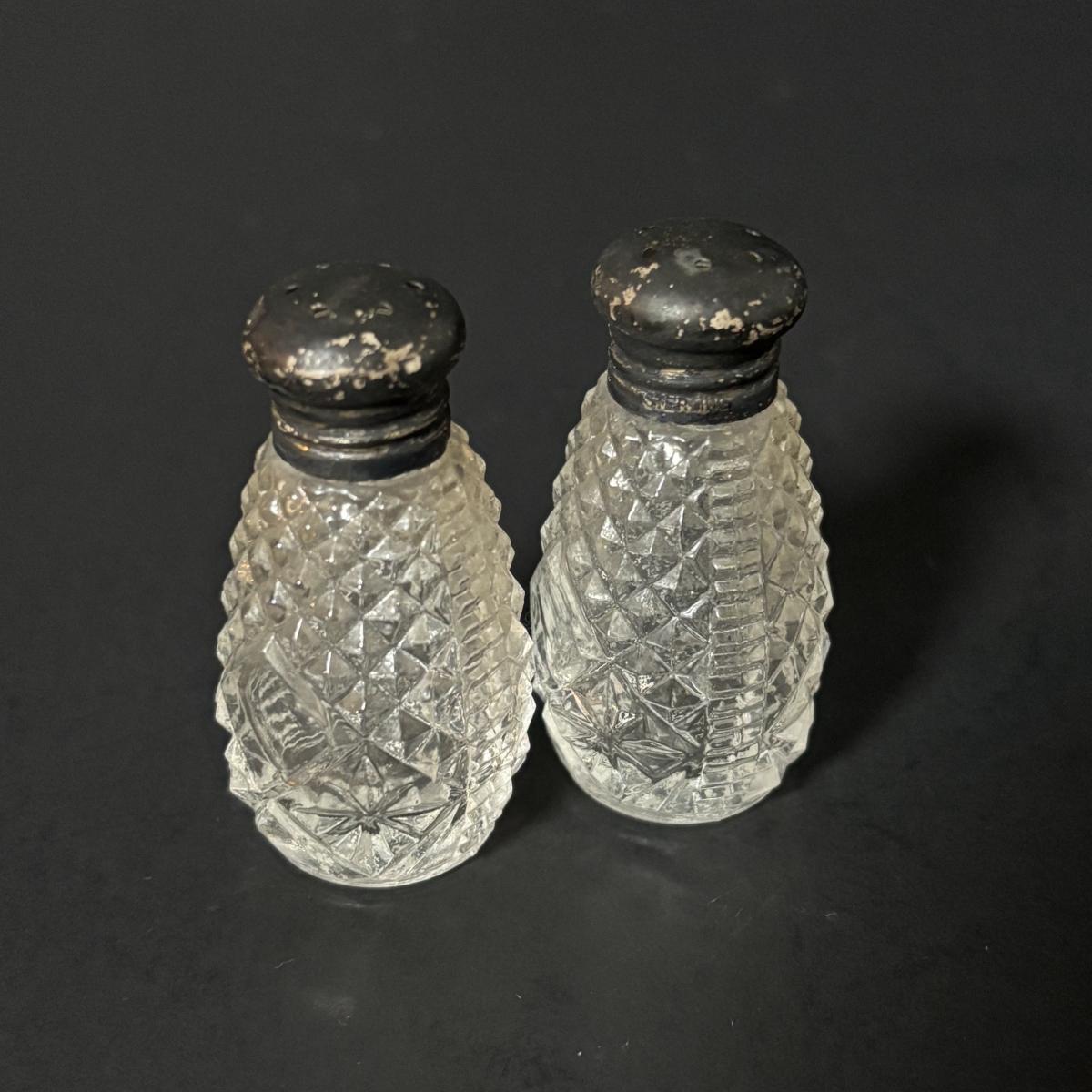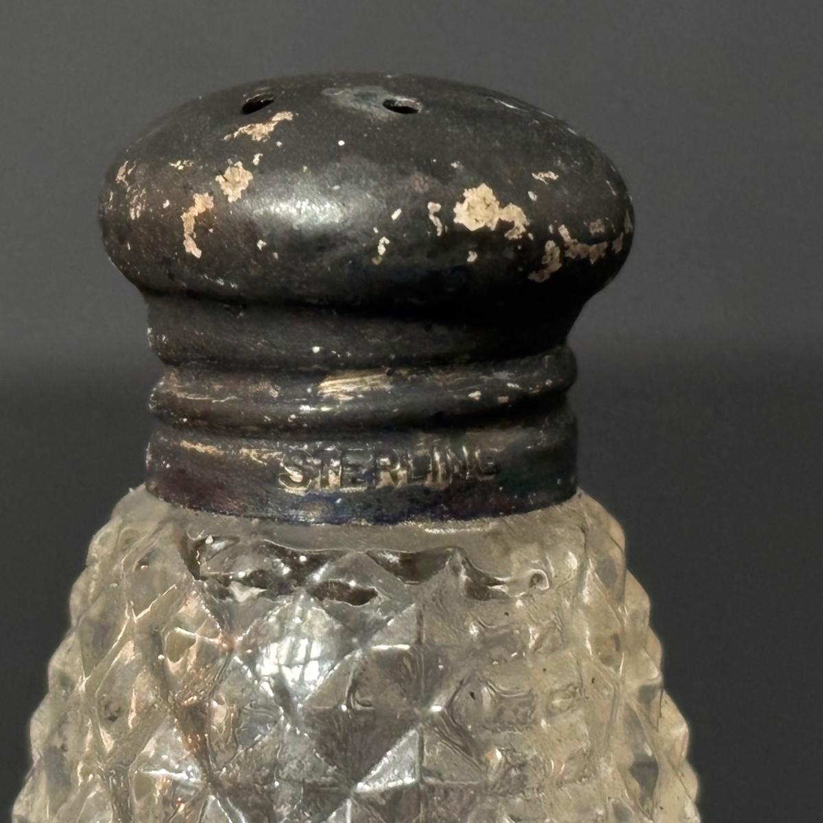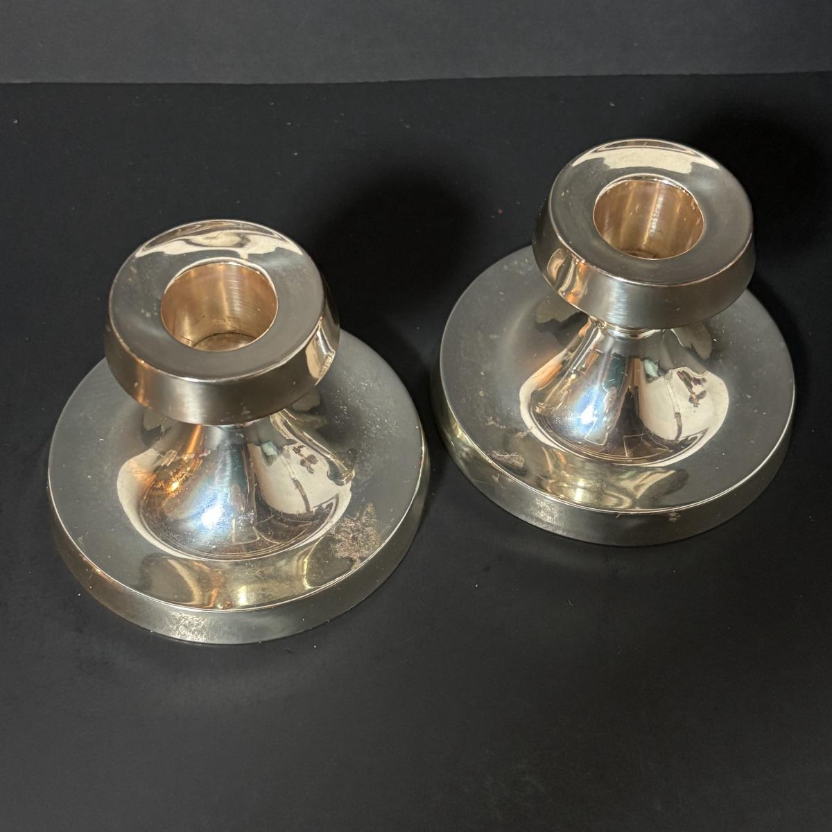 LOT 406: Weighted Sterling Silver Candle Holders & Crystal Salt/Pepper Shakers w/Sterling Silver Tops