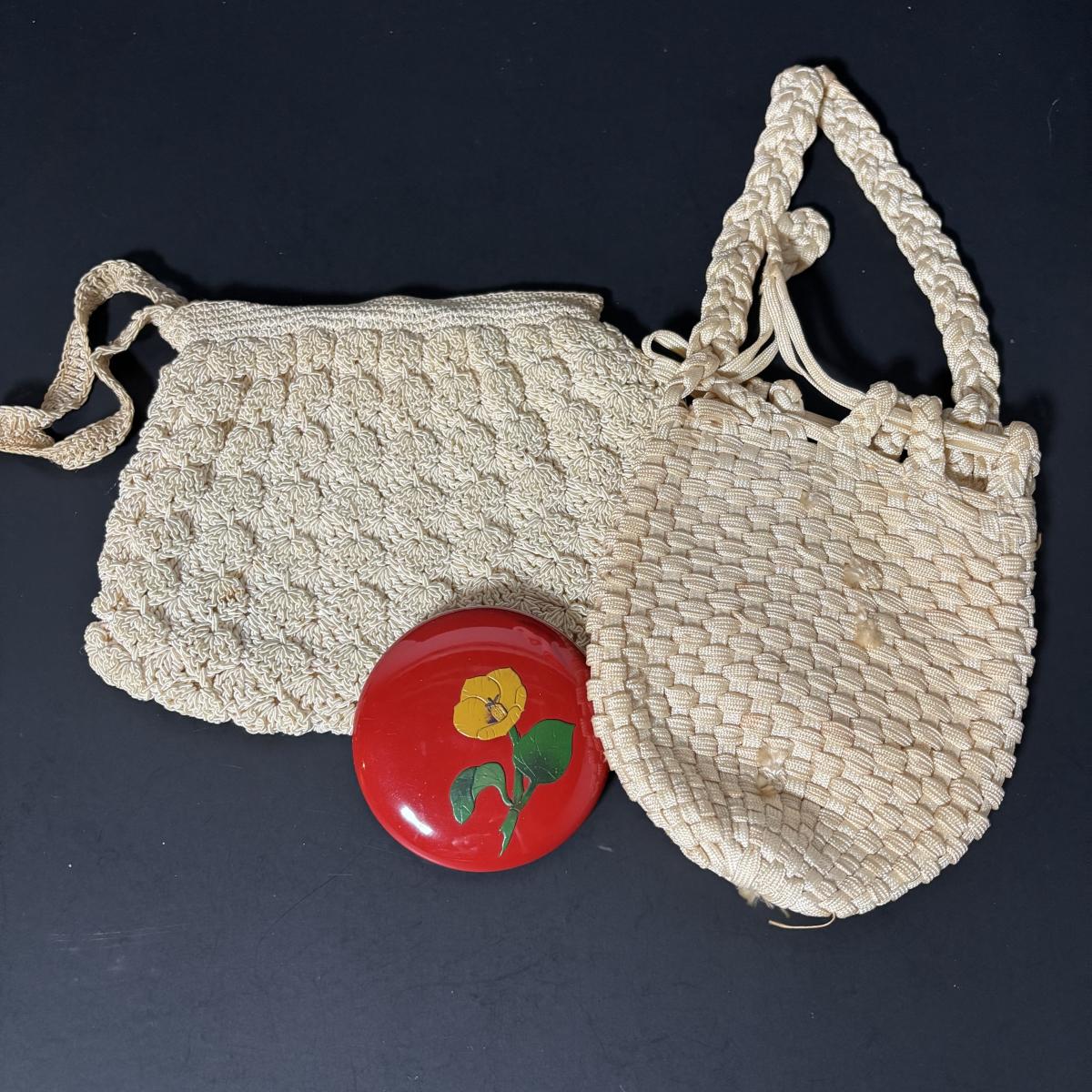LOT 410: Vintage Crocheted Purses & Floral Lacquer Mirror
