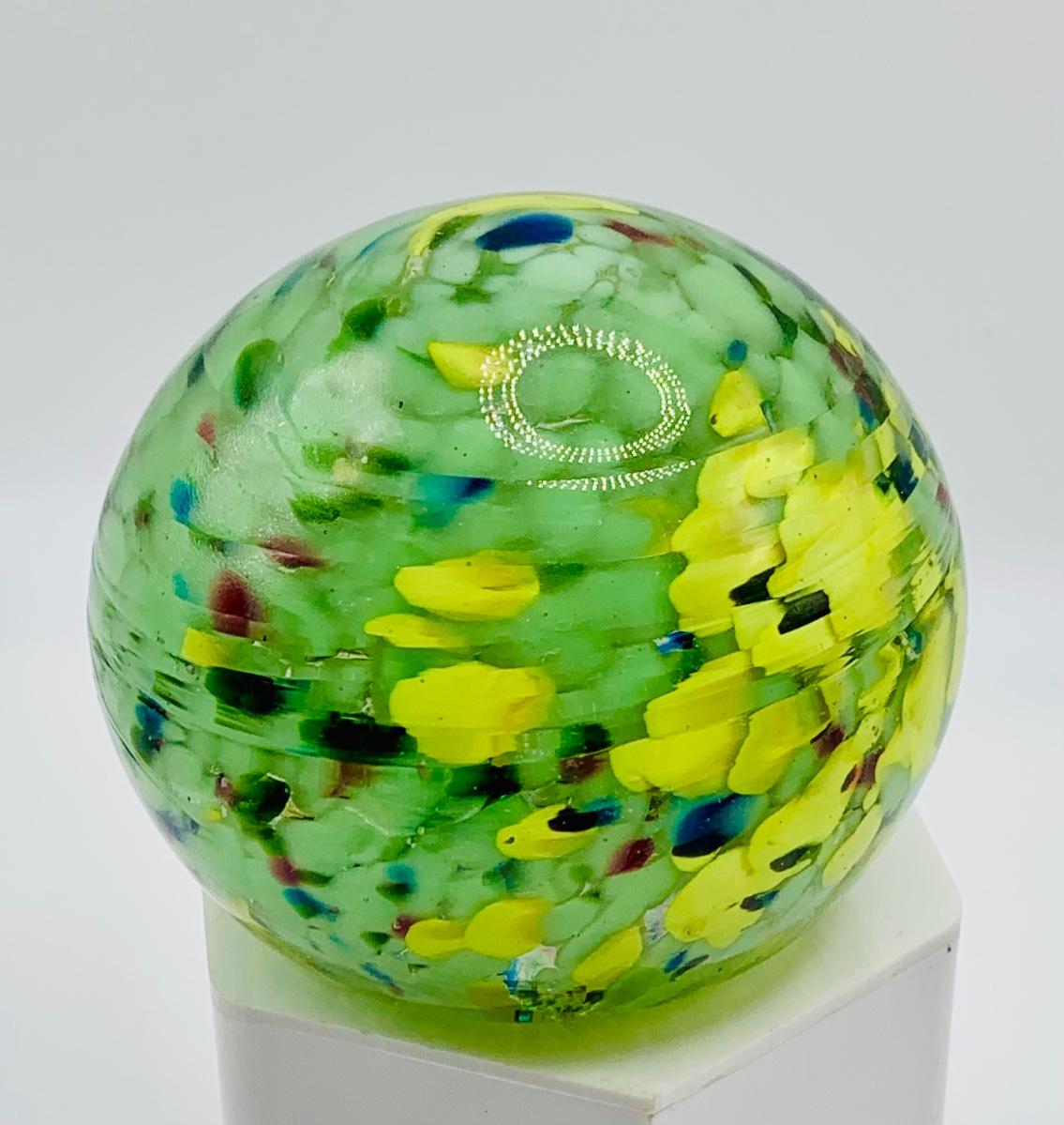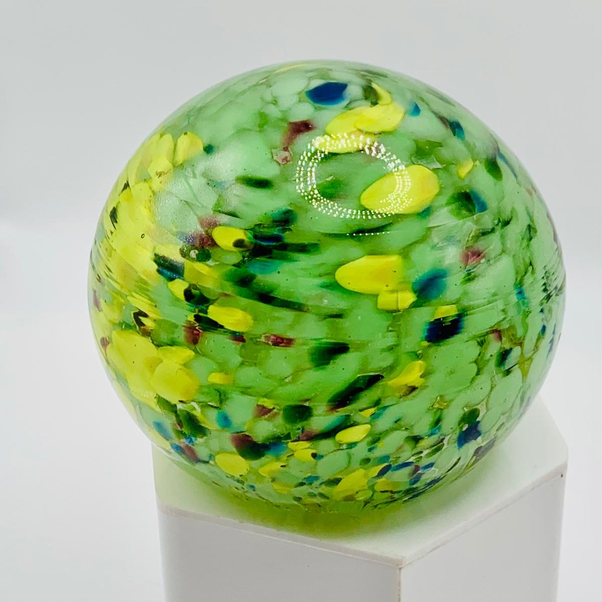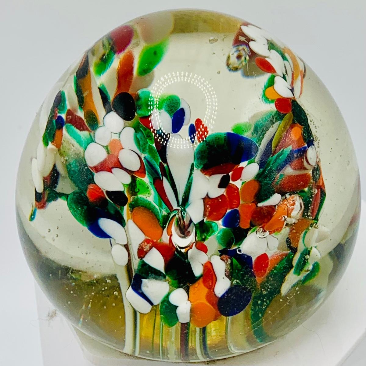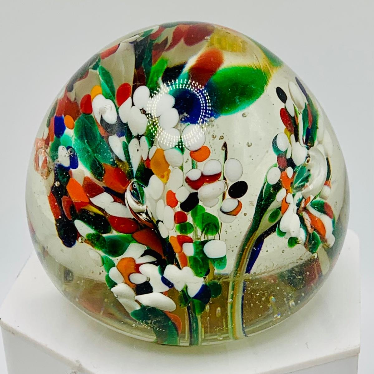 LOT 3: Collection of Three (3) Vintage Art Glass Paperweights Featuring a Dragonfly Floral Design and Confetti Style Designs