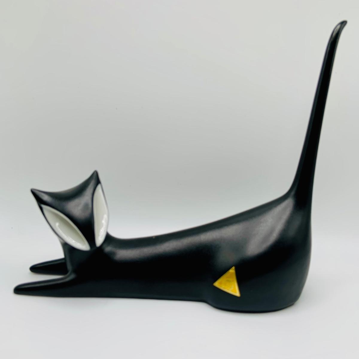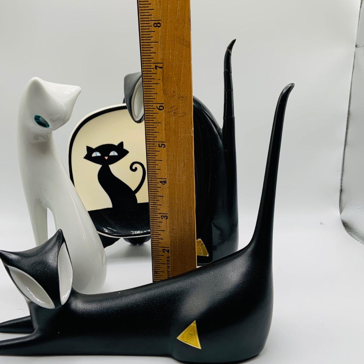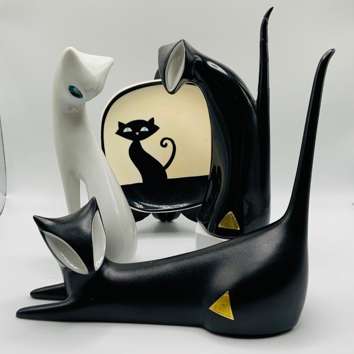 LOT 4: Set of Two (2) Royal Dux Bohemian Blacks Cats, C.mielow White Cat Figure and Black Cat Saucer