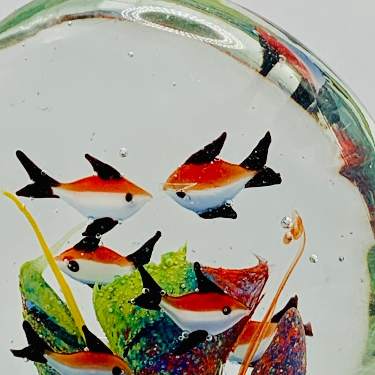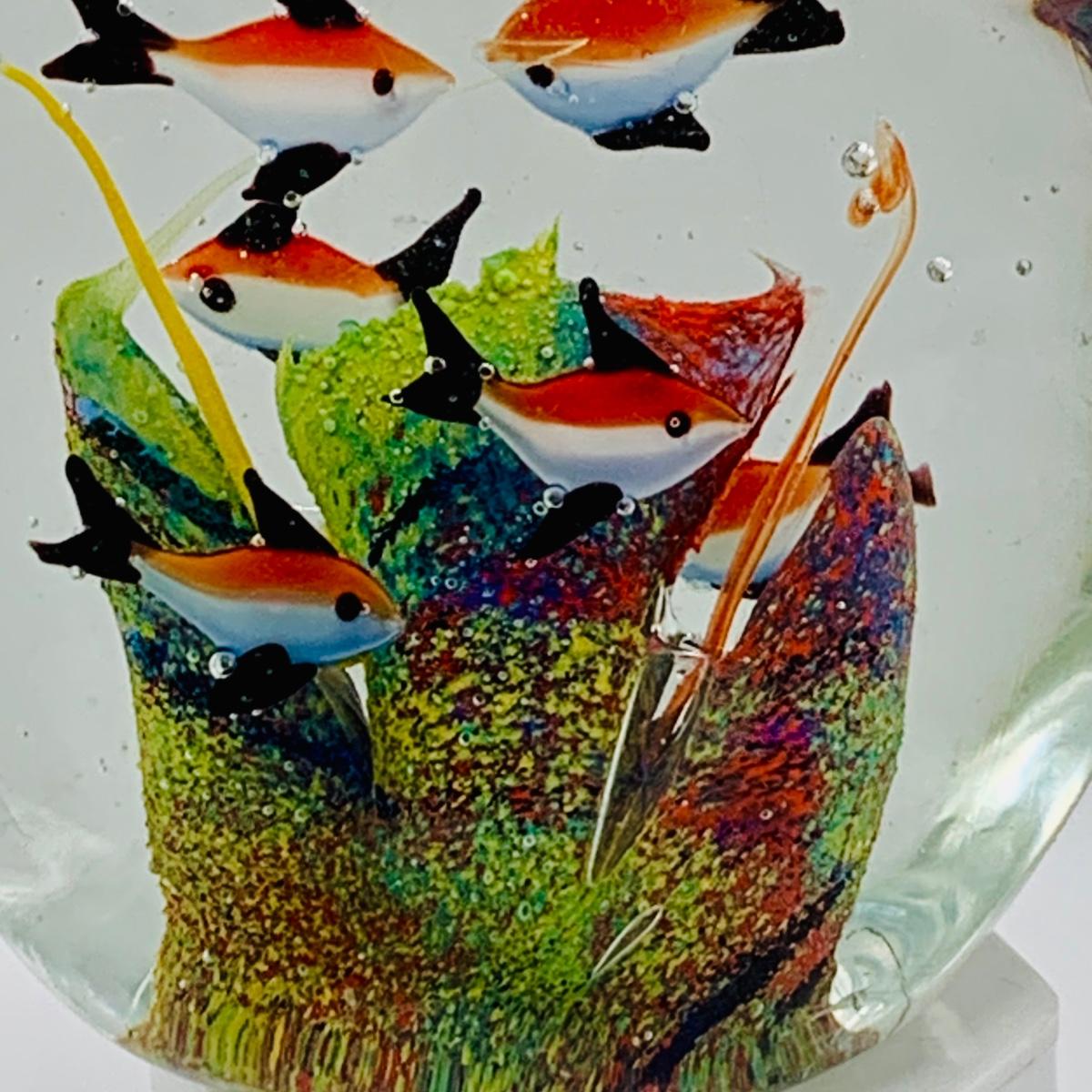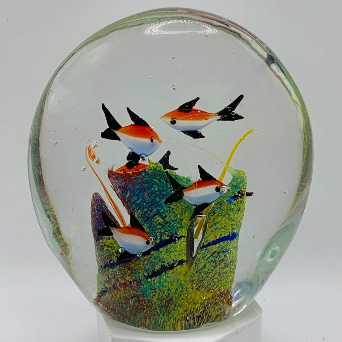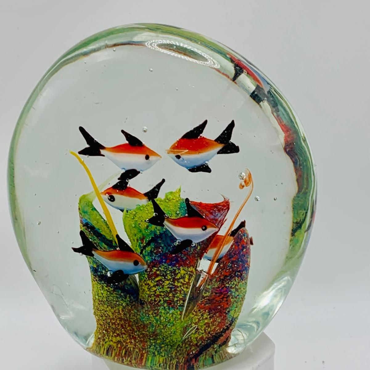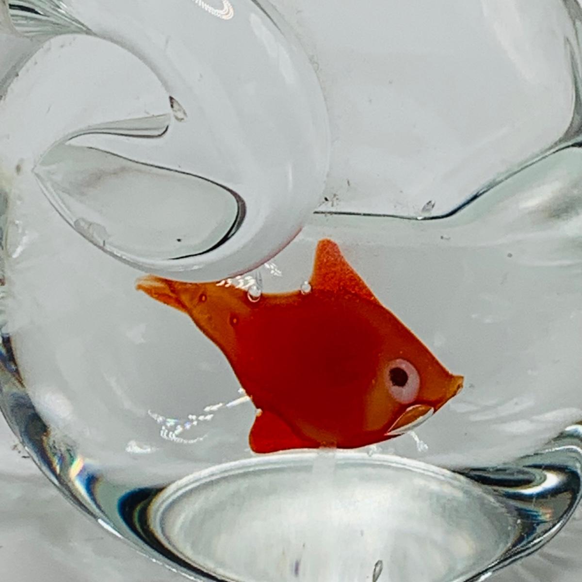 LOT 5: Art Glass Aquarium Paperweight, Maurano Style Art Glass Cat with Goldfish and a Princess House Art Glass Cat