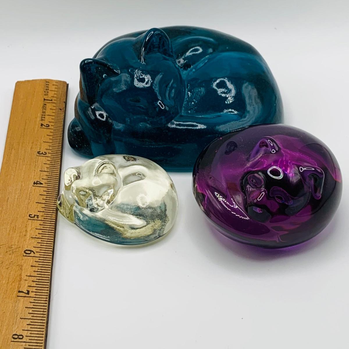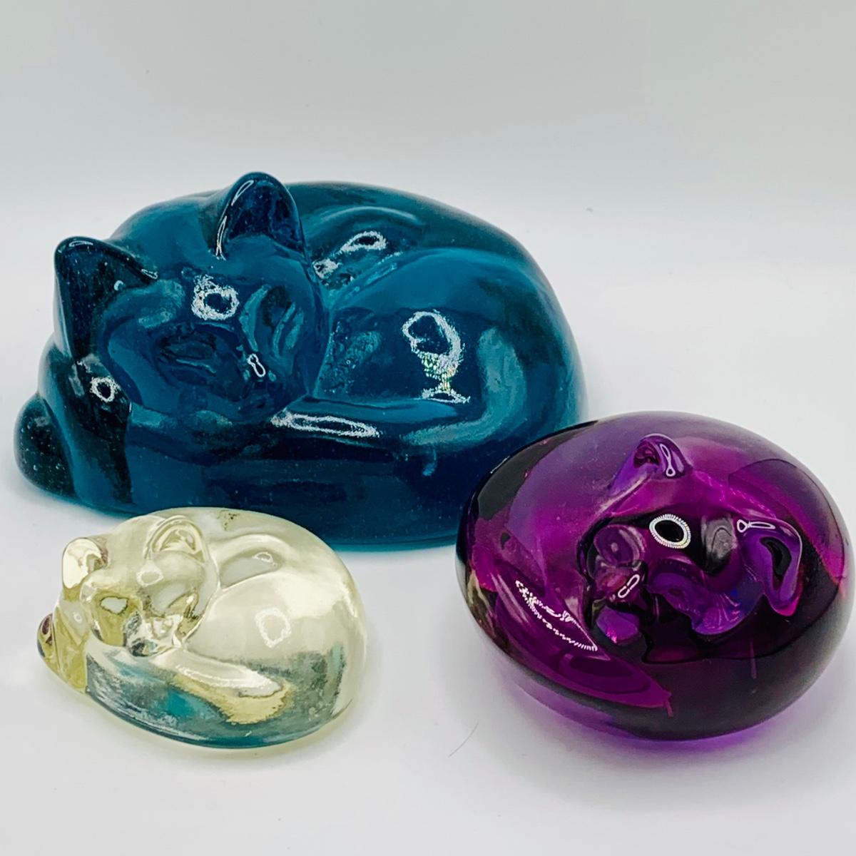 LOT 7: Collection of Three (3) Glass/Crystal Cozy Curled Up Cats