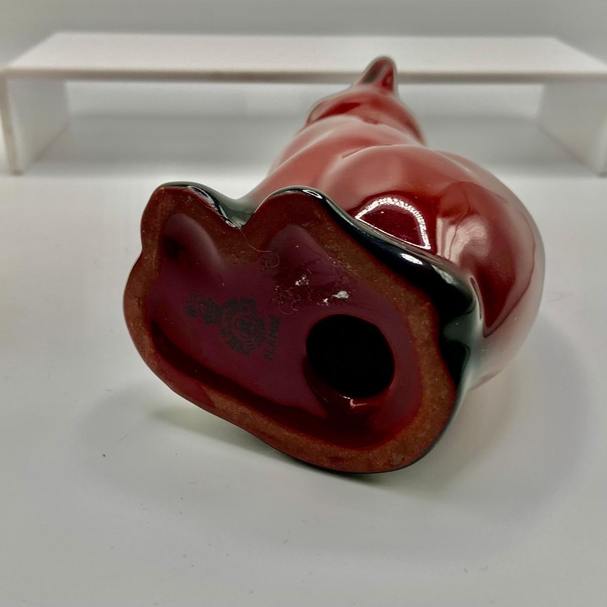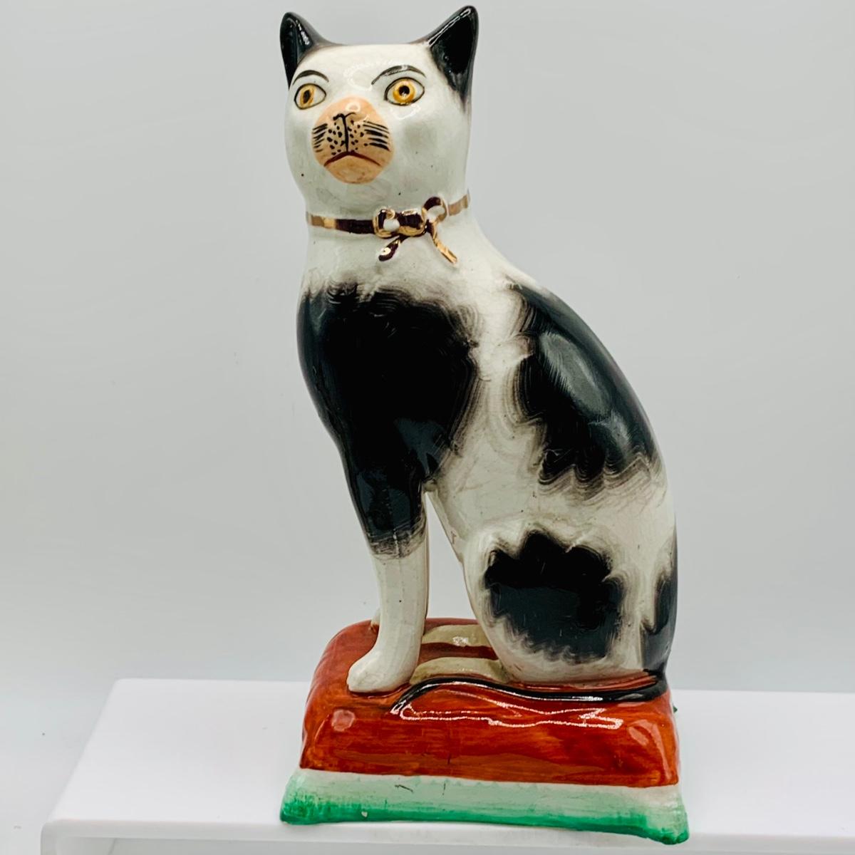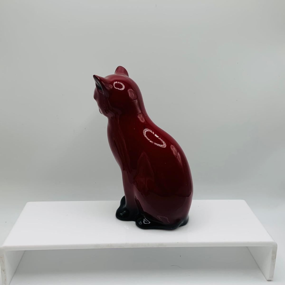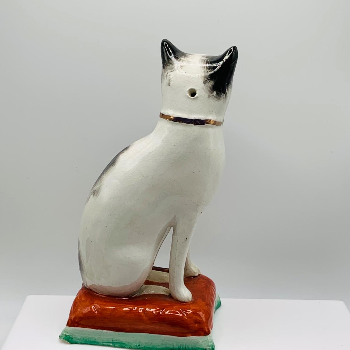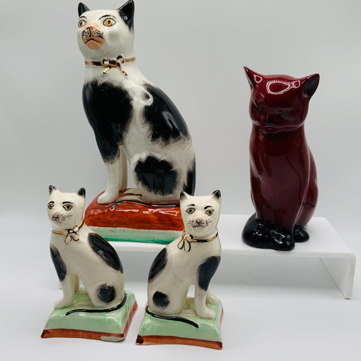 LOT 12: Old Staffordshire Cat Sitting of a Pillow, Royal Doulton Flambé Seated Cat