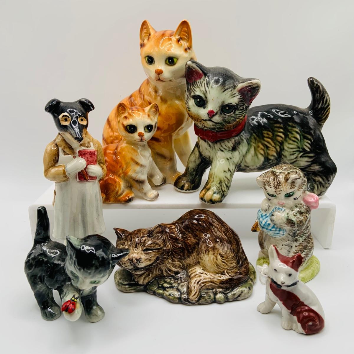 LOT 13: Assortment of Cats and Dog Porcelain Figurines by Beswick, and More